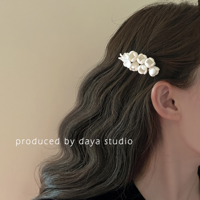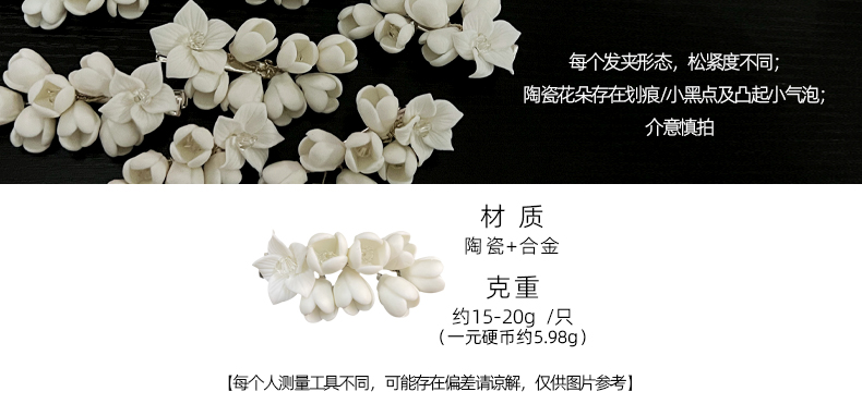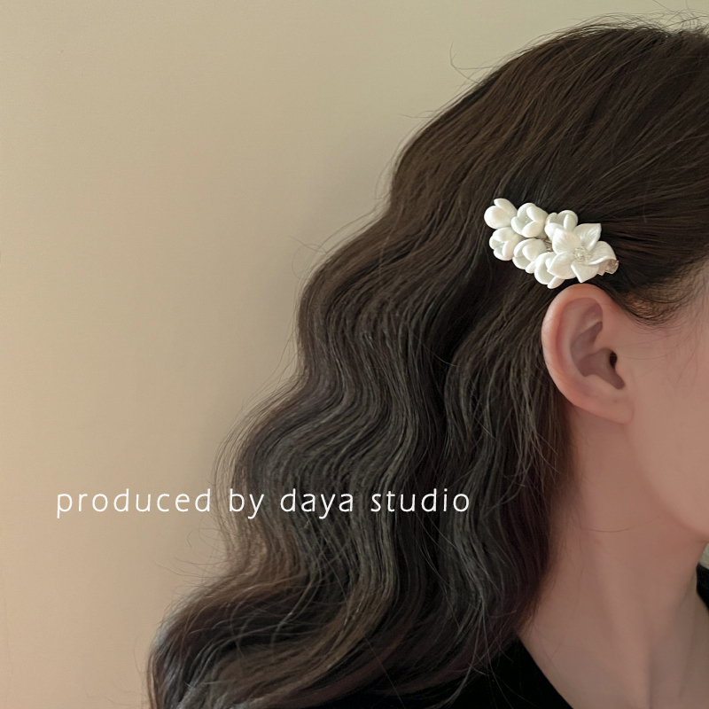 Asaya2147 : Wake up that piece of jasmine super fairy French retro ceramic flower hair clip light luxury high-end niche temperament side clip