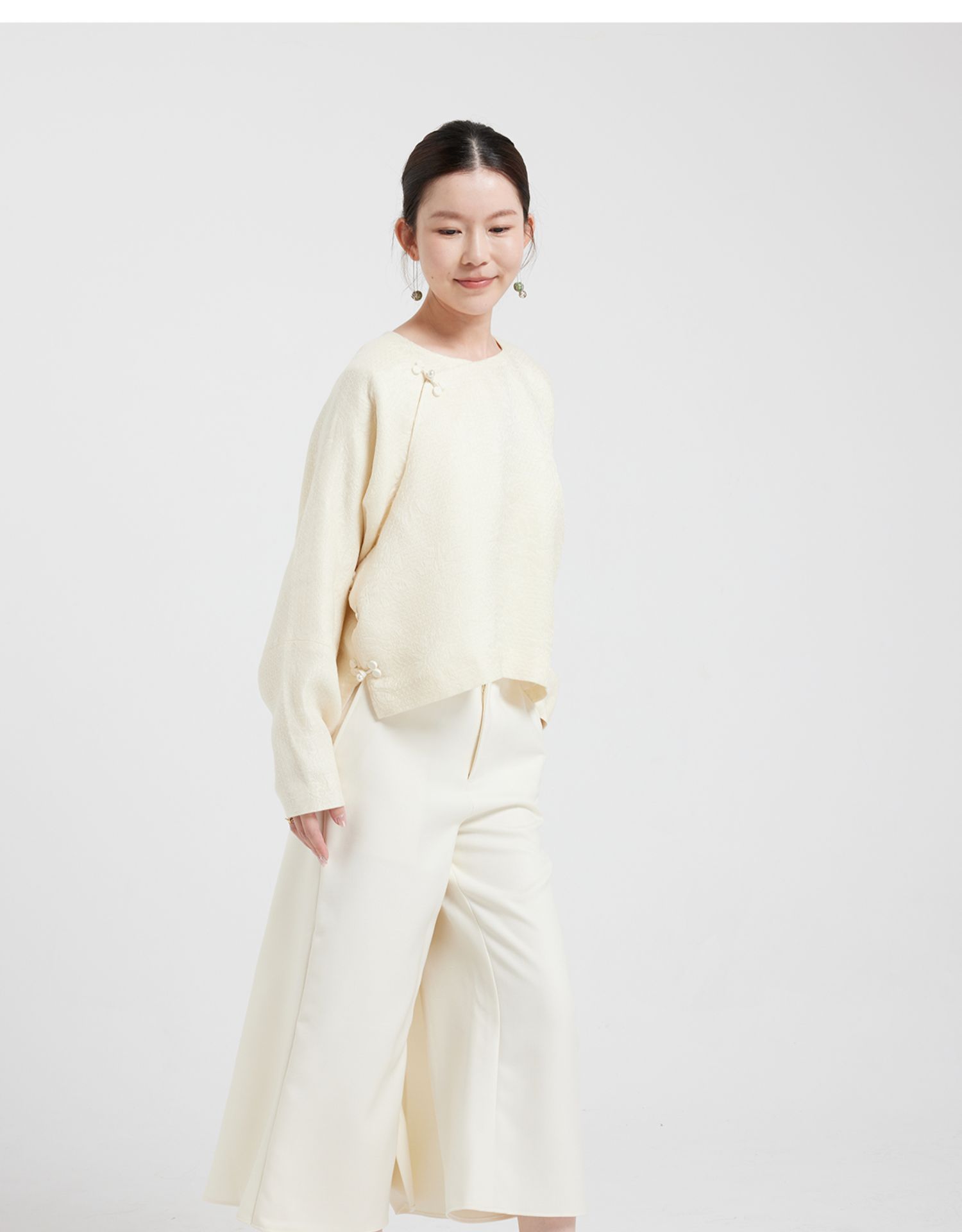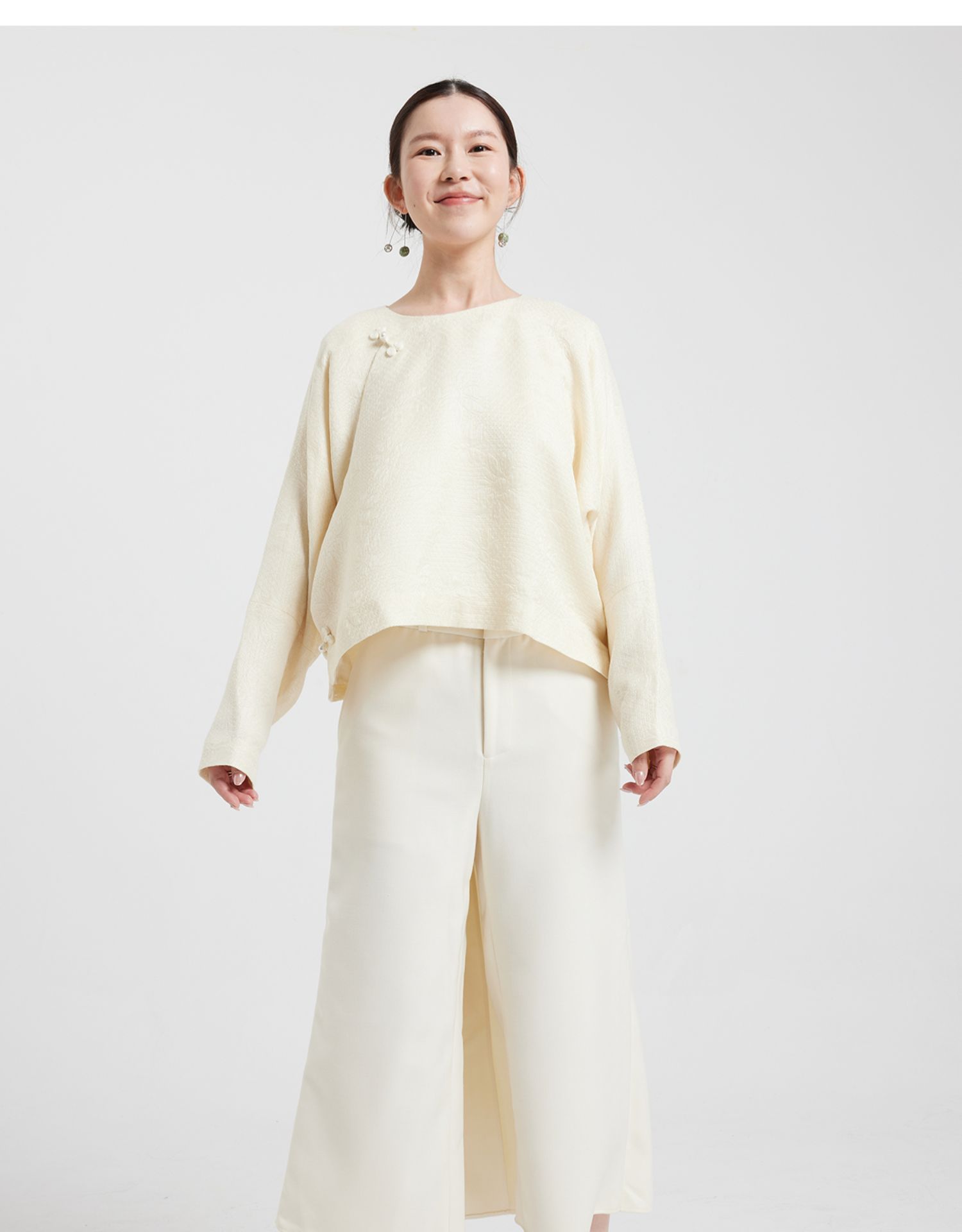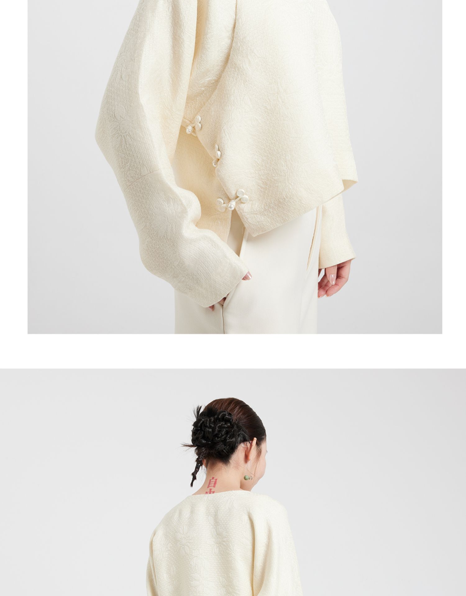 Asaya0412 - Wang Antian s original long sleeved handmade floral button real collar milk white jacquard silk wool Chinese style top for autumn and winter short jacket