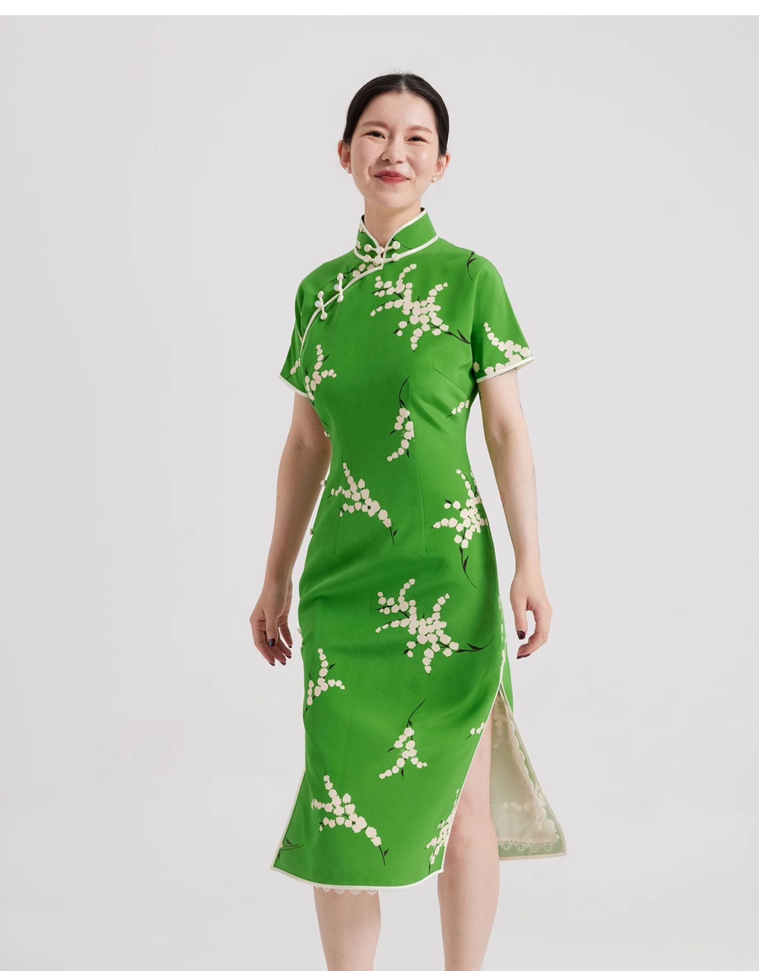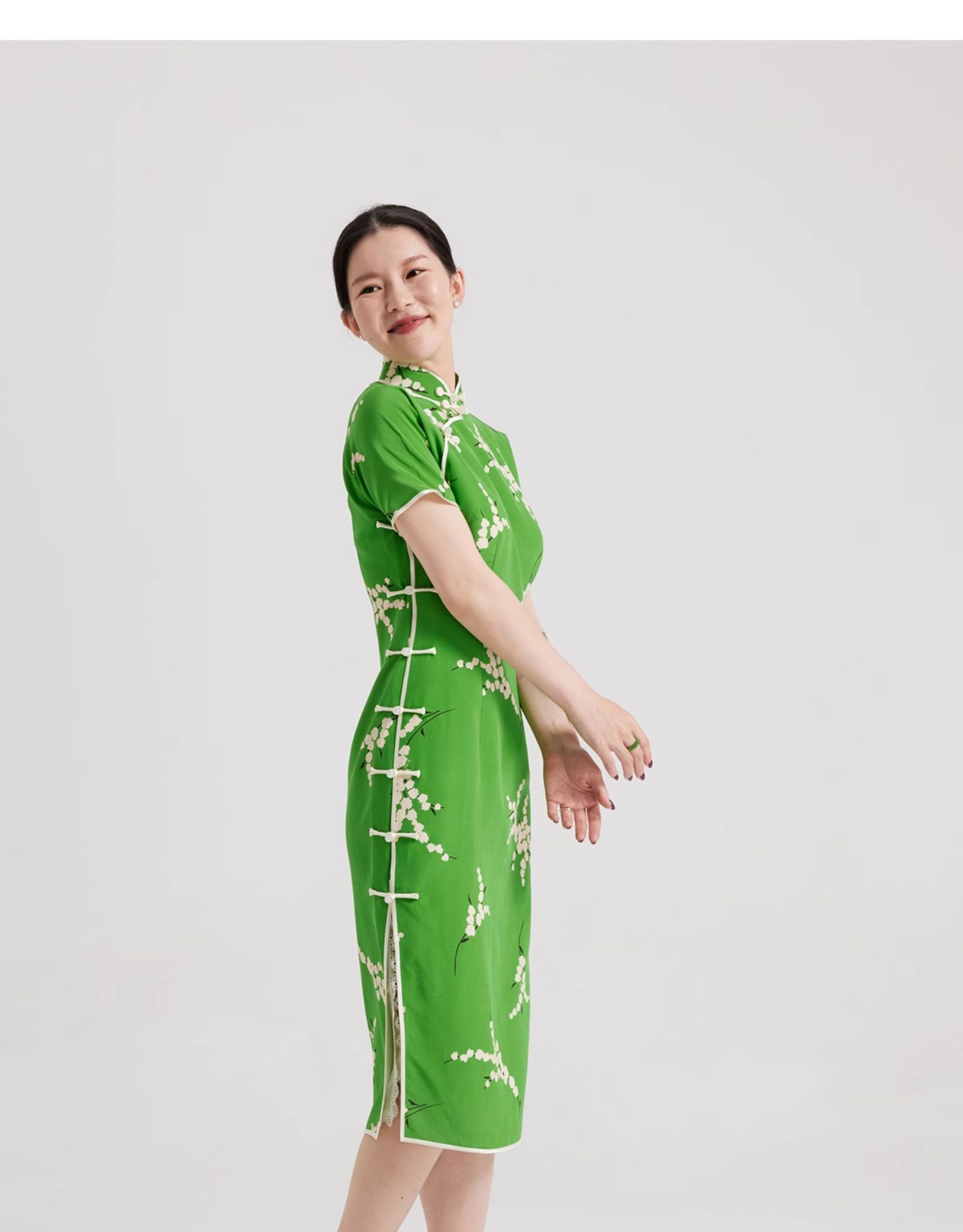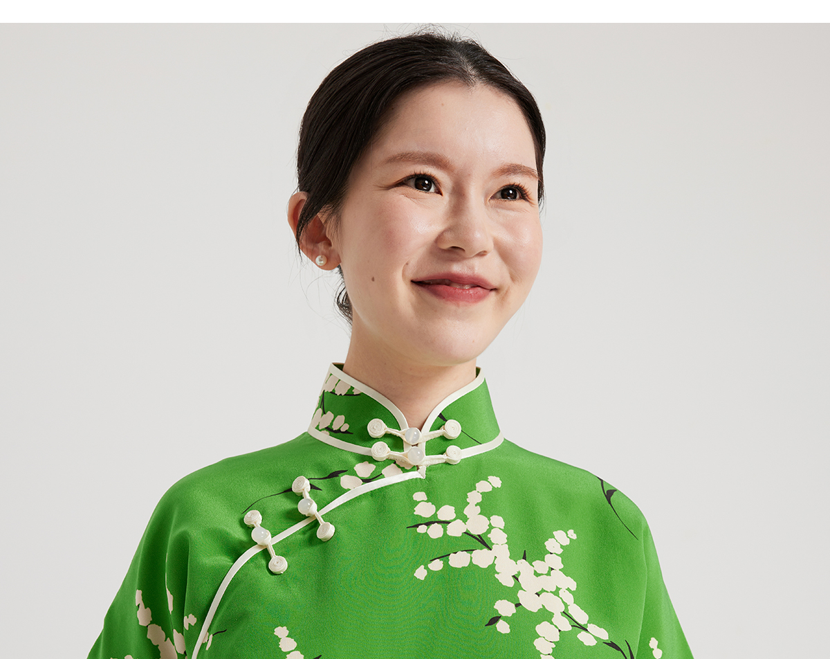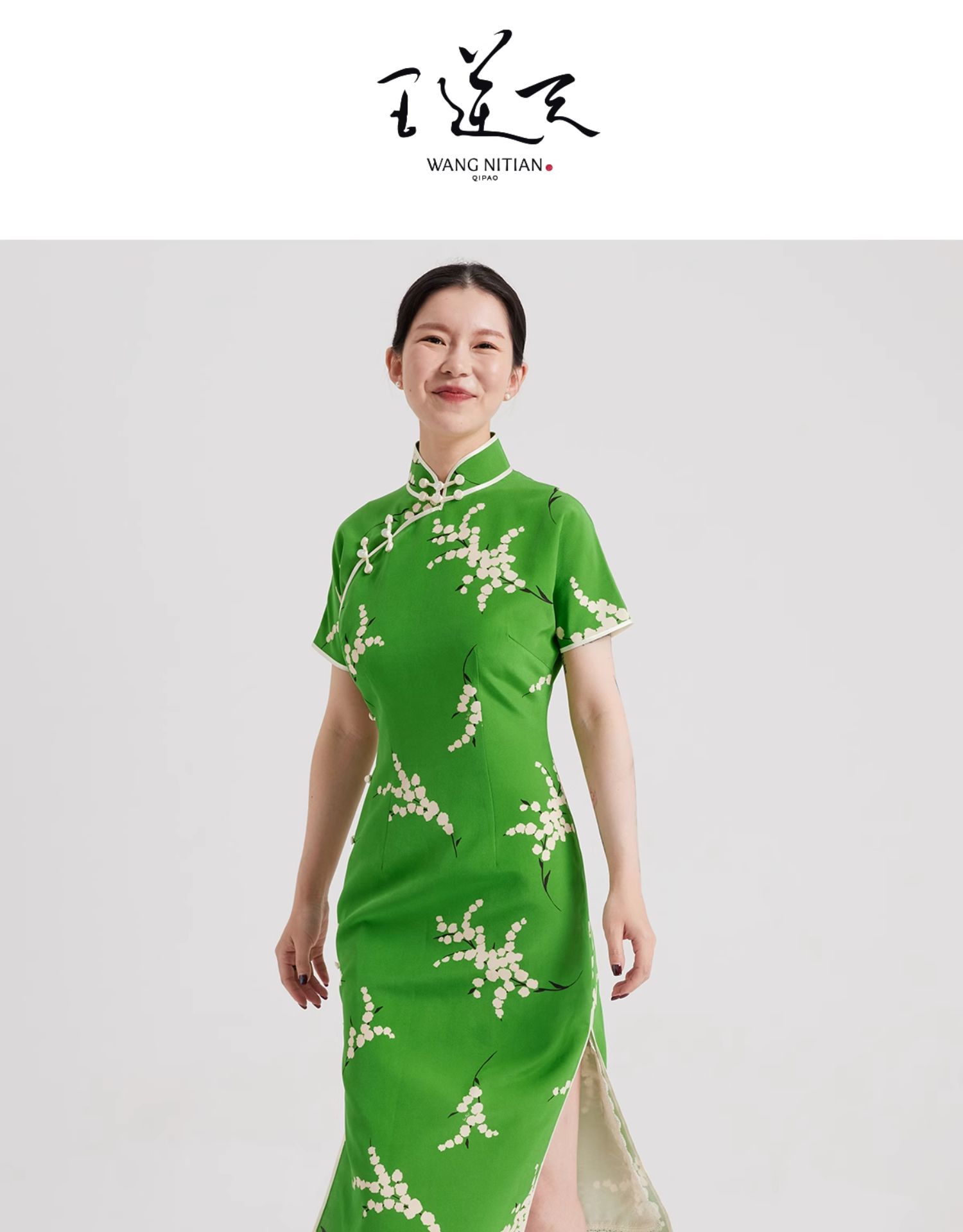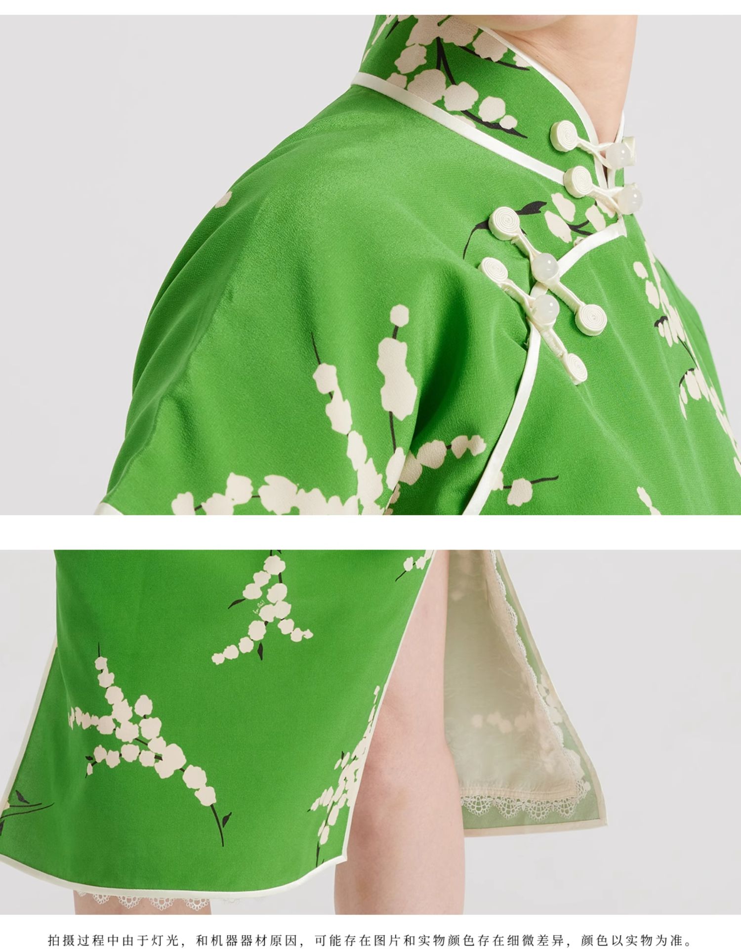 Asaya328 - Wang Antian s original new all silk handmade ancient style large open collar elegant green white slimming cheongsam