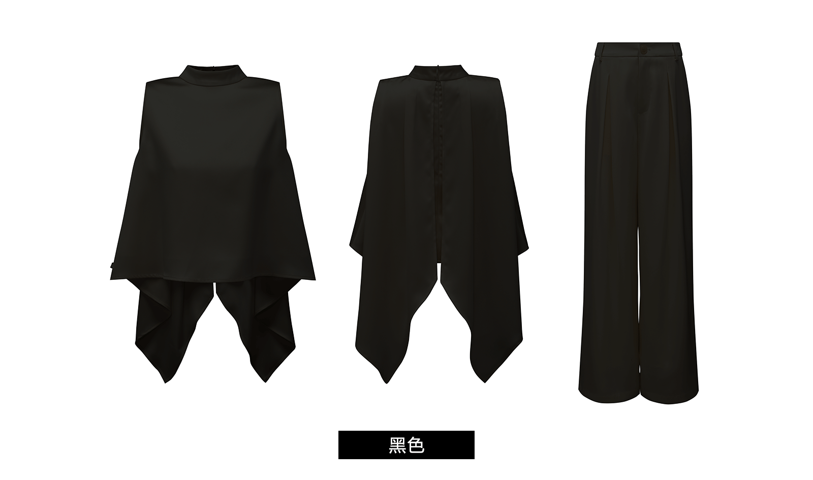 Color classification | Beige top, beige pants, dark green top, dark green pants, black top, black pants |