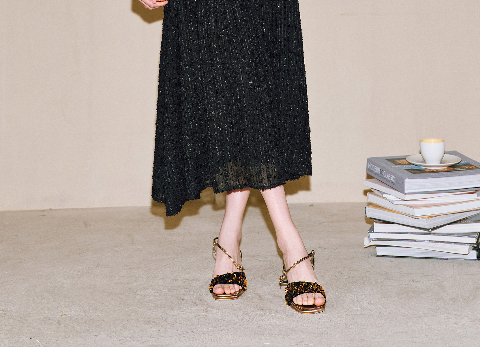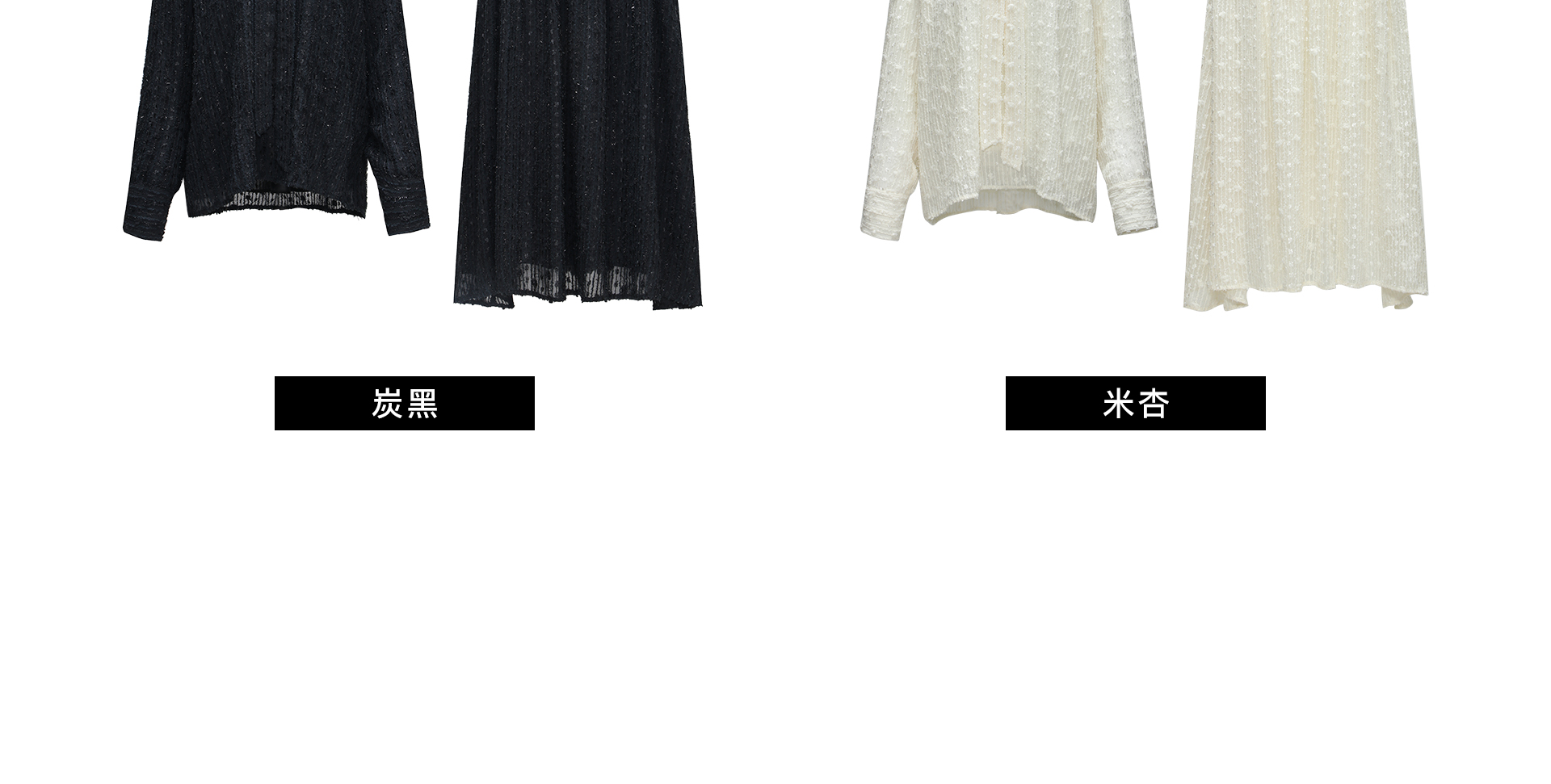 Color classification | Rice Apricot Top, Rice Apricot Half Skirt, Carbon Black Top, Carbon Black Half Skirt |