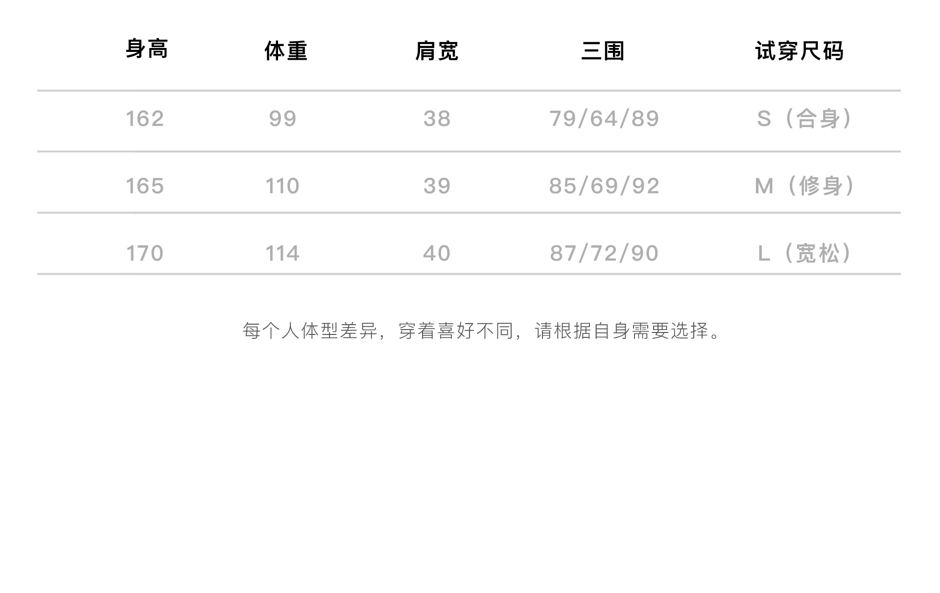 size | S M L |