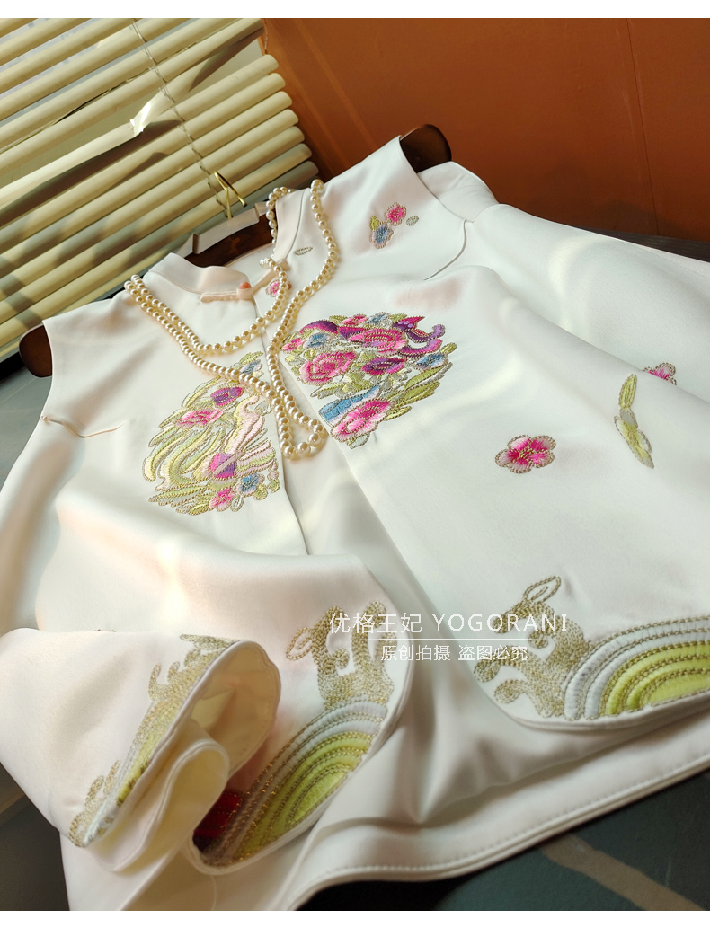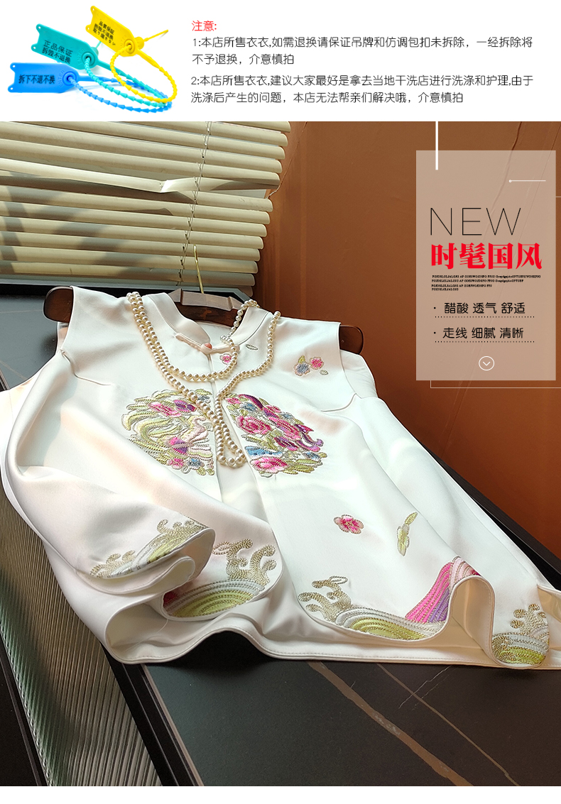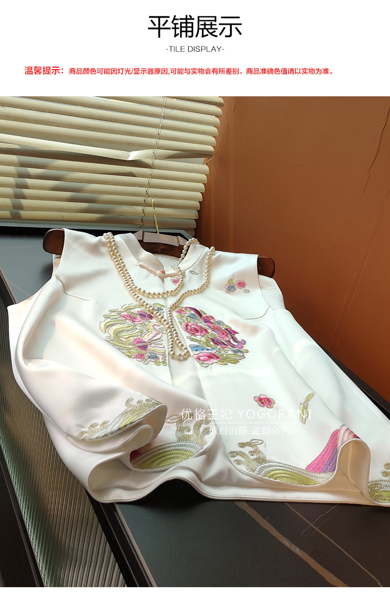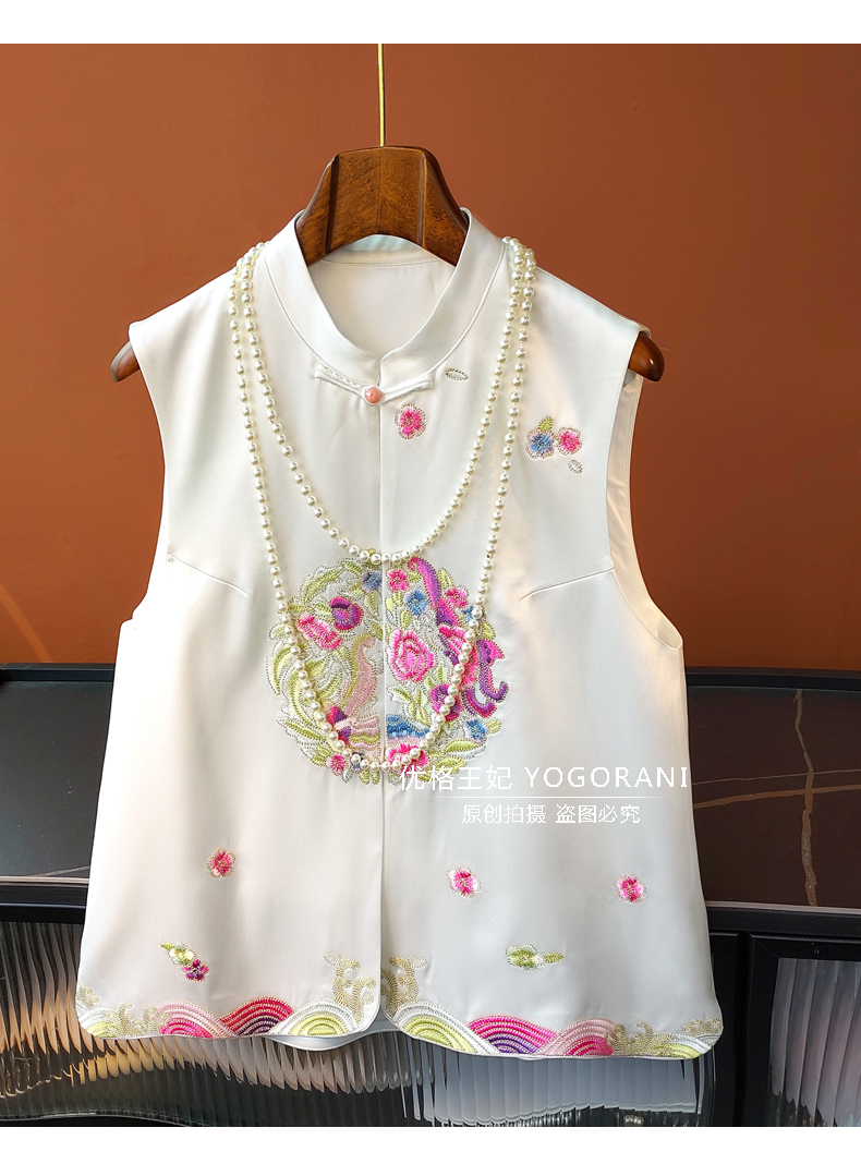 ASAYA2619 New Chinese style embroidered retro buckle acetate satin vest