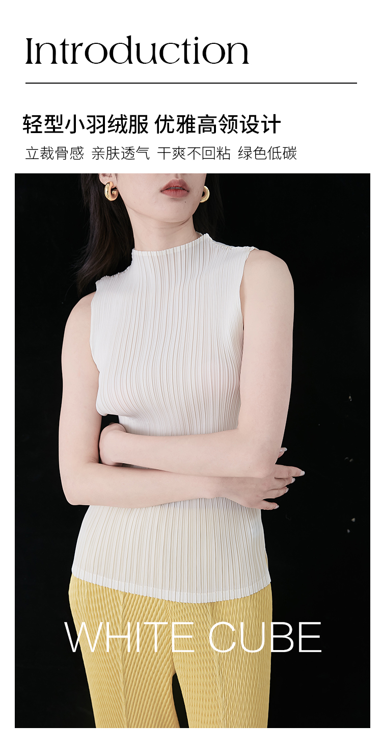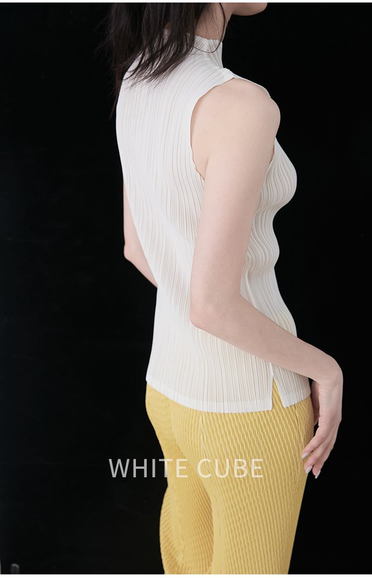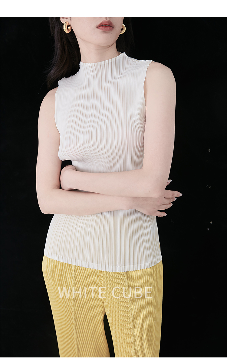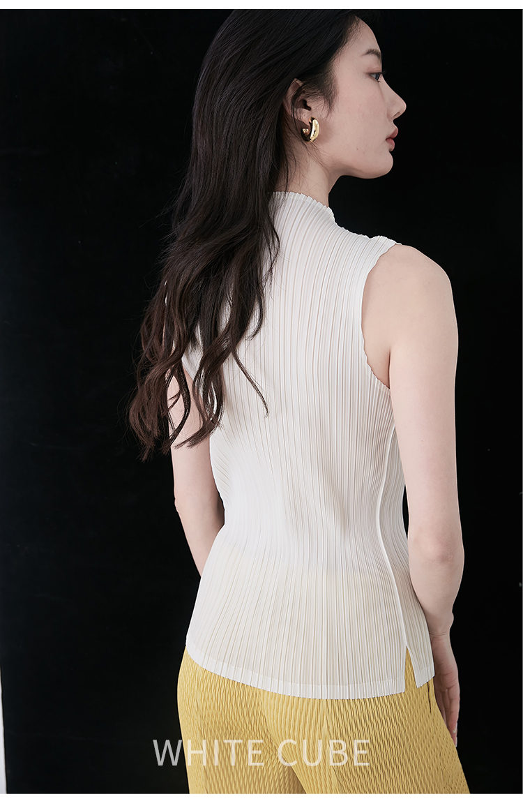 Asaya911 - Whitecube2025 semi high neck slim fit sleeveless pleated top for women loose and simple white commuter vest