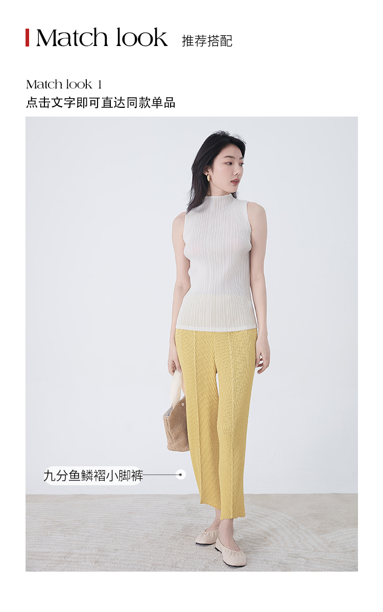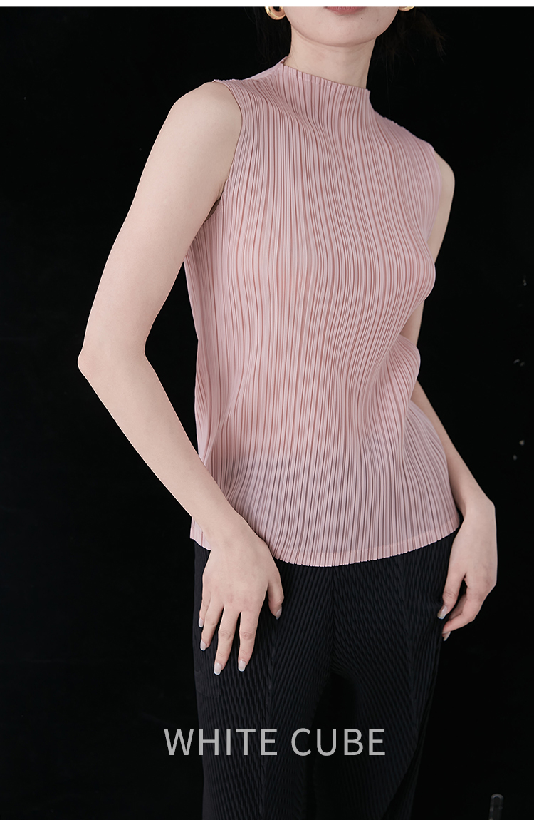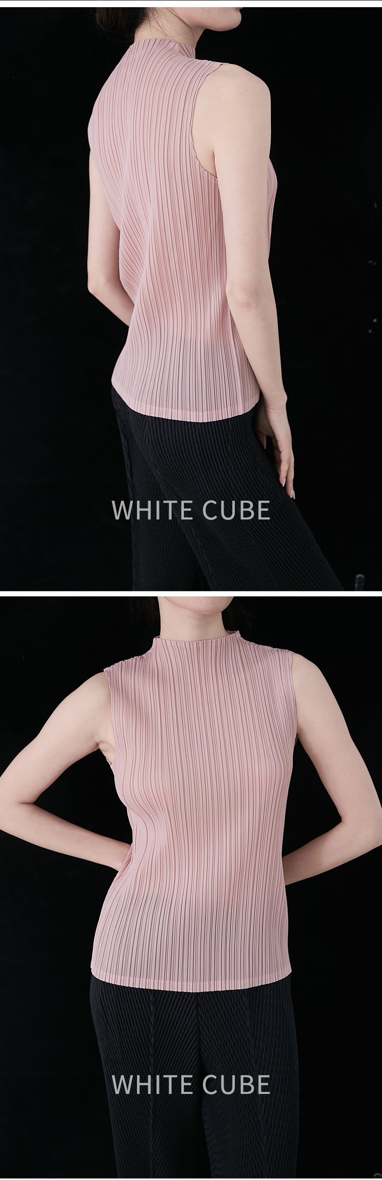 Asaya911 - Whitecube2025 semi high neck slim fit sleeveless pleated top for women loose and simple white commuter vest