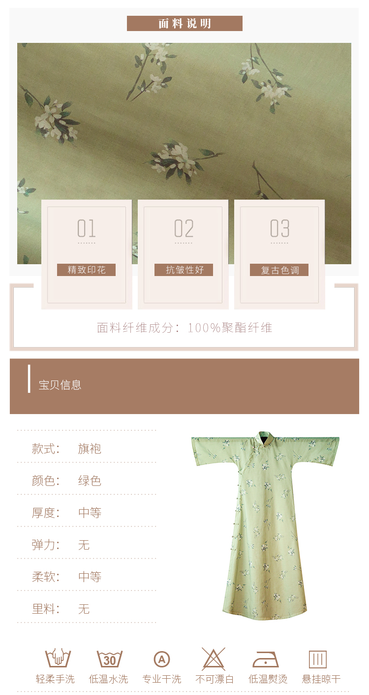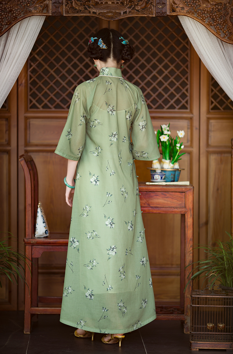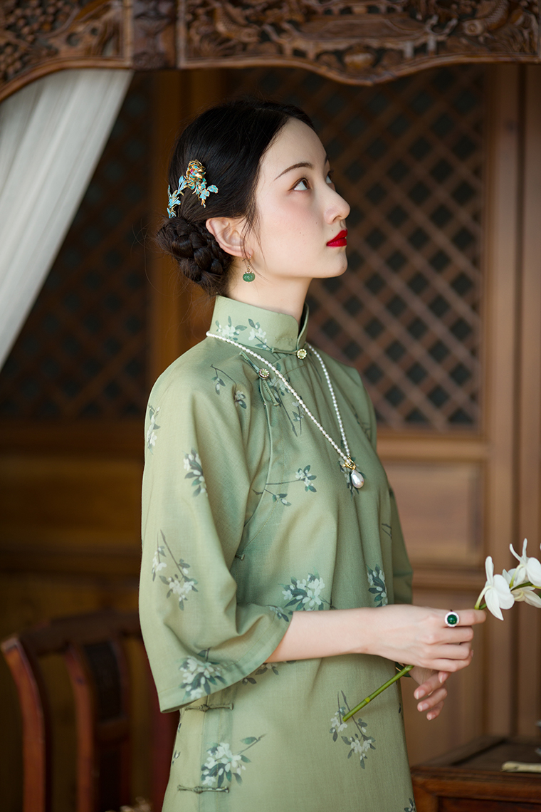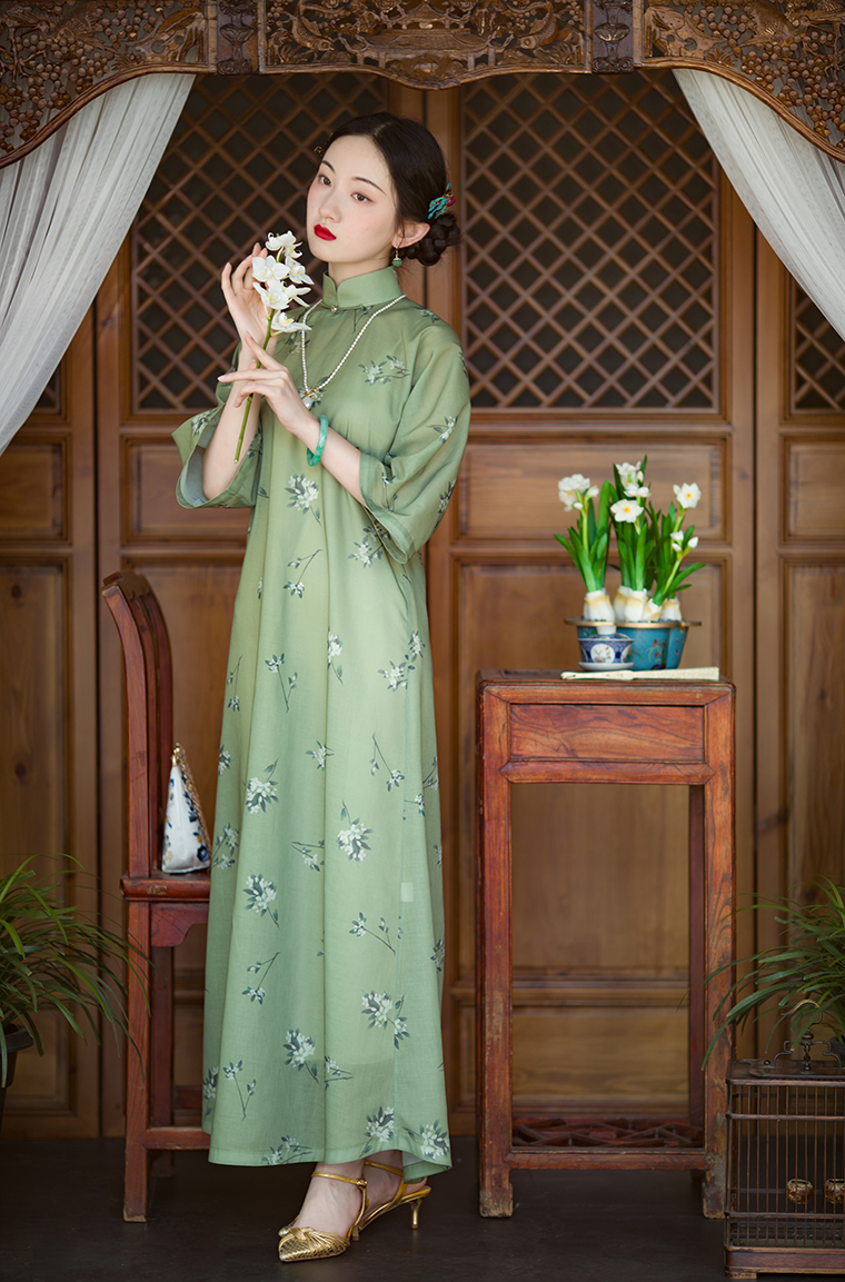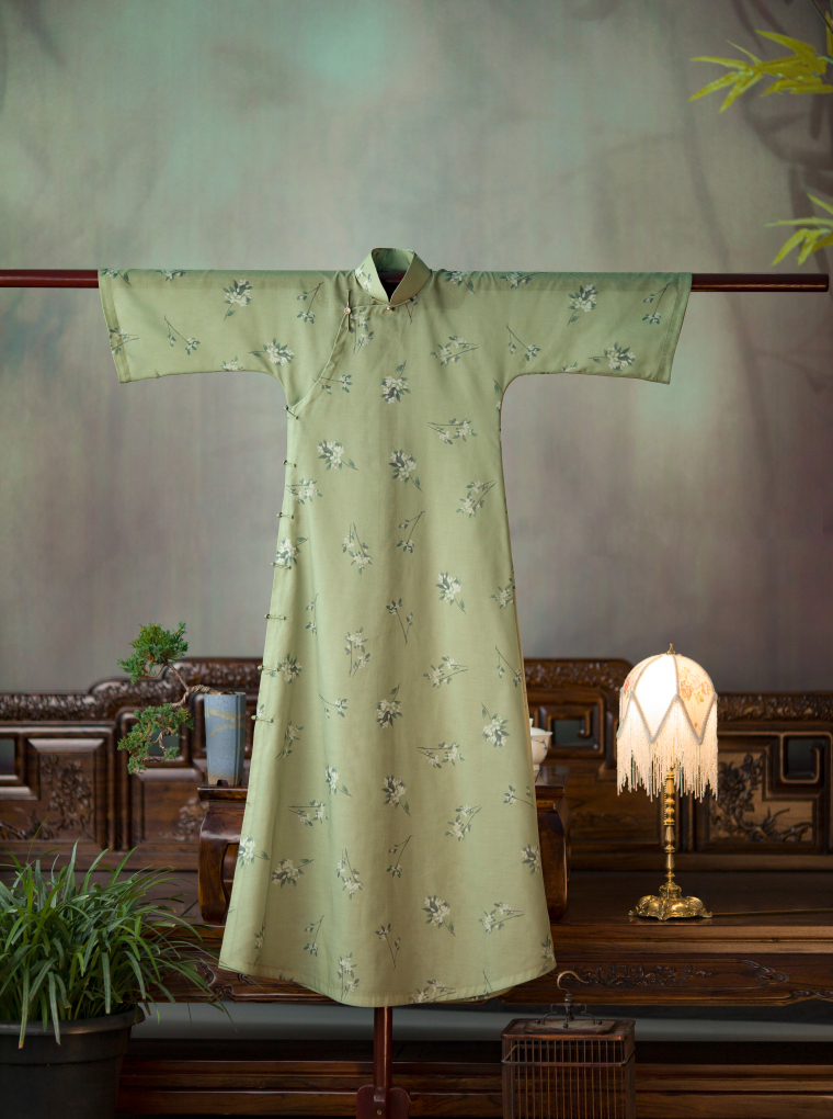 Asaya0273 - Wilderness in the mountains and wilderness One city style fluff Inverted sleeves printed with retro Republic of China style cheongsam for daily wear Original