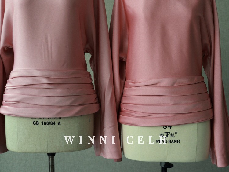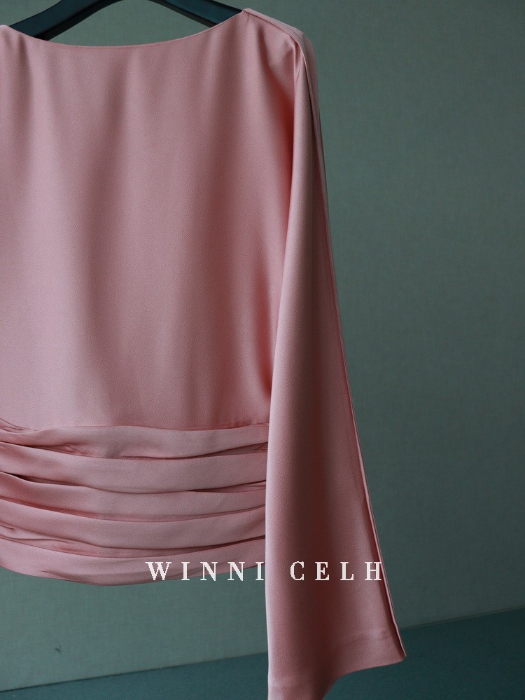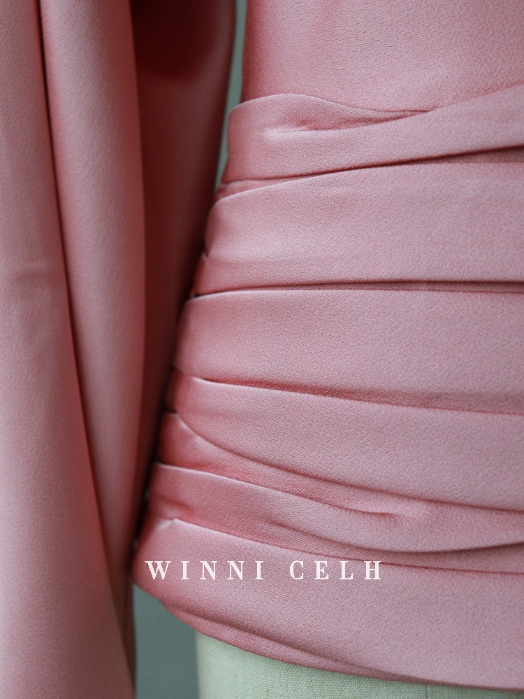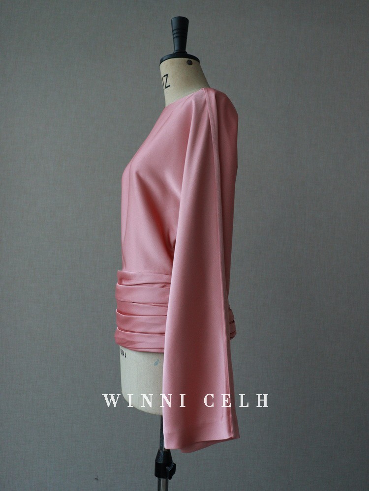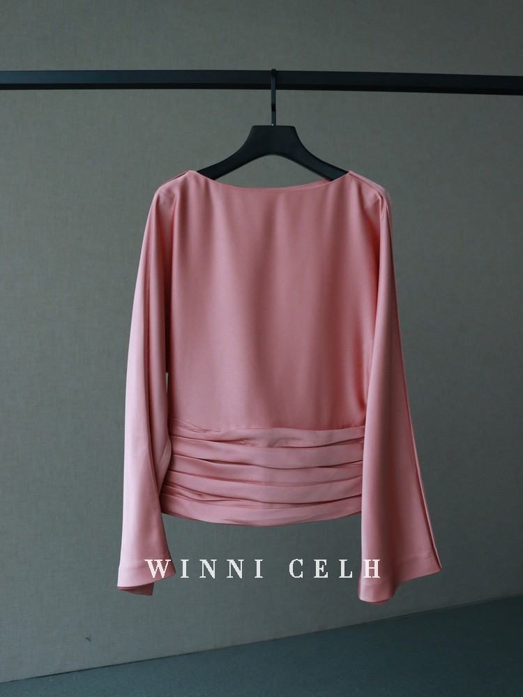 Asaya1200 - WINNI CELH spring and summer new elegant texture silky pleated design pullover one shoulder glossy pink top