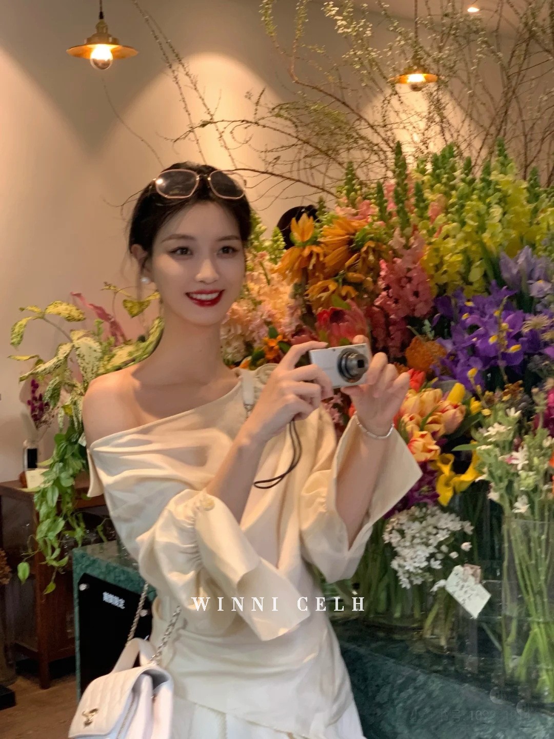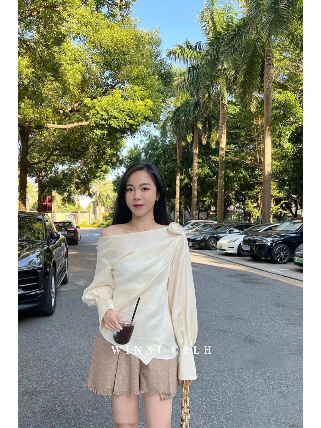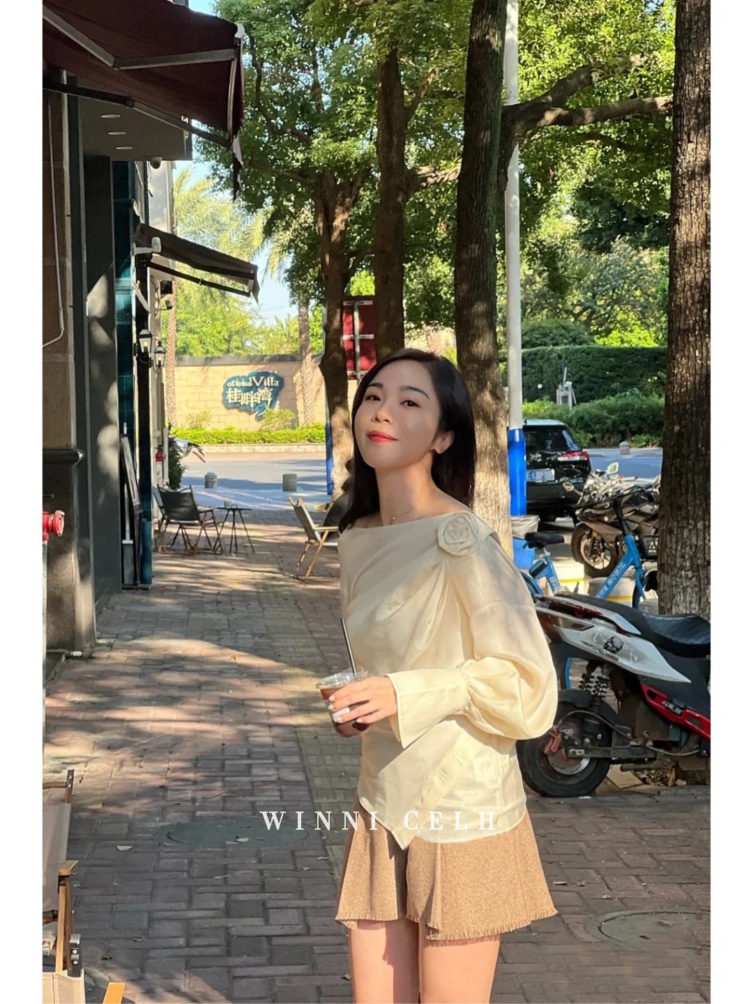 ASAYA2767 Niche rose flower oblique shoulder off-shoulder shirt long-sleeved women’s top