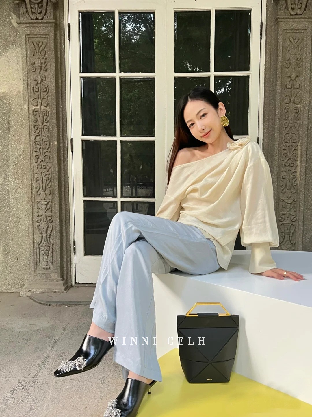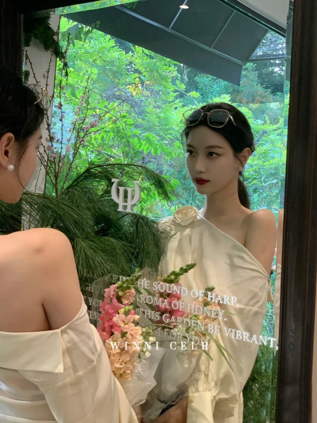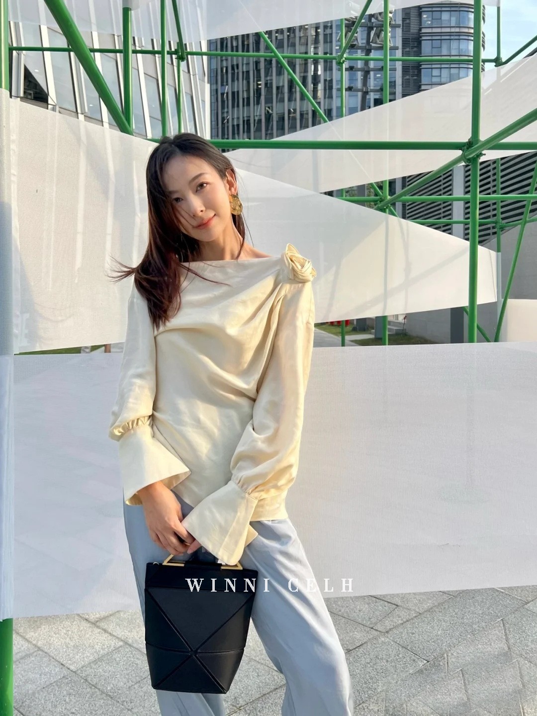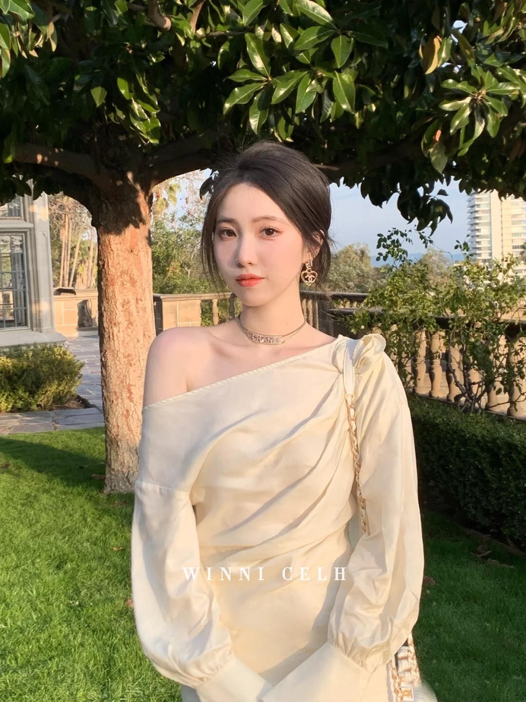ASAYA2767 Niche rose flower oblique shoulder off-shoulder shirt long-sleeved women’s top