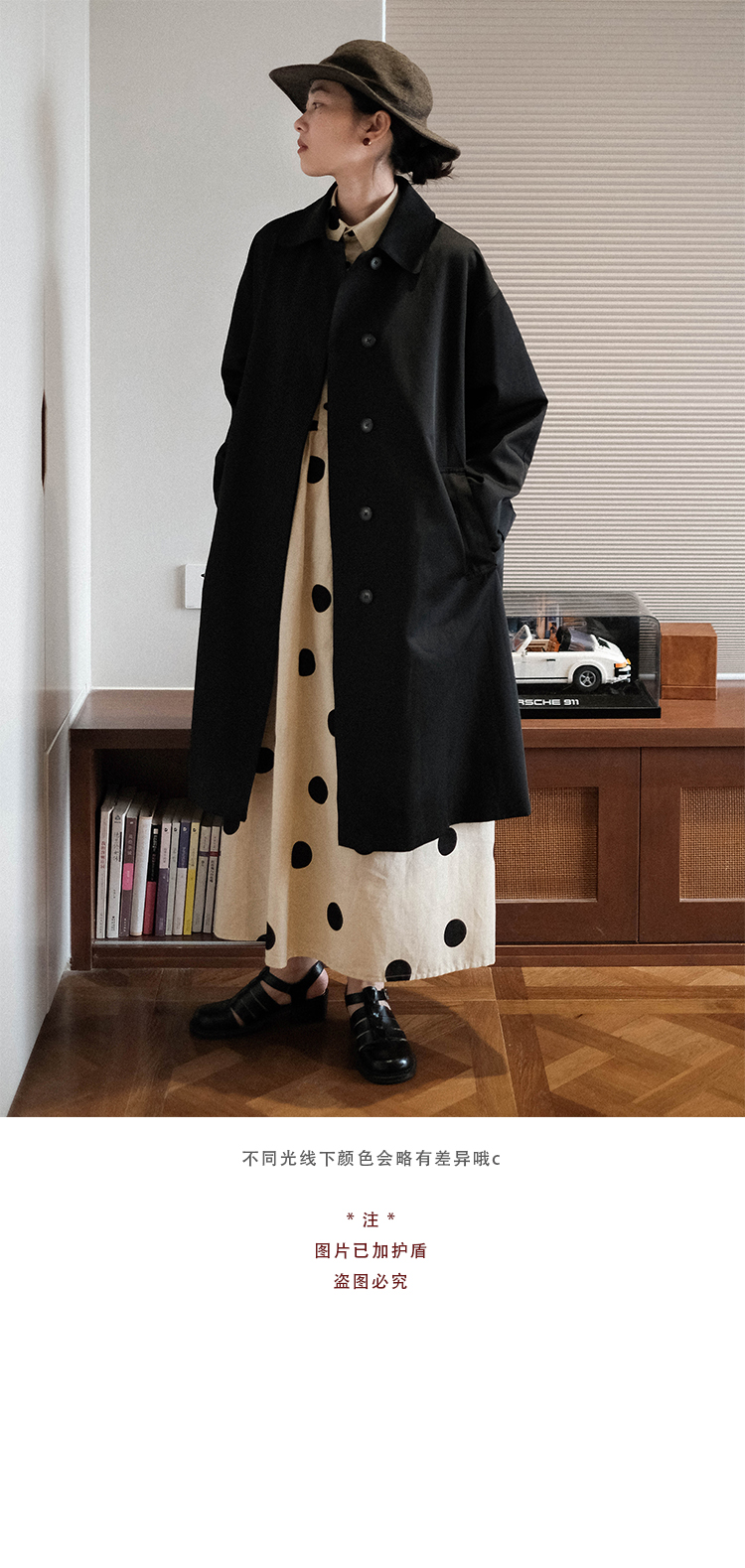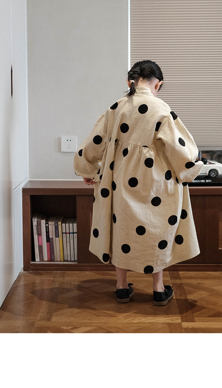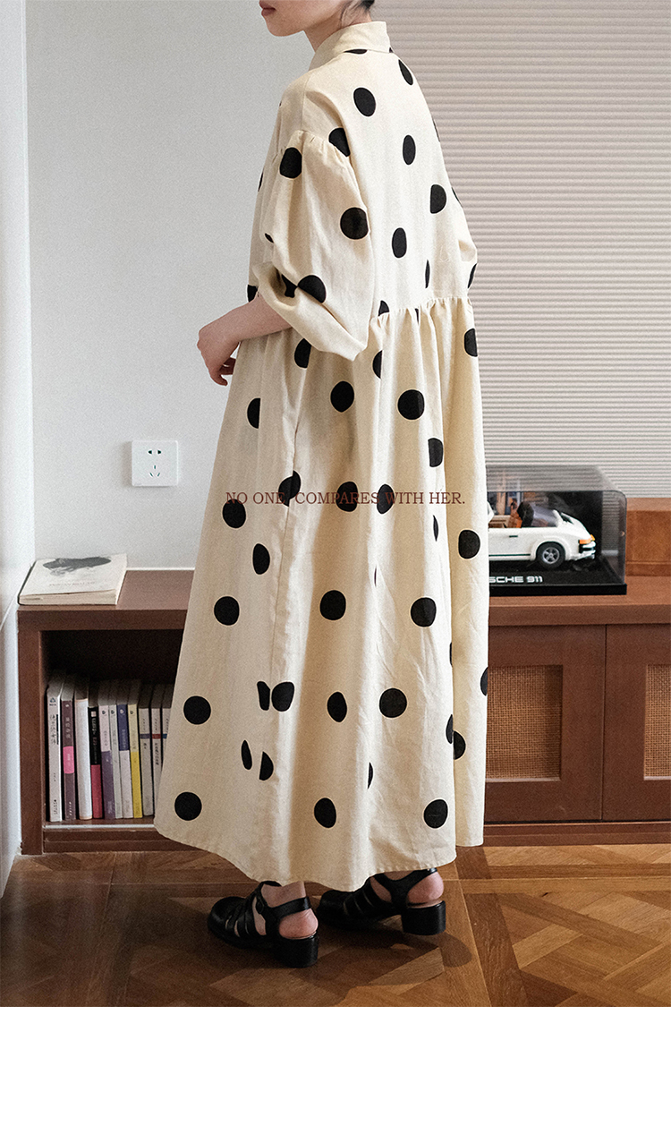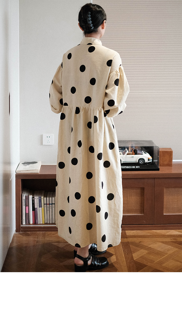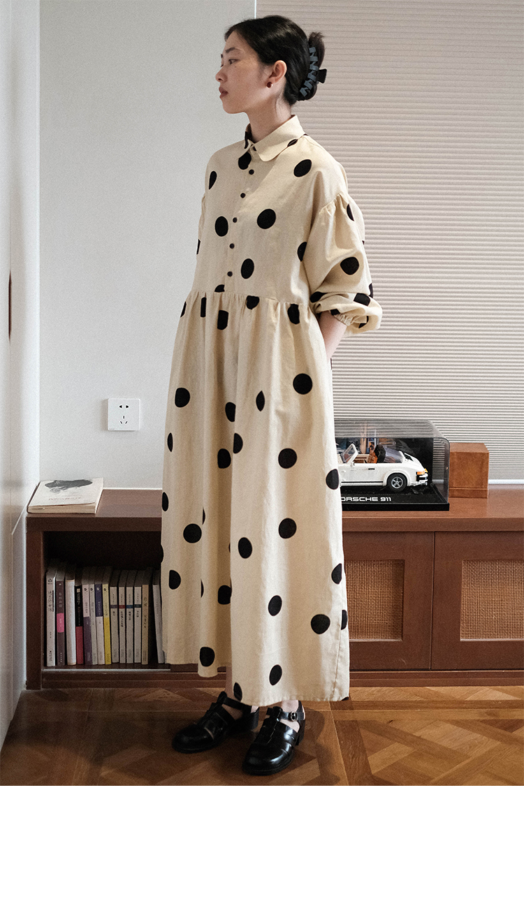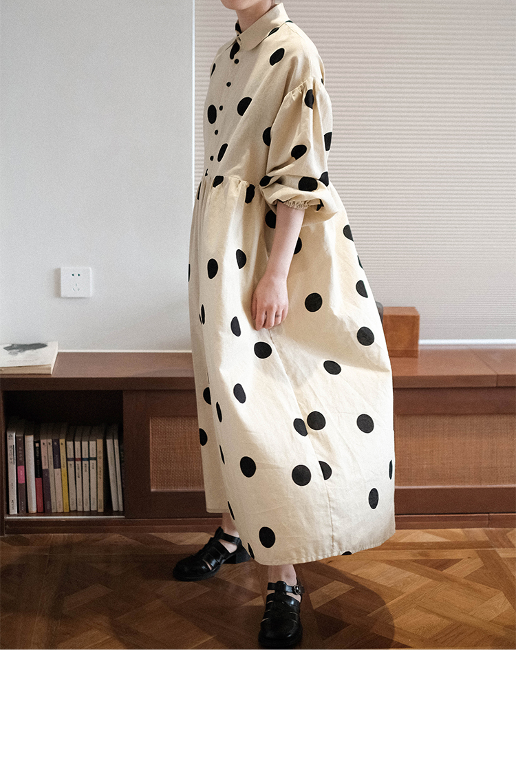 ASAYA3223 Niche design Japanese loose big polka dot cotton and linen dress