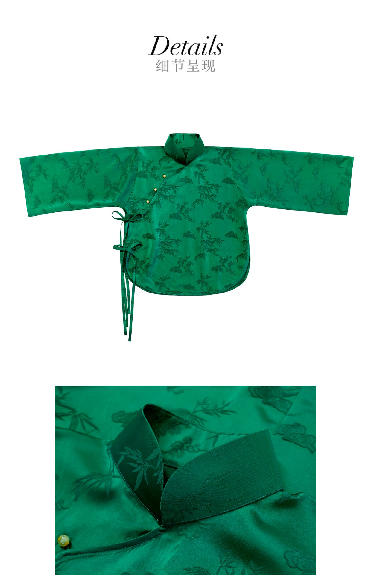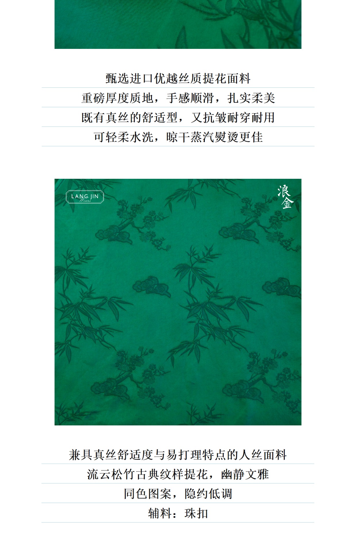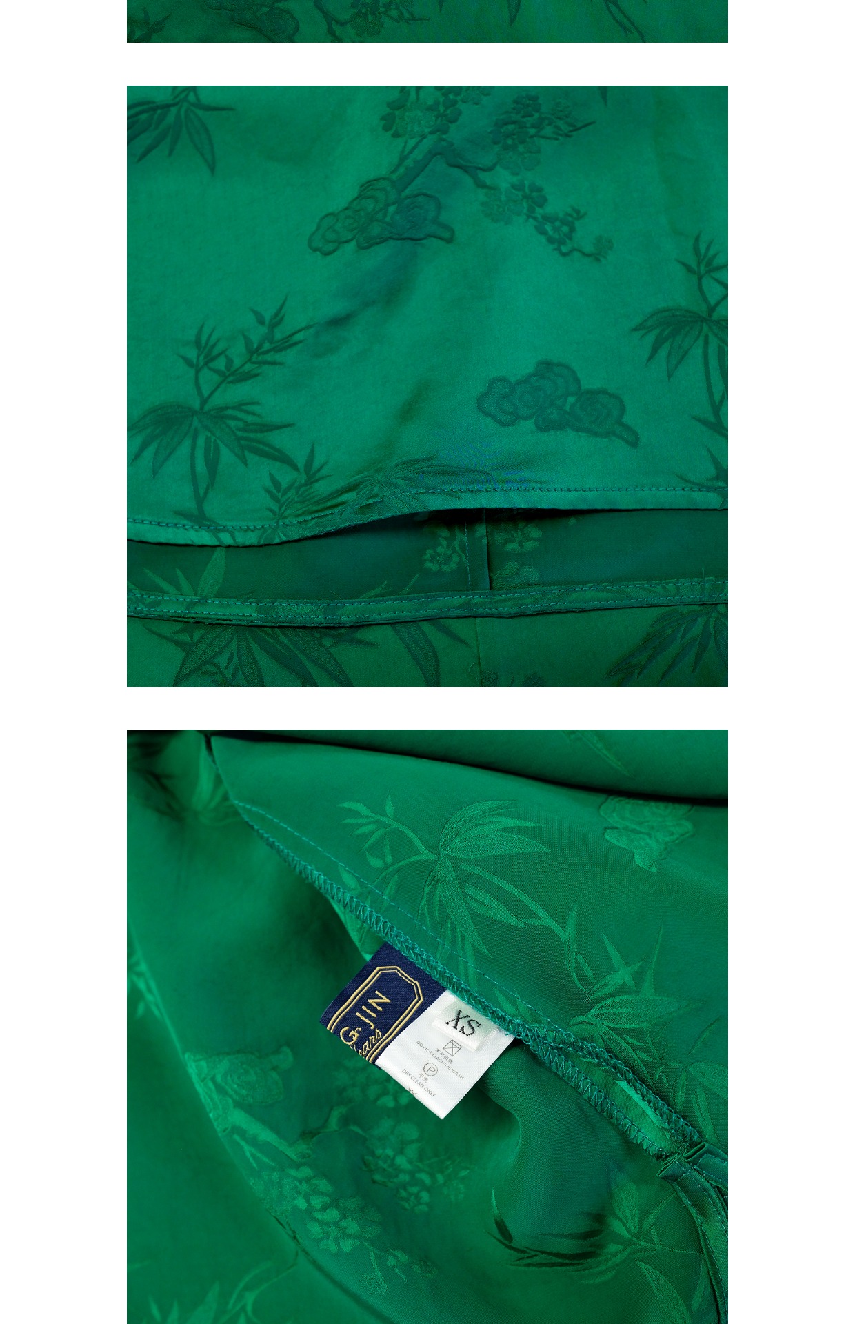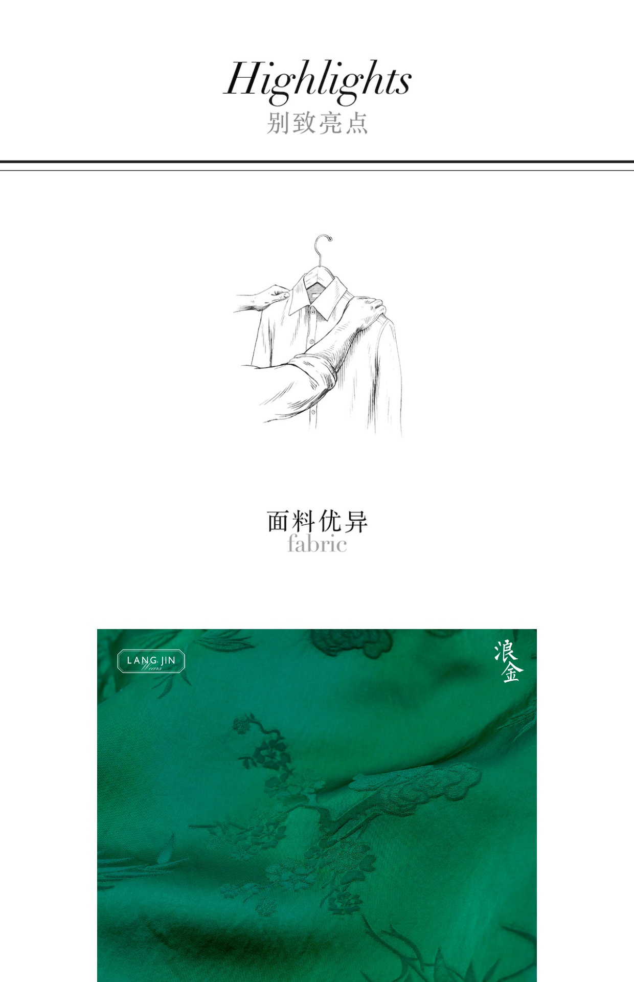Asaya1351 - Women s cheongsam top with stand up collar jacquard pattern and side ties Chinese retro shirt summer green oblique lapel langjin gold