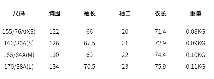 | size | 155/76A(XS) 160/80A(S) 165/84A(M) 170/88A(L) |
