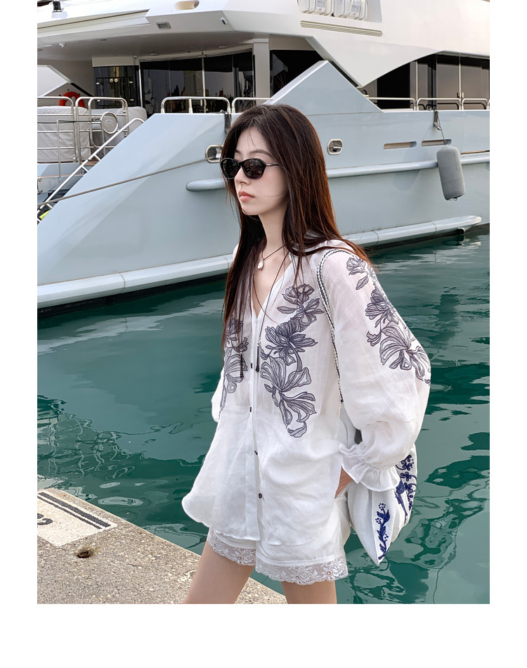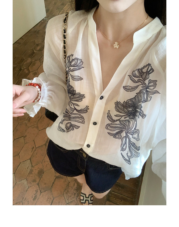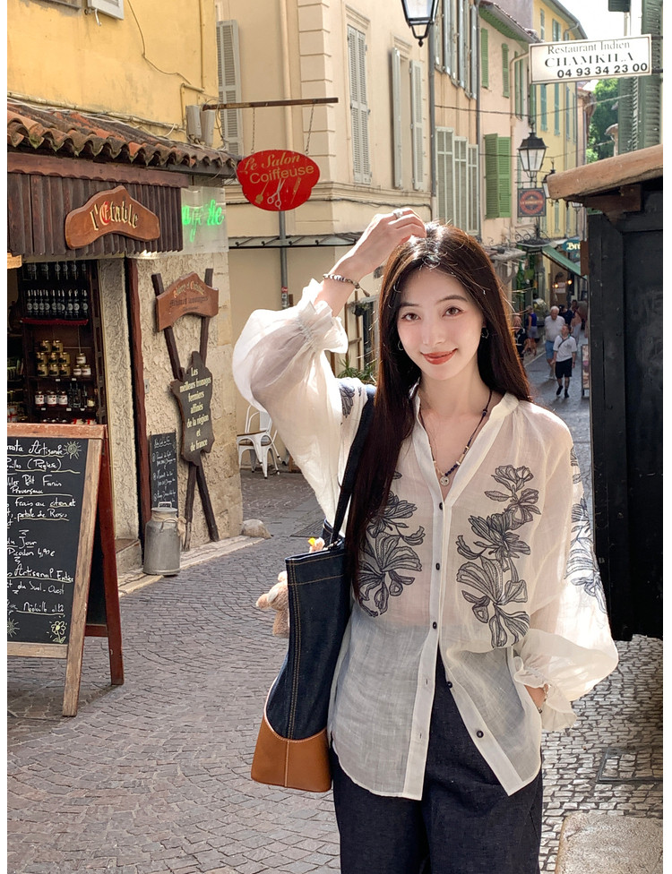 ASAYA5453 – Botanical Sheer Ramie Blouse 🤍🌿