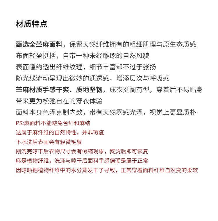 | Material composition | Ramie 100% |