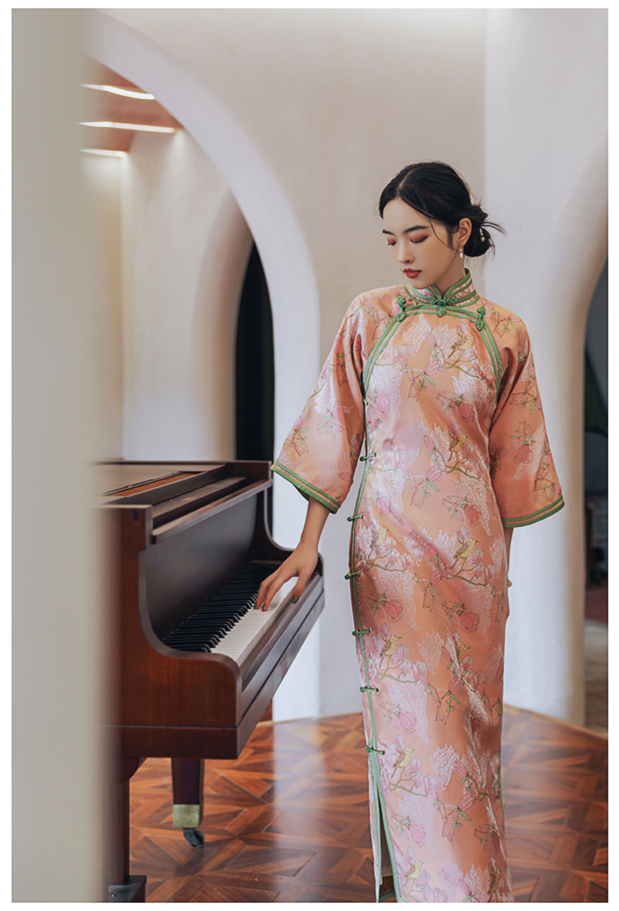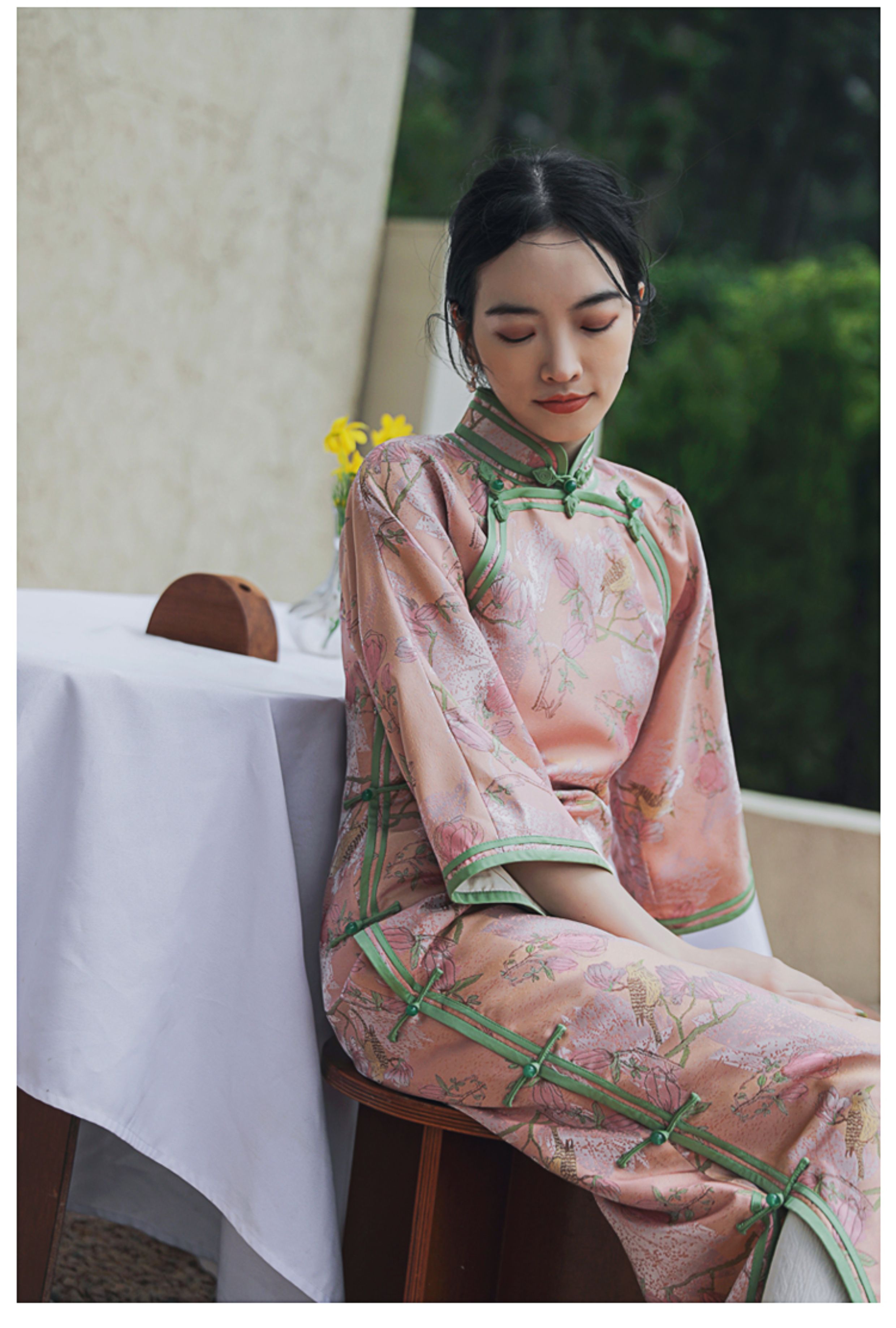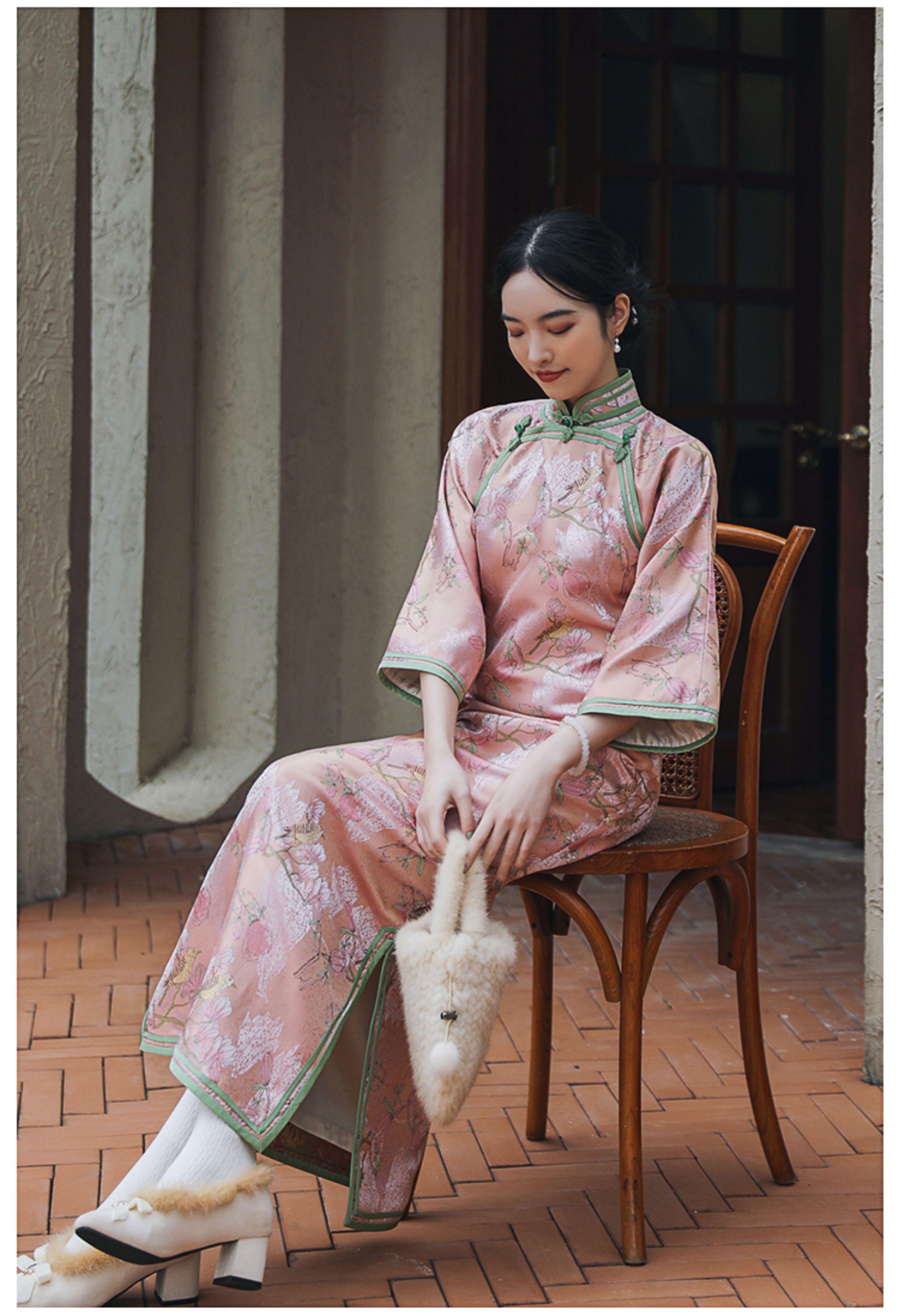 ASAYA 1742 Xiaoxi Fuxia Chinese style double-breasted cheongsam autumn and winter flower and bird jacquard