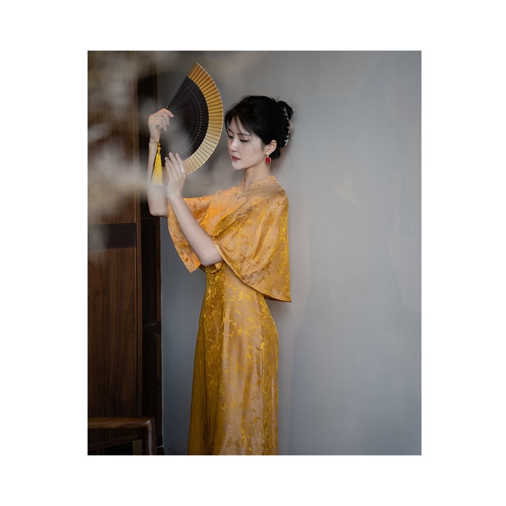 color classification | Fallen leaf yellow in stock, premium black in stock, red in stock, Fallen leaf yellow pre-sale, premium black pre-sale, red pre-sale, Fallen leaf yellow cheongsam shawl two-piece set in stock, red cheongsam shawl two-piece set in stock |