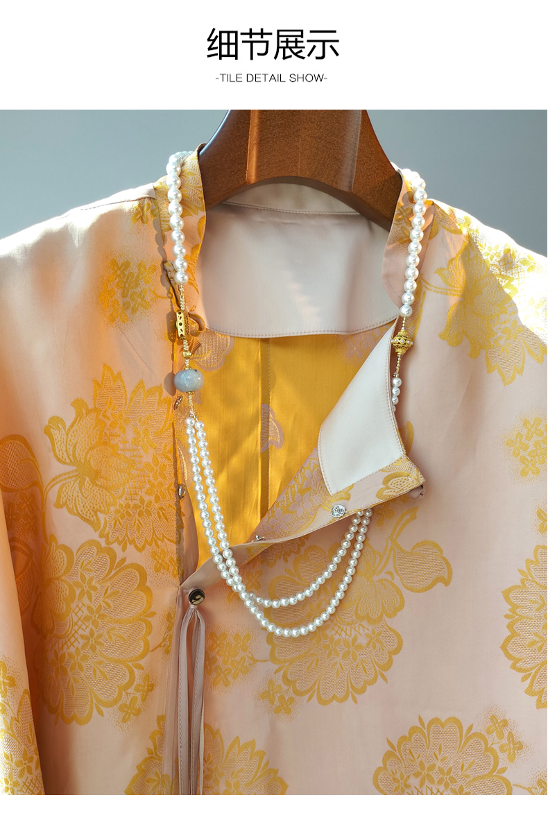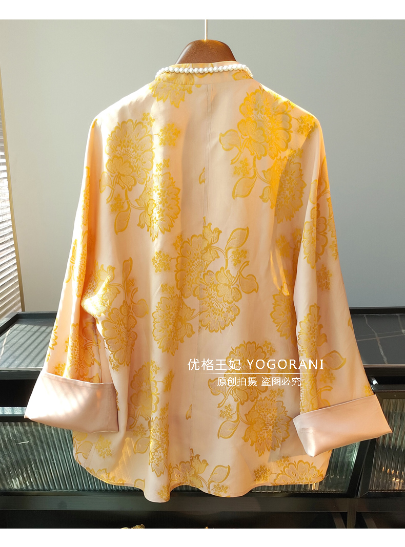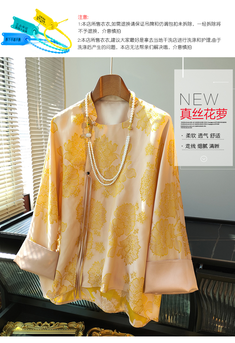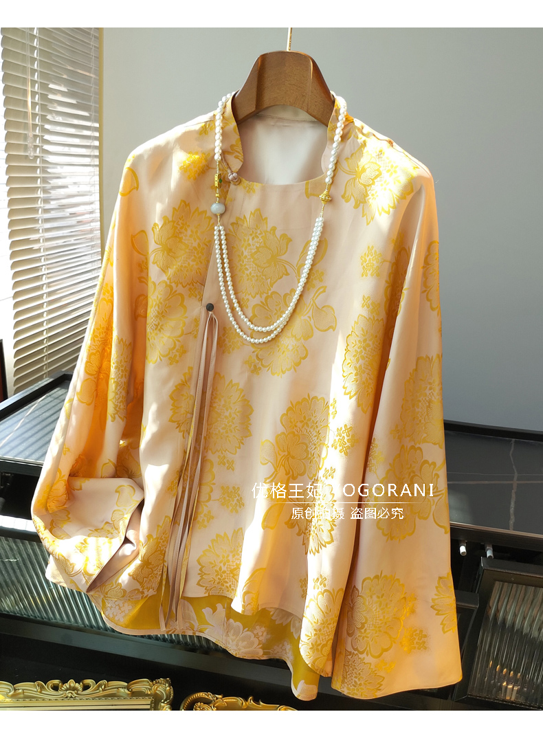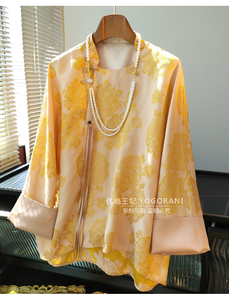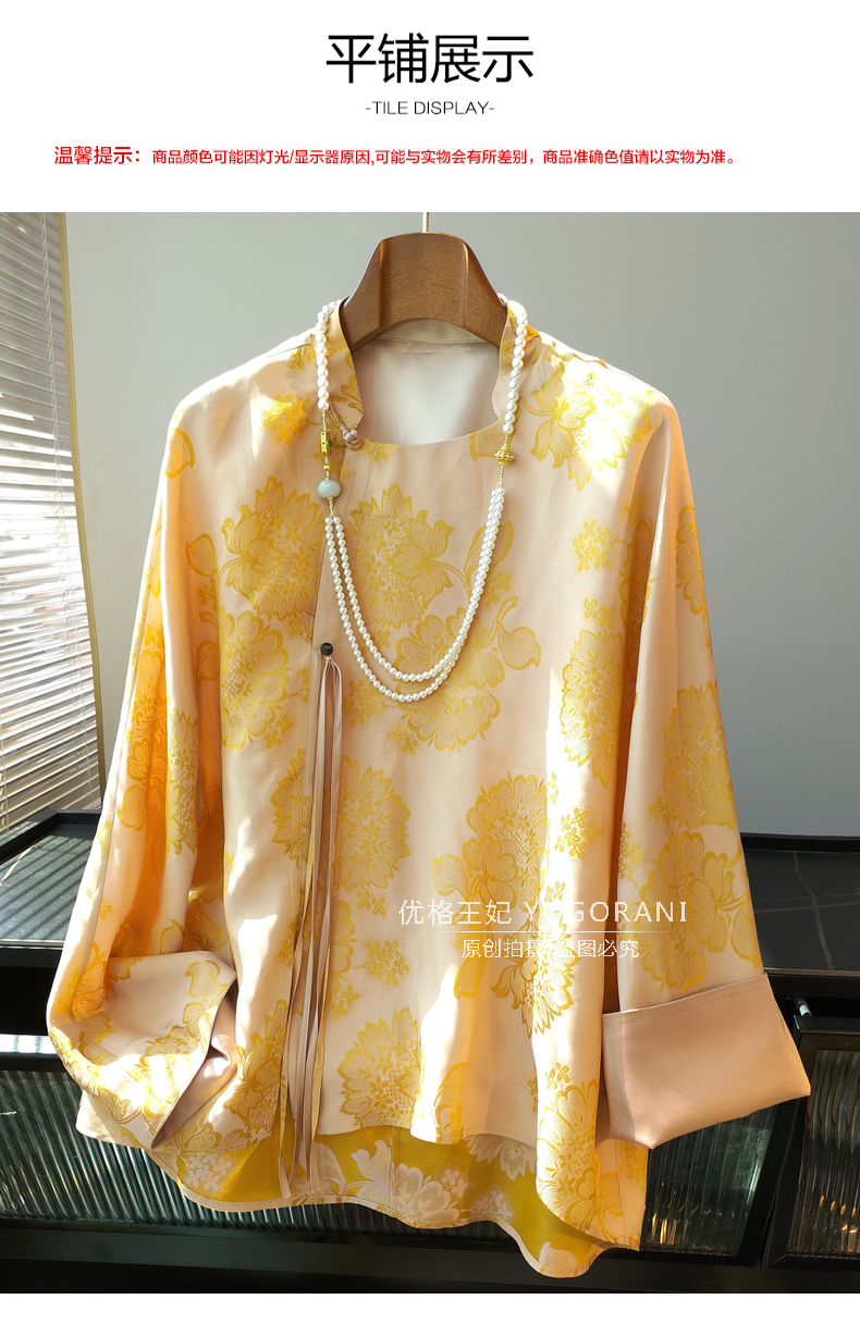 ASAYA2646 Retro buttoned long-sleeved silk top