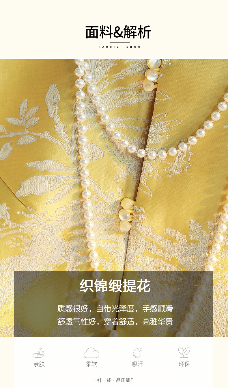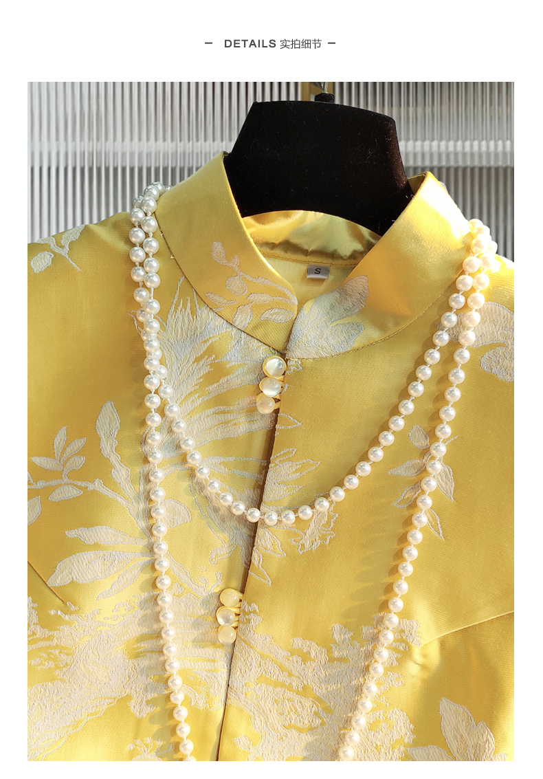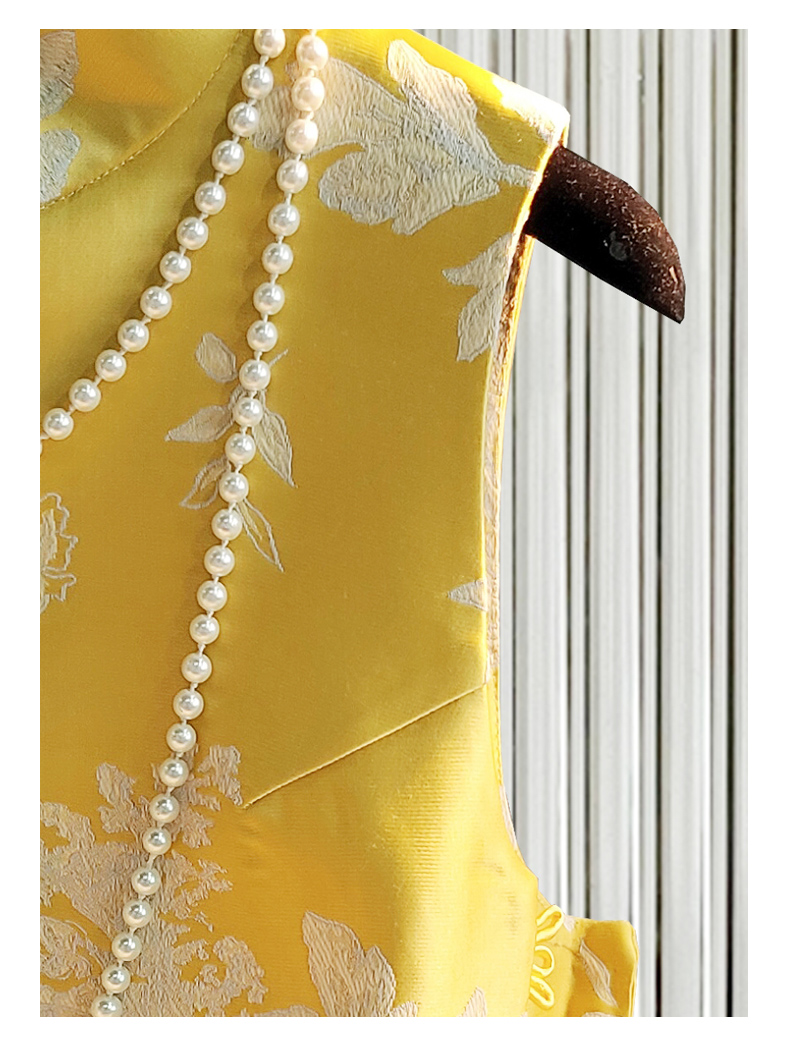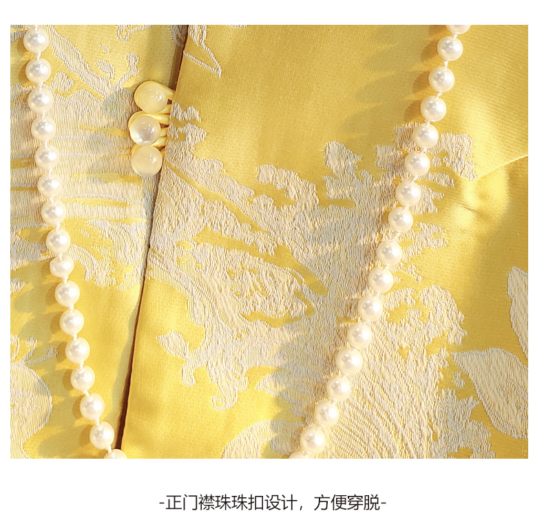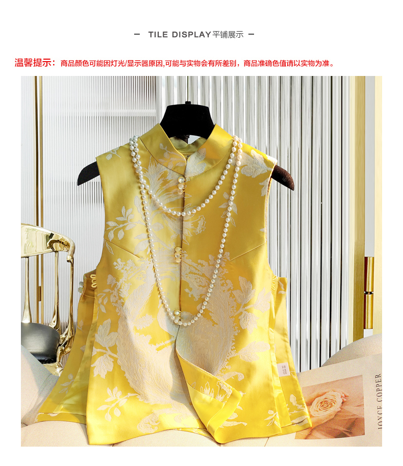 Asaya458 - Yellow Retro Chinese Vest Women s Autumn Dress Improved Cheongsam Jacquard Silk Slimming Tank Top Camry Shoulder Chinese Style Tang Dress