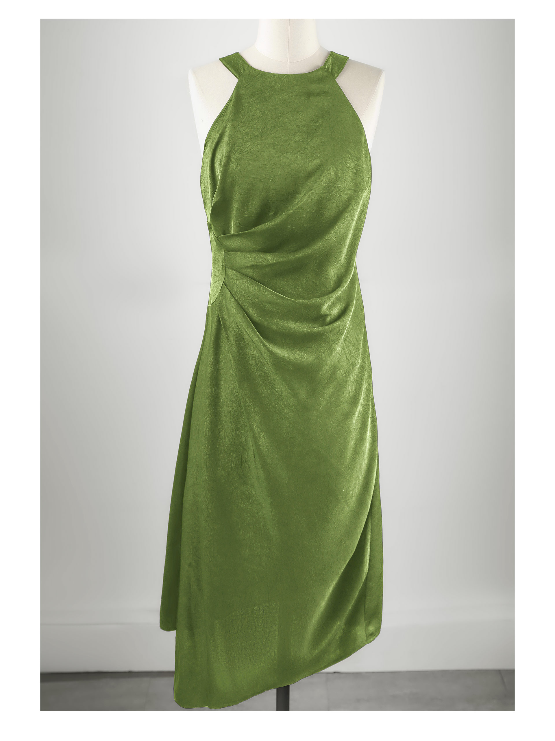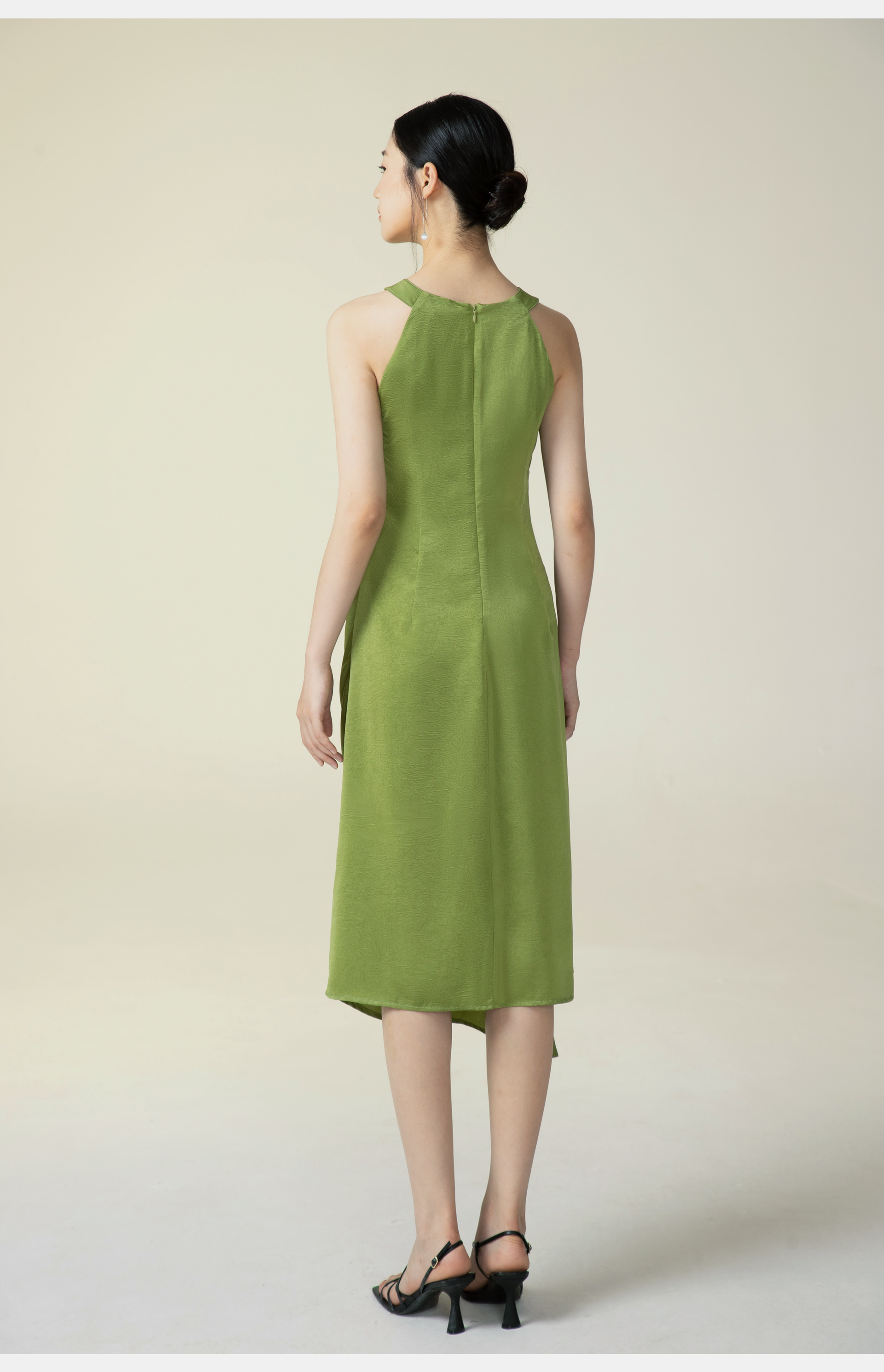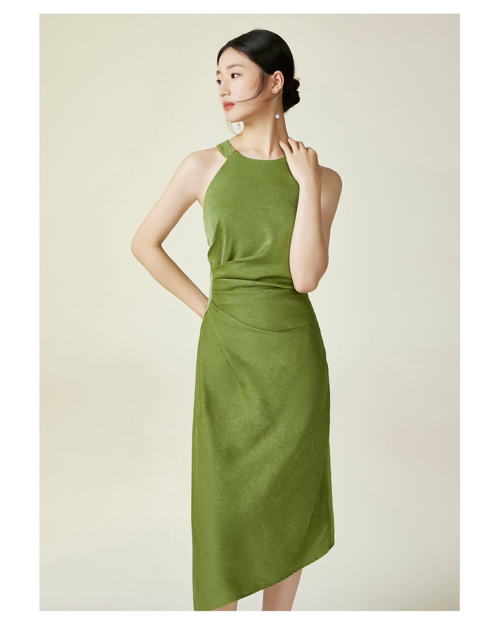 ASAYA2987 Simple design pleated waist slimming halterneck sleeveless dress