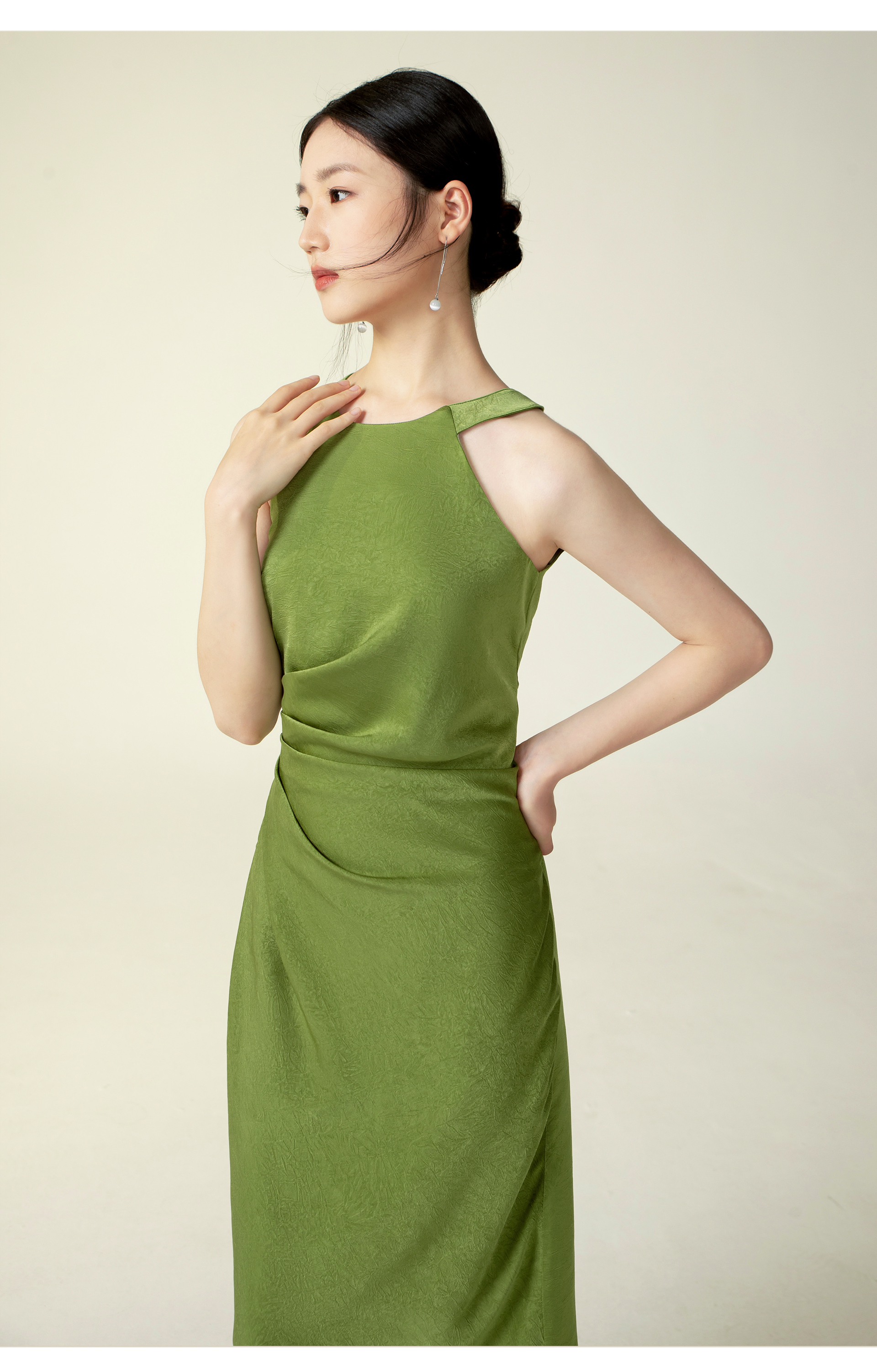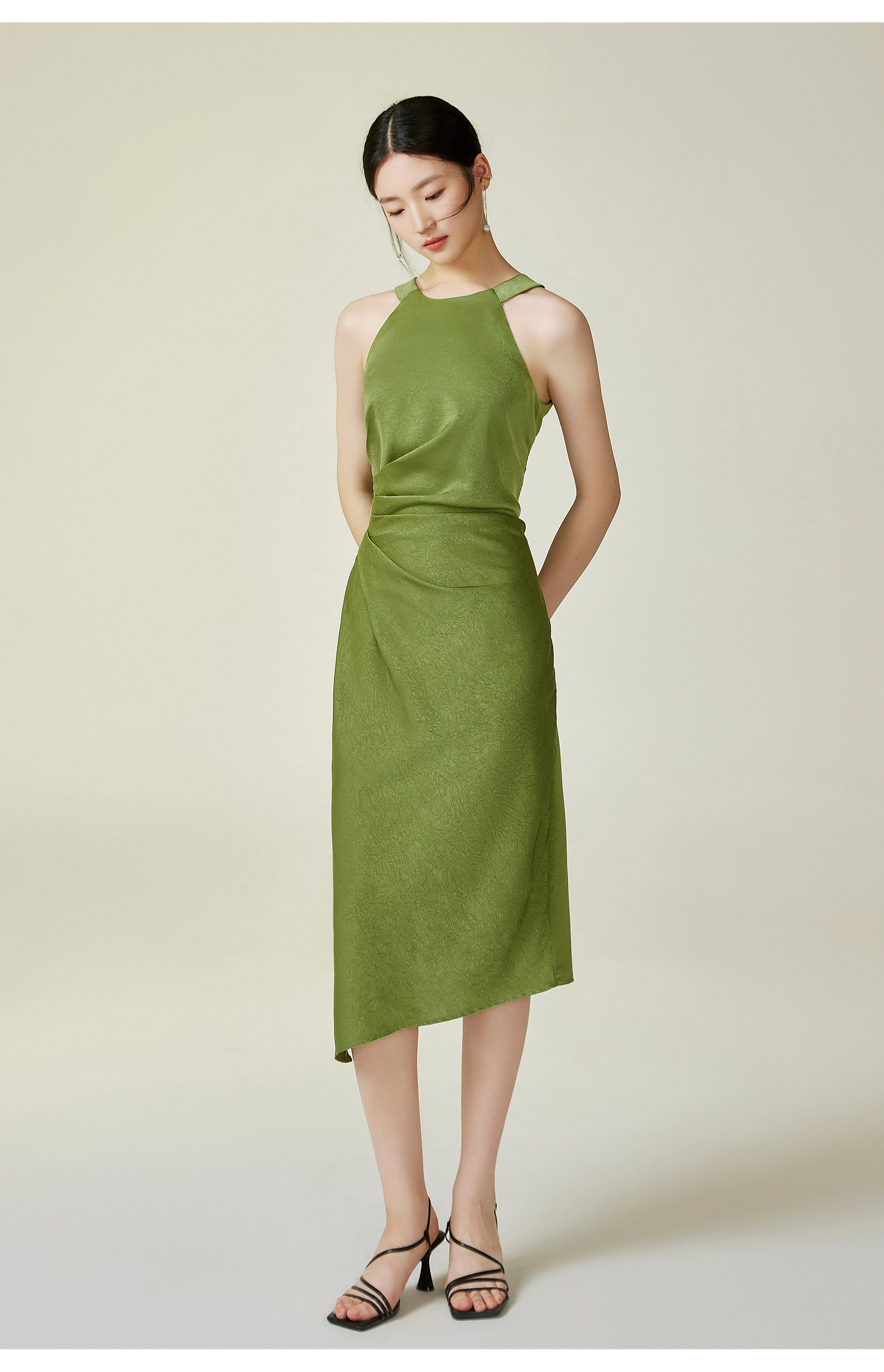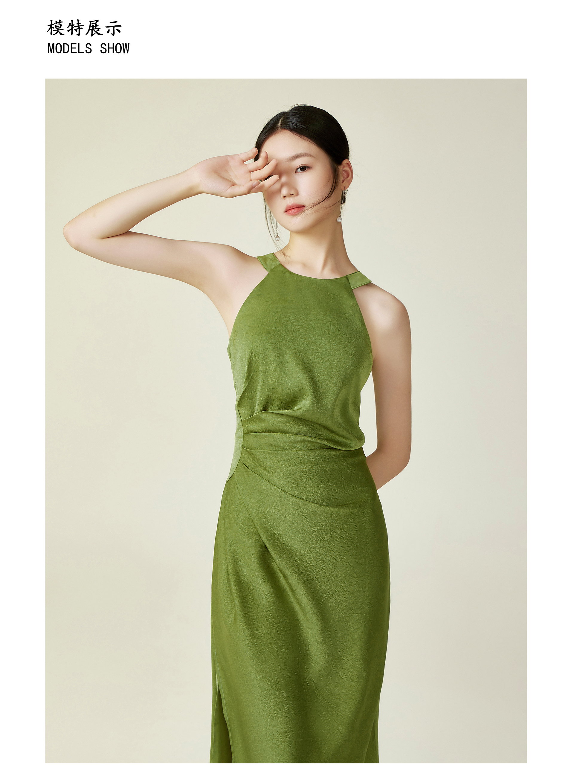 color classification | Green pleated waist dress reminder: The first batch will be shipped within 10-15 days. Black pleated waist dress |