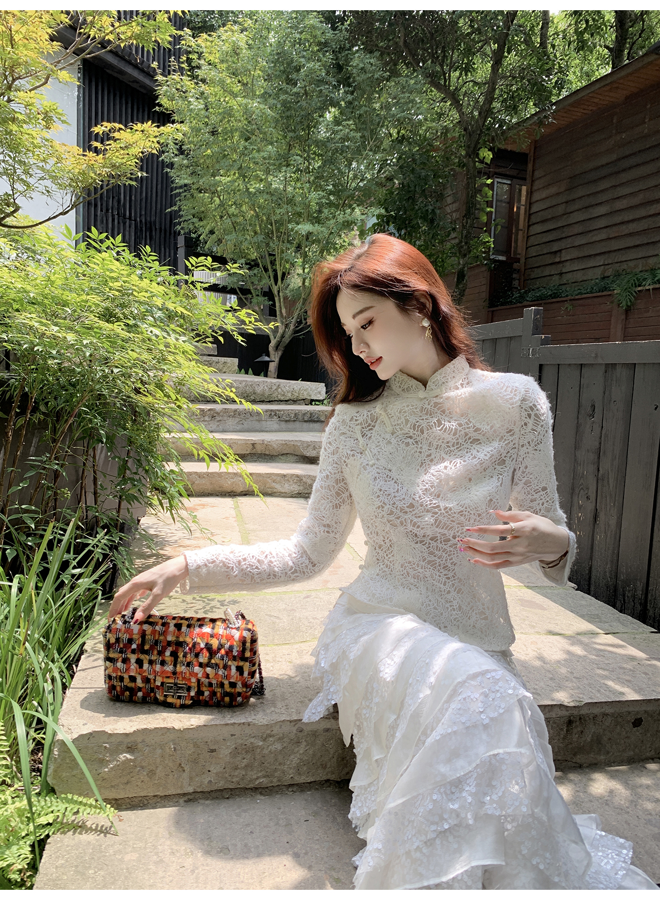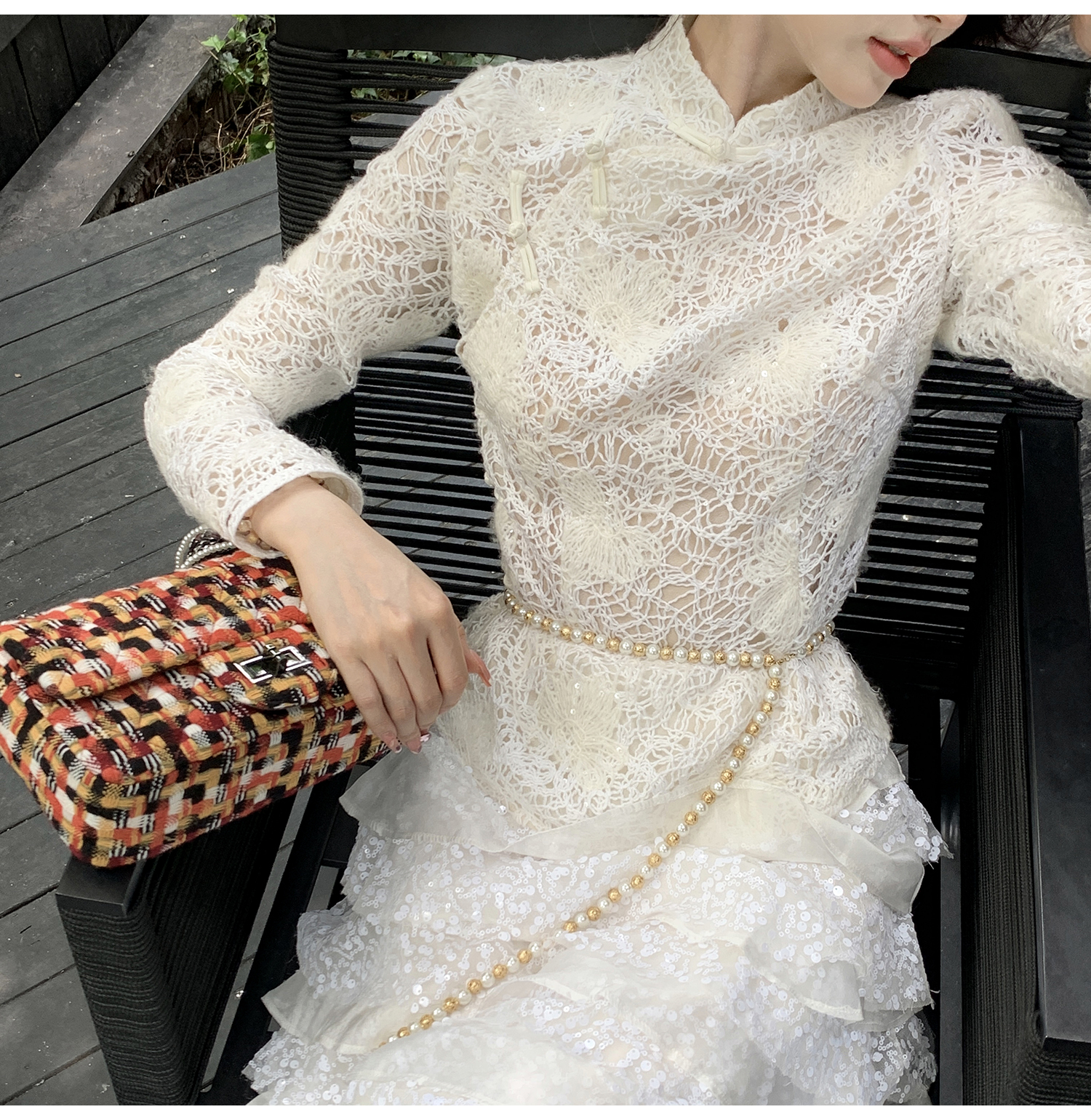 ASAYA2339 Chinese style stand collar plate button retro national style hollow top