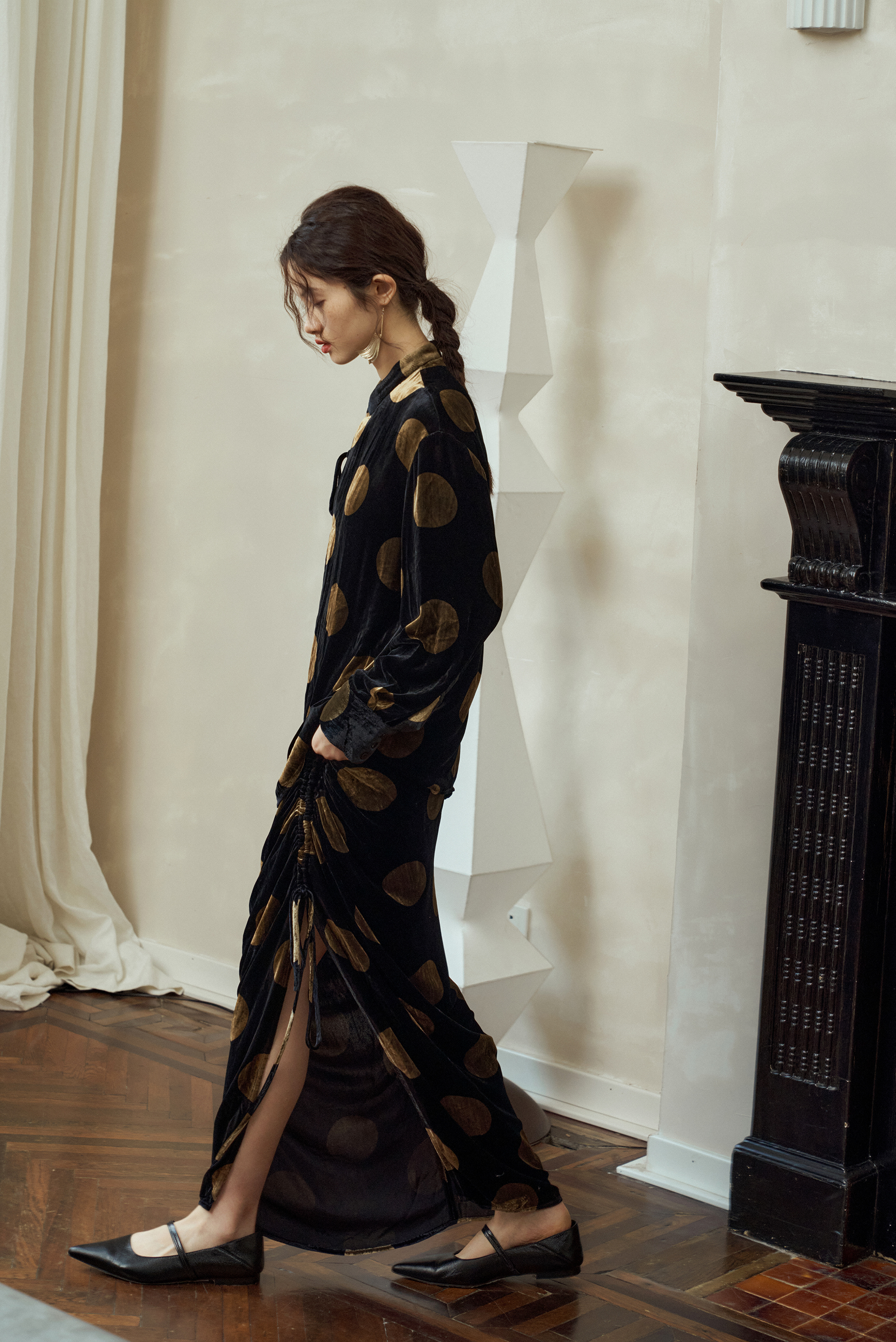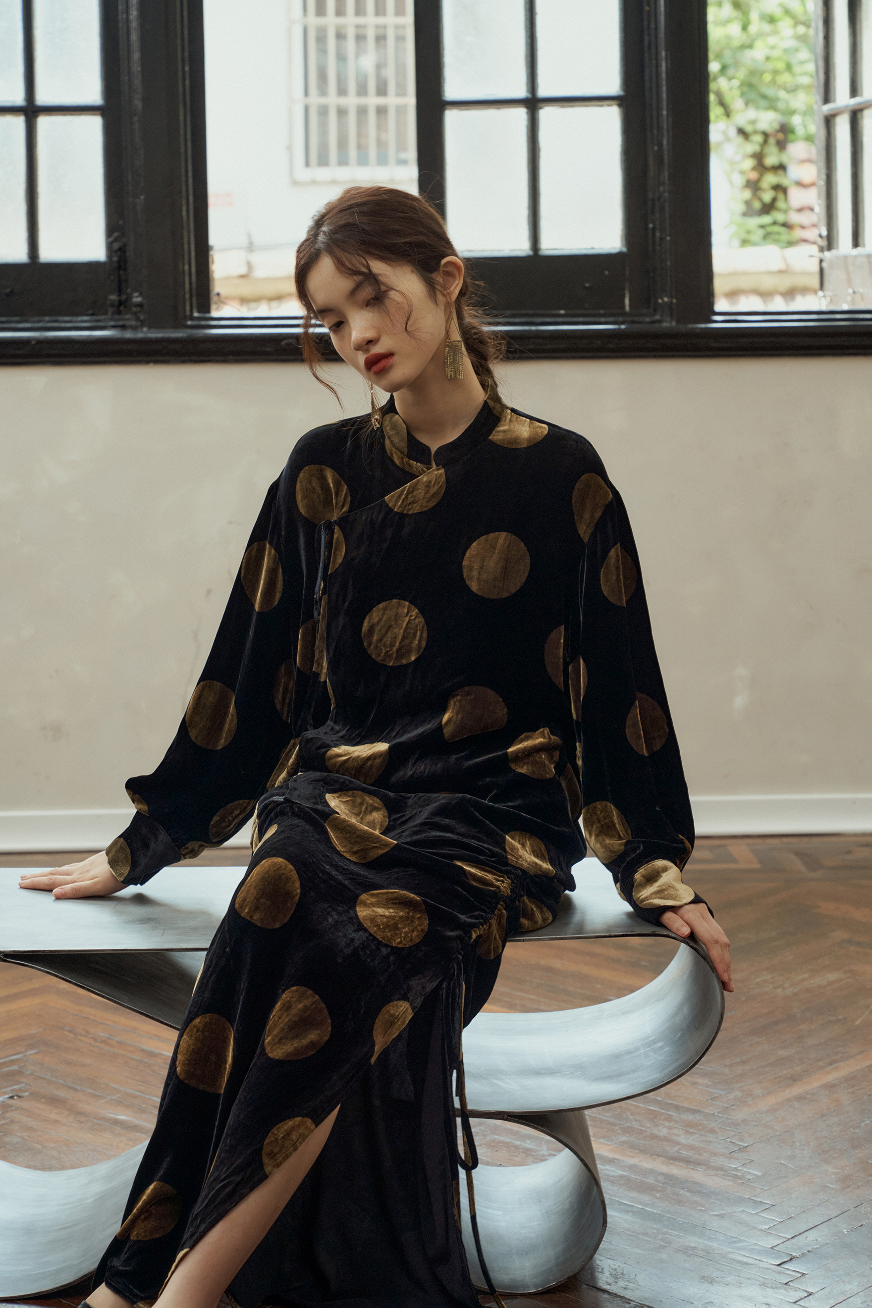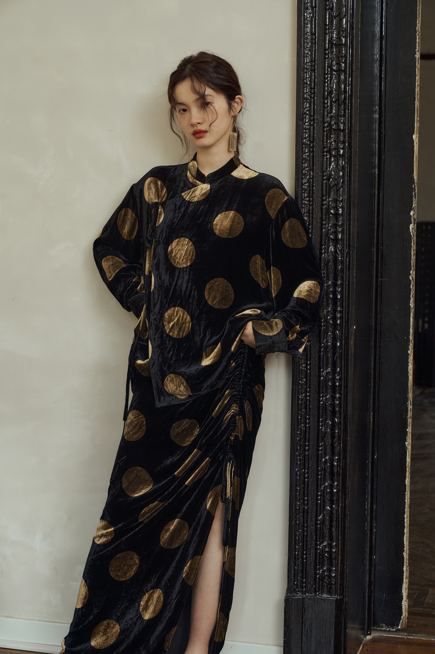 ASAYA2774 Yuanmanman’s original mulberry silk polka-dot velvet shirt