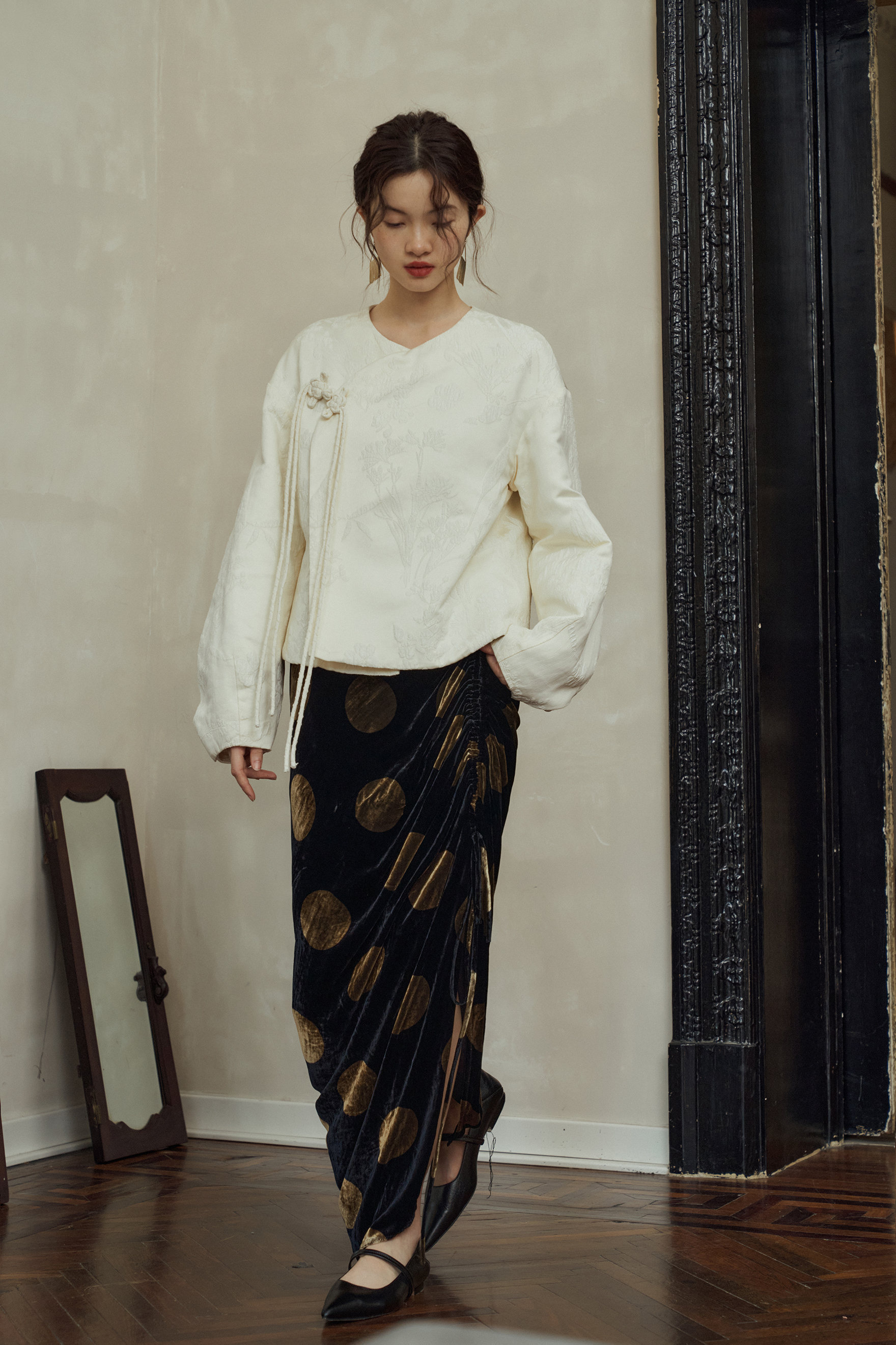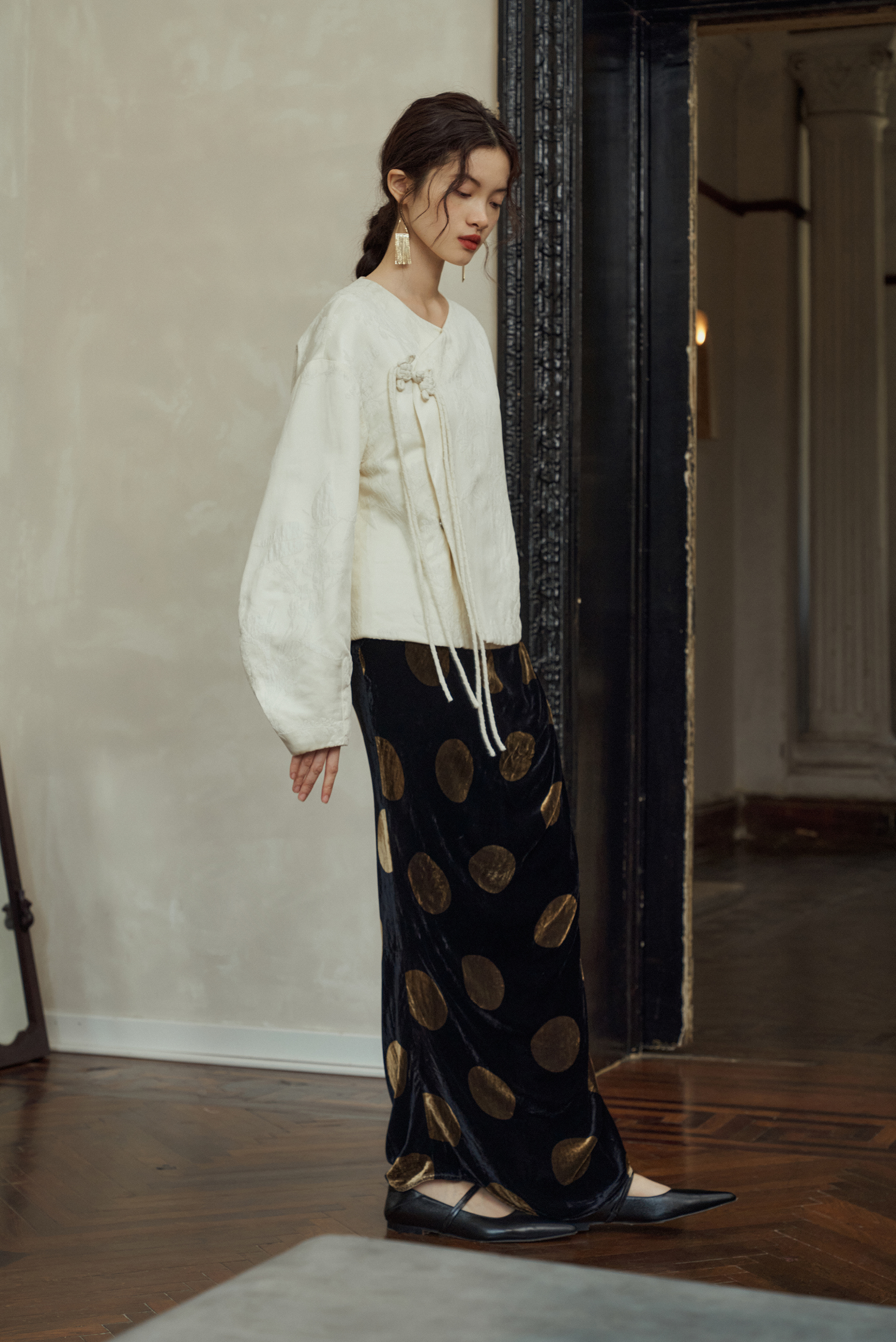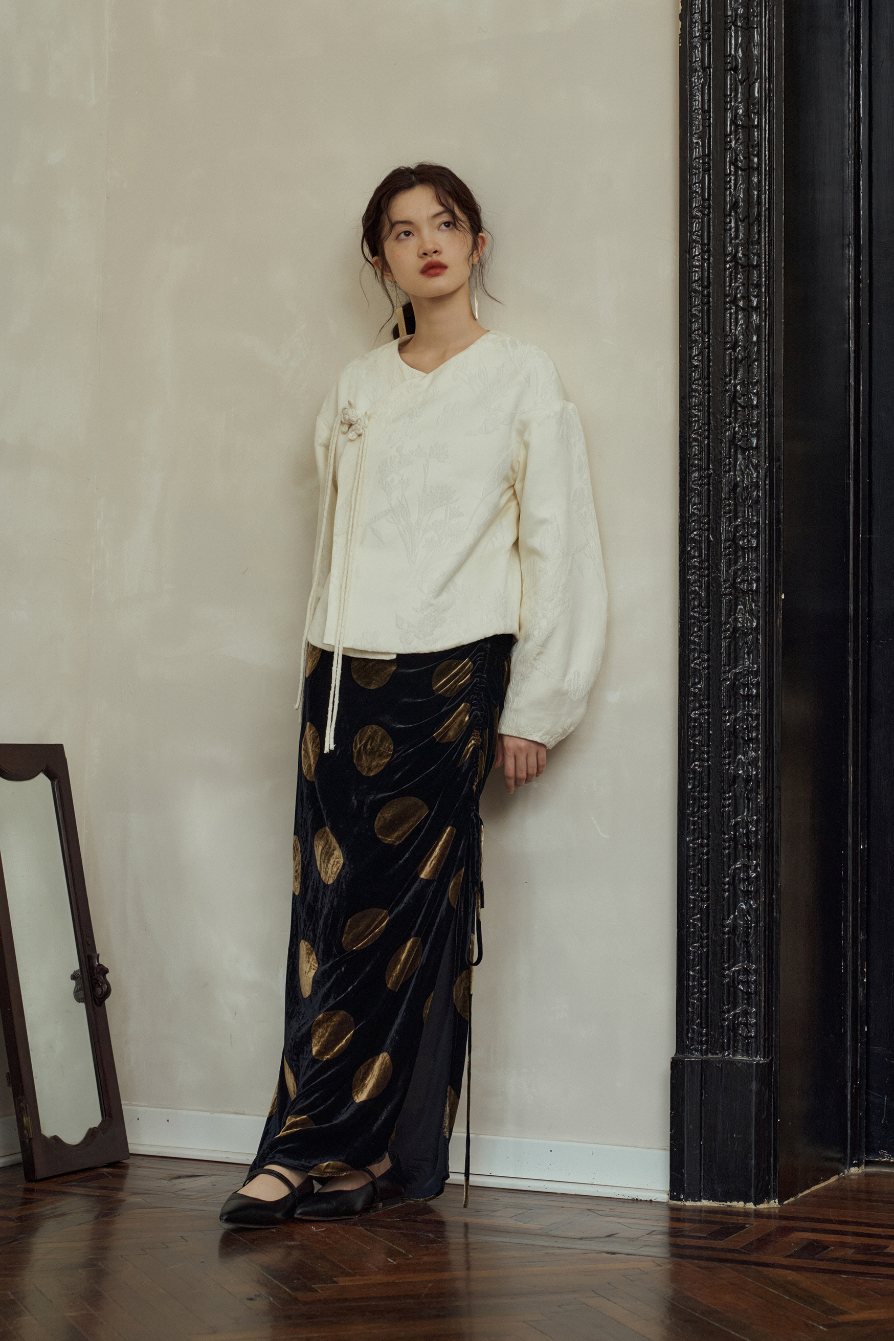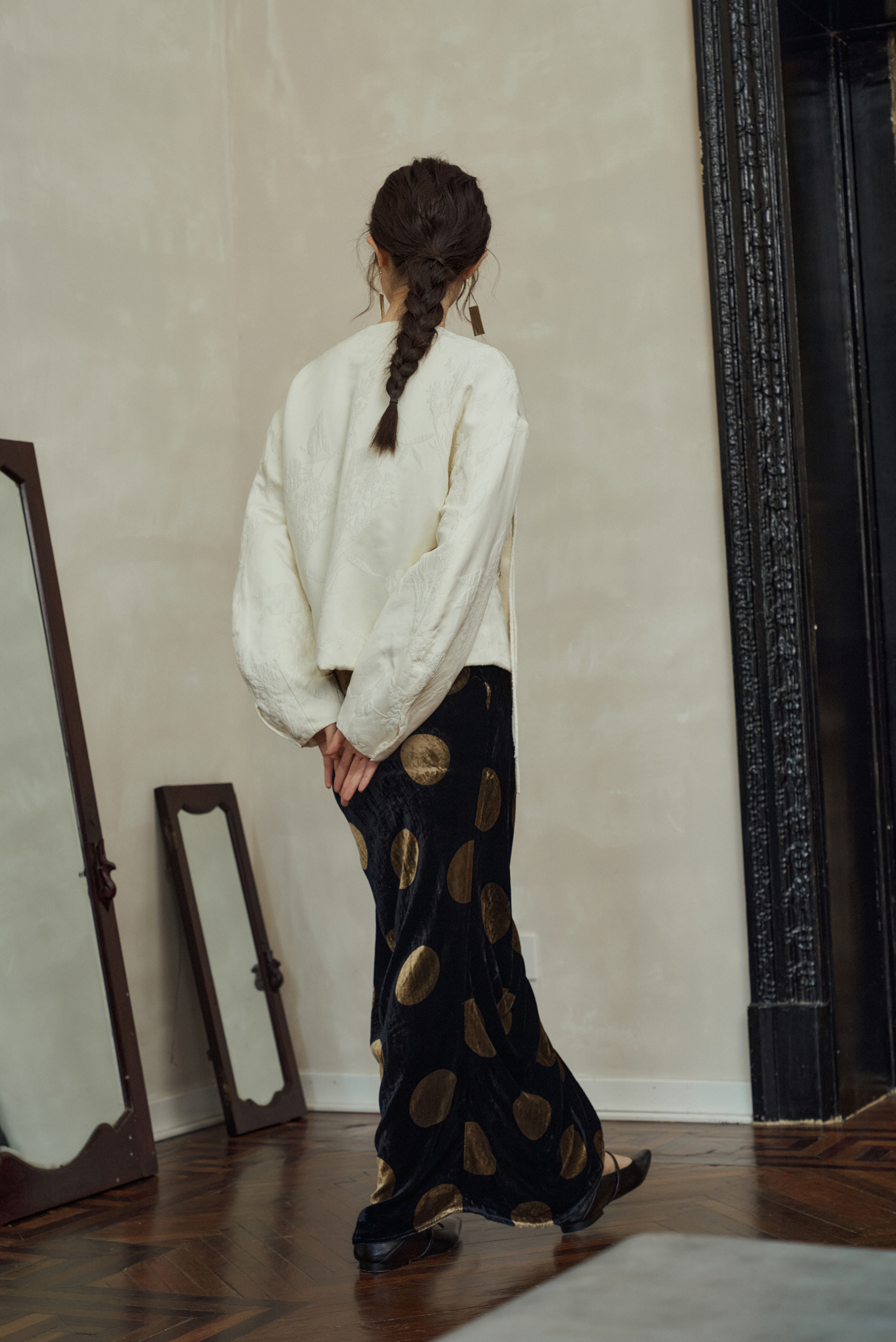 ASAYA2774 Yuanmanman’s original mulberry silk polka-dot velvet shirt