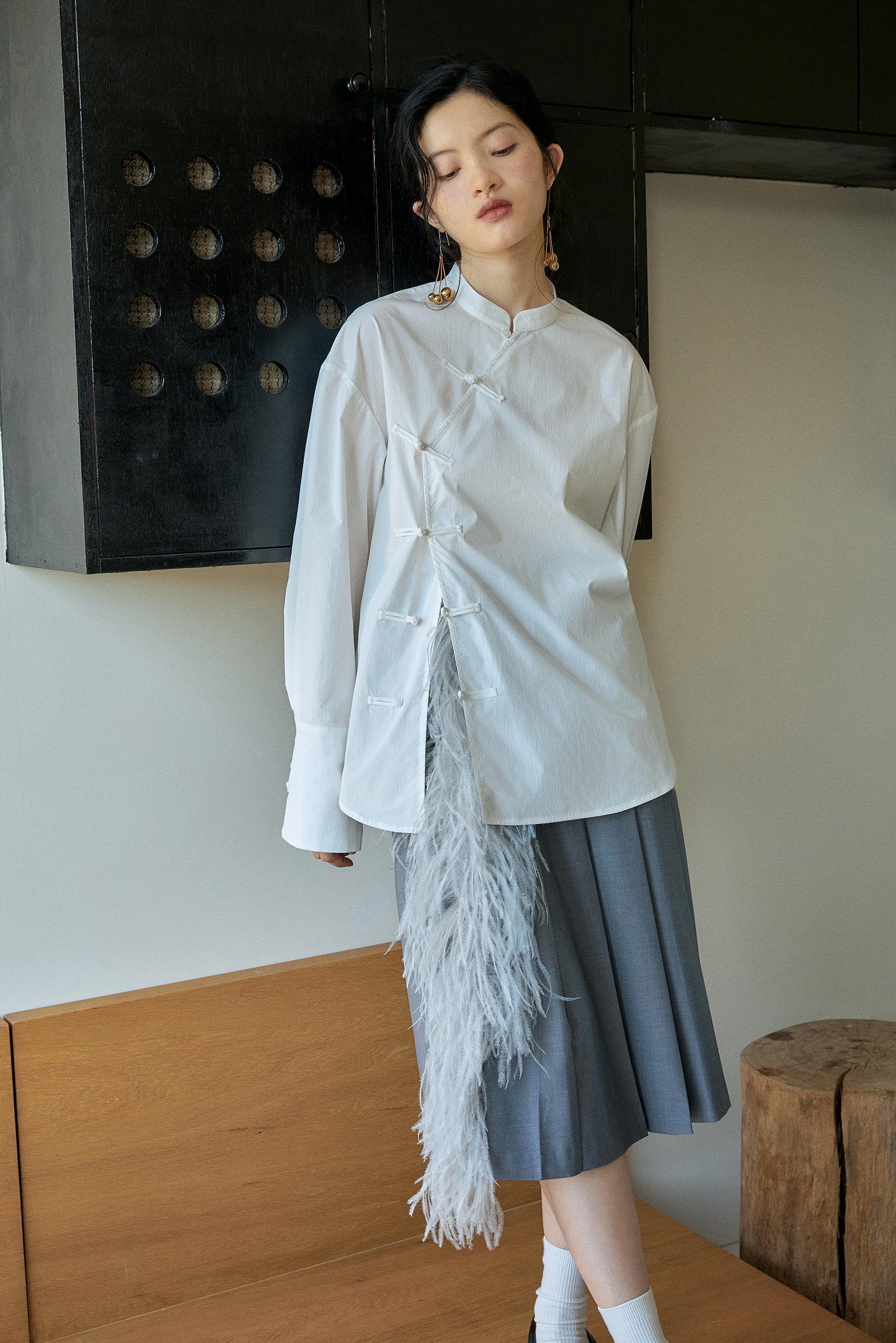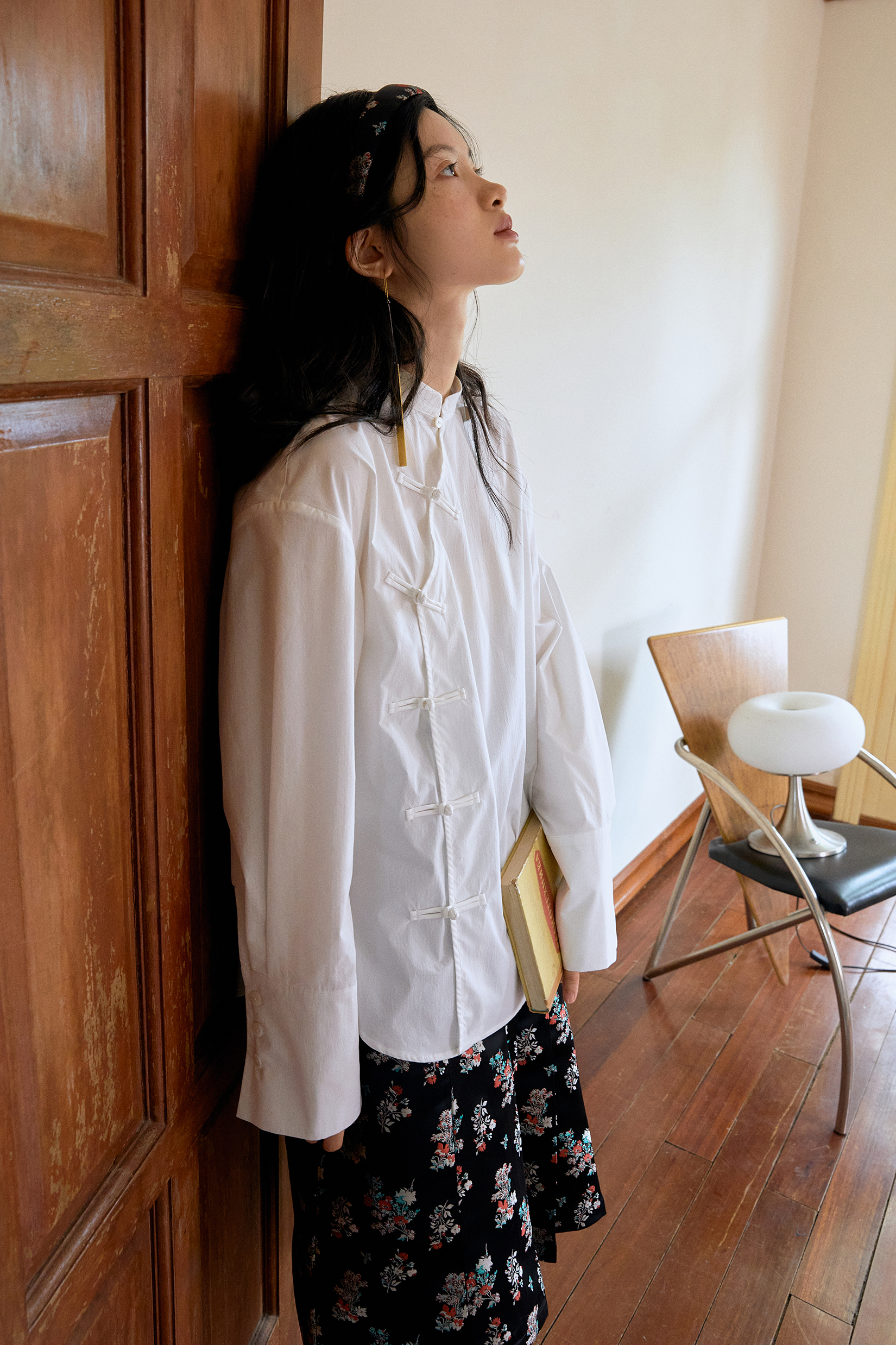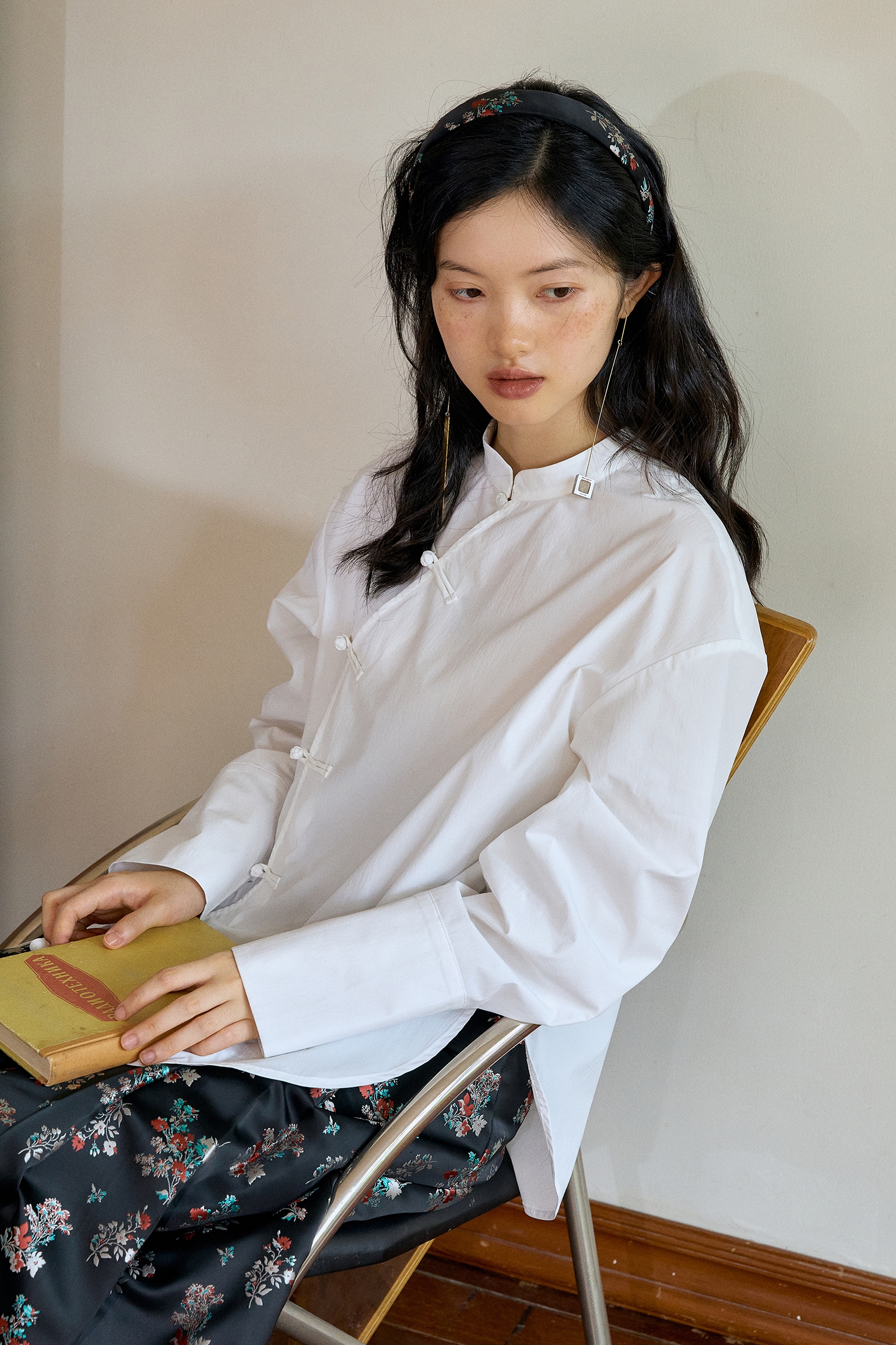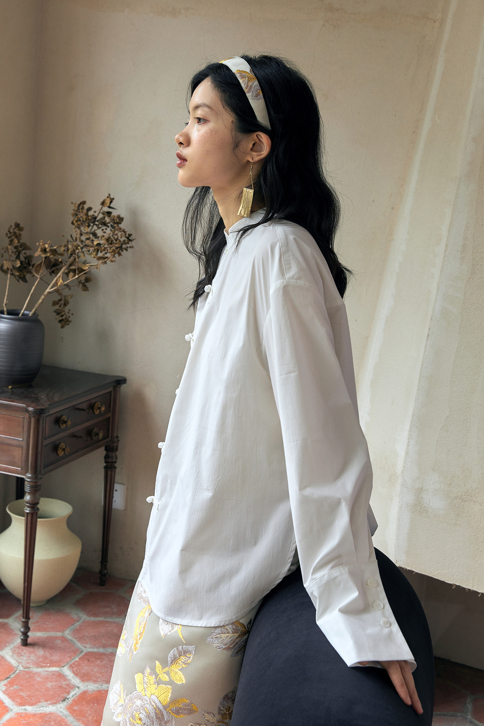 ASAYA1775 Original innovative Chinese style white shirt female spring and autumn simple all-match buckle loose stand-up collar shirt