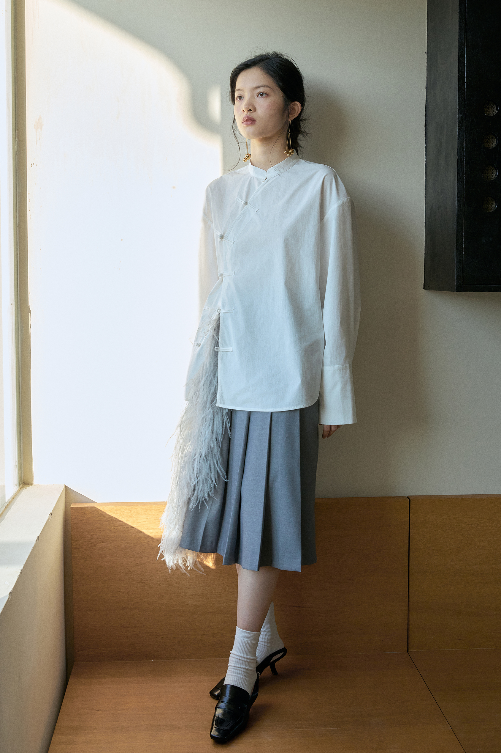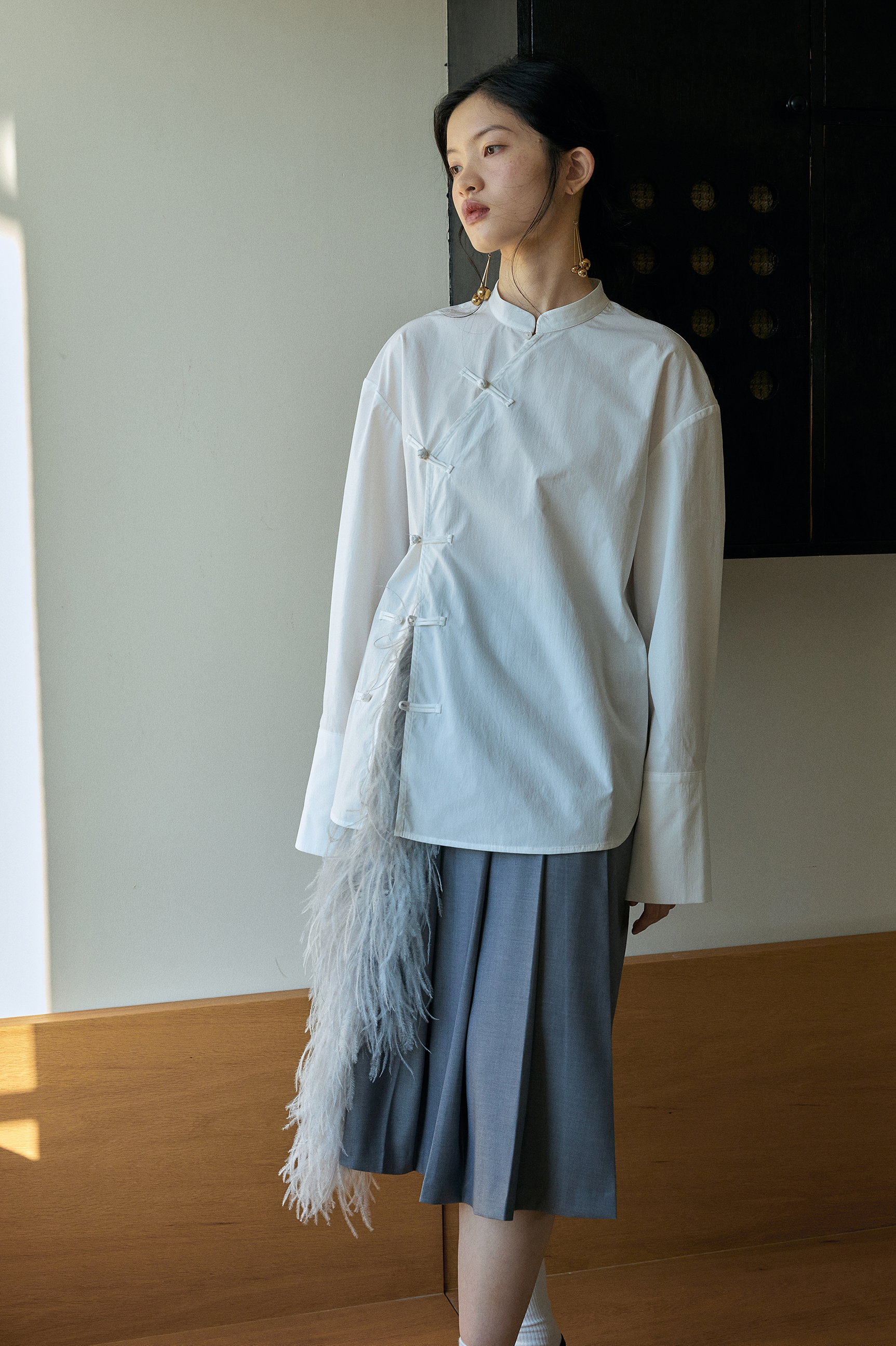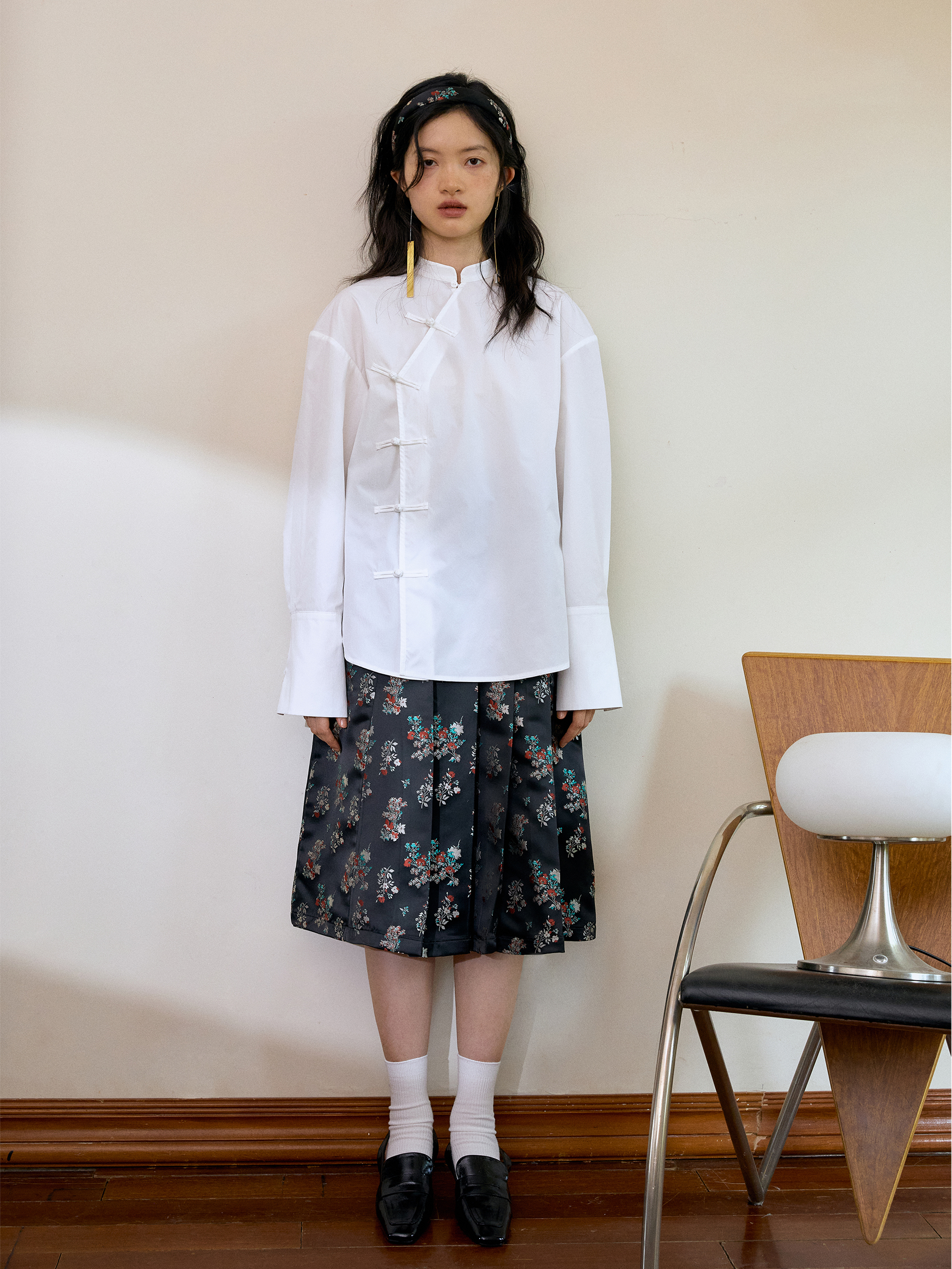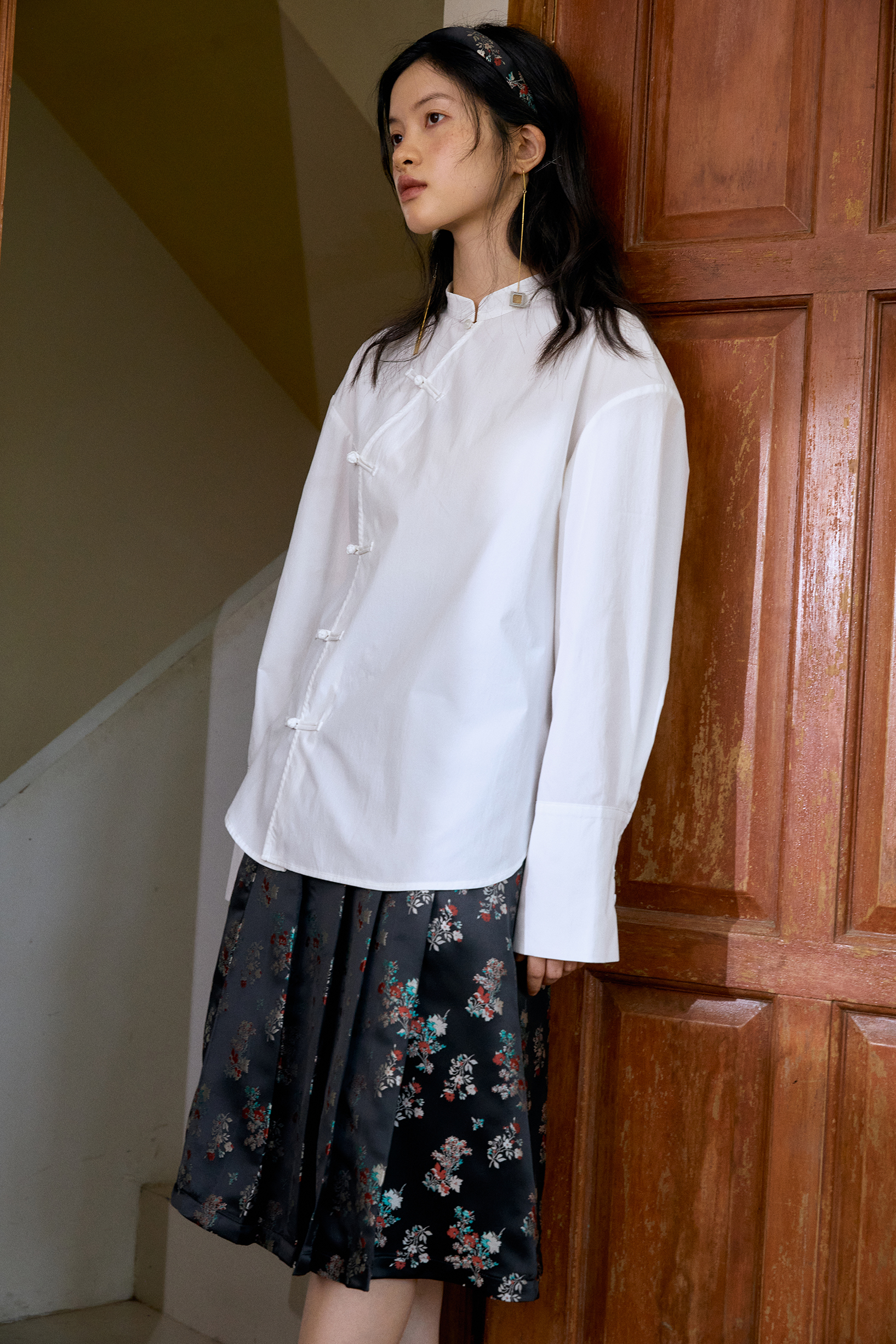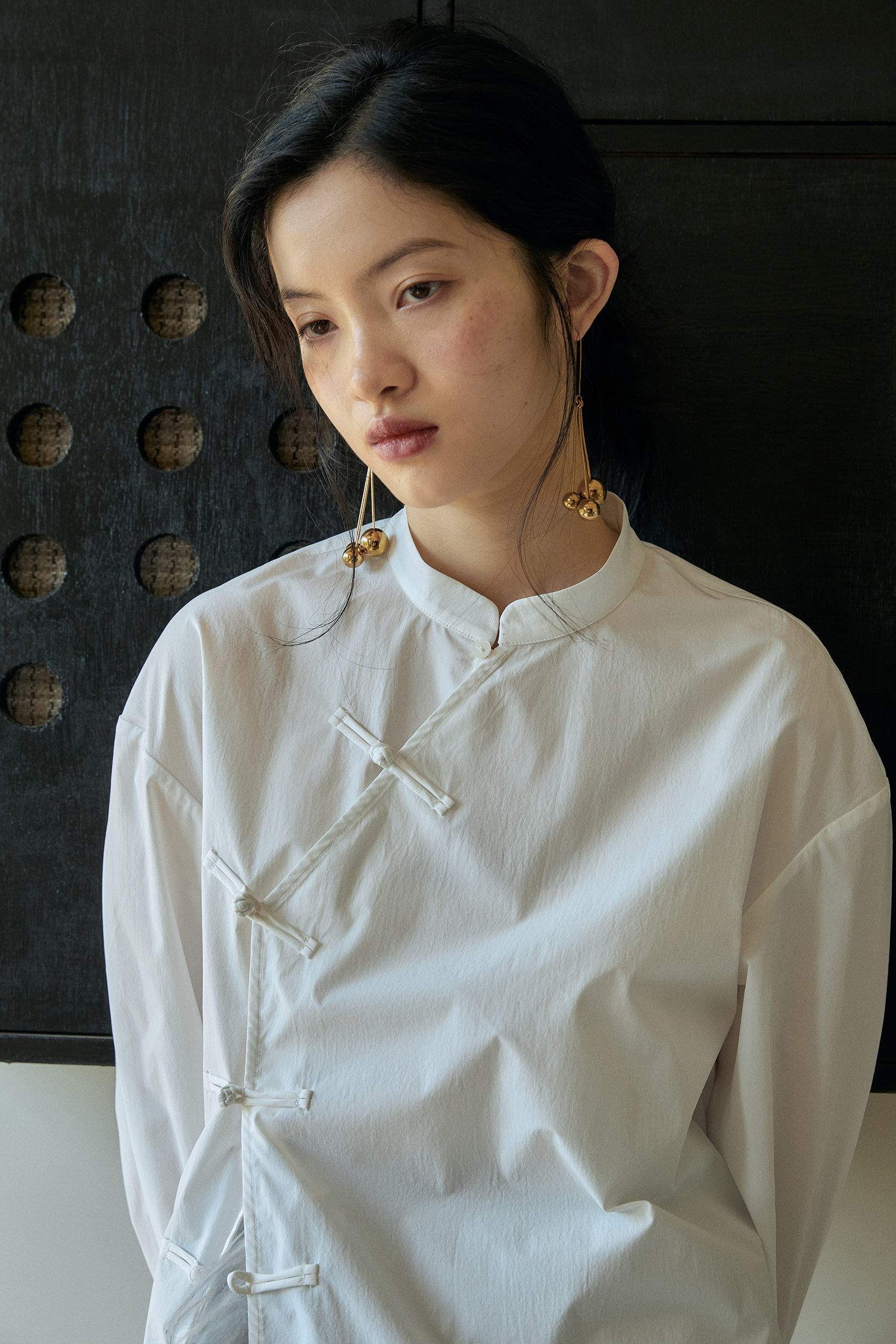 ASAYA1775 Original innovative Chinese style white shirt female spring and autumn simple all-match buckle loose stand-up collar shirt