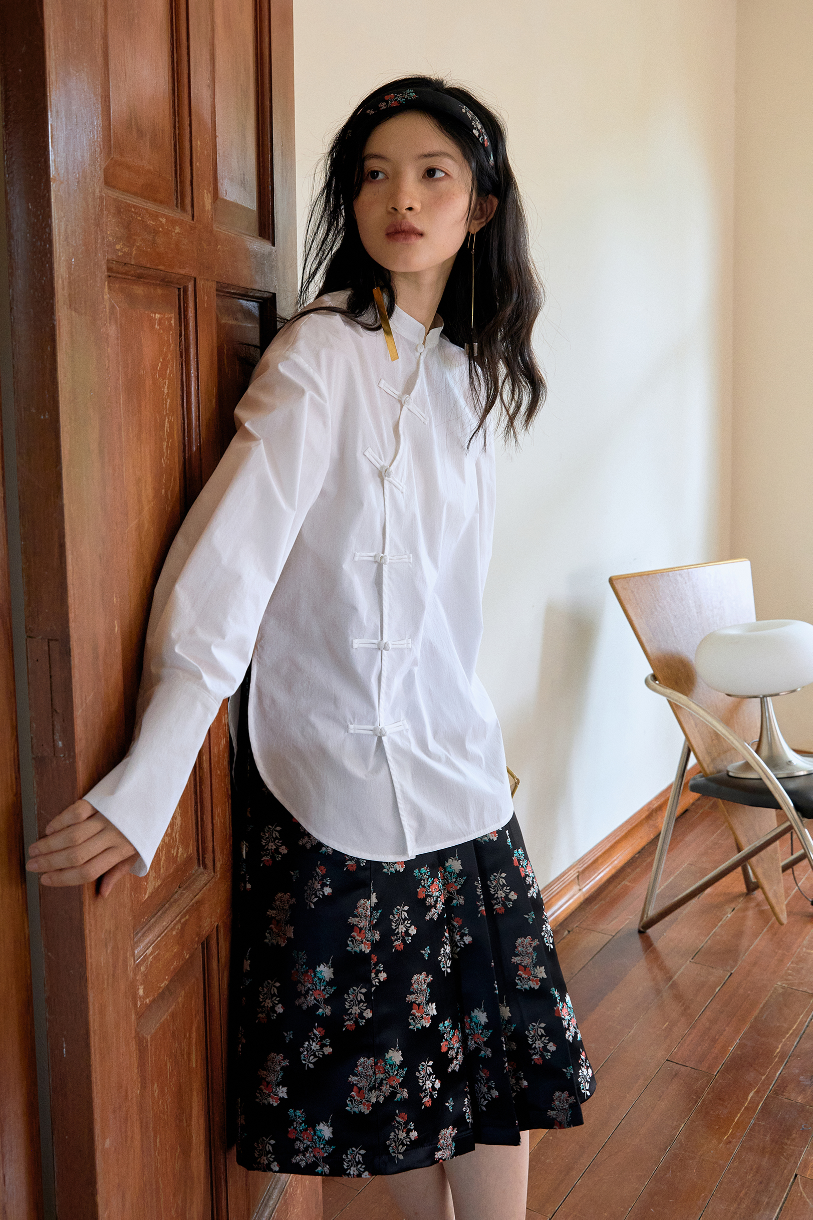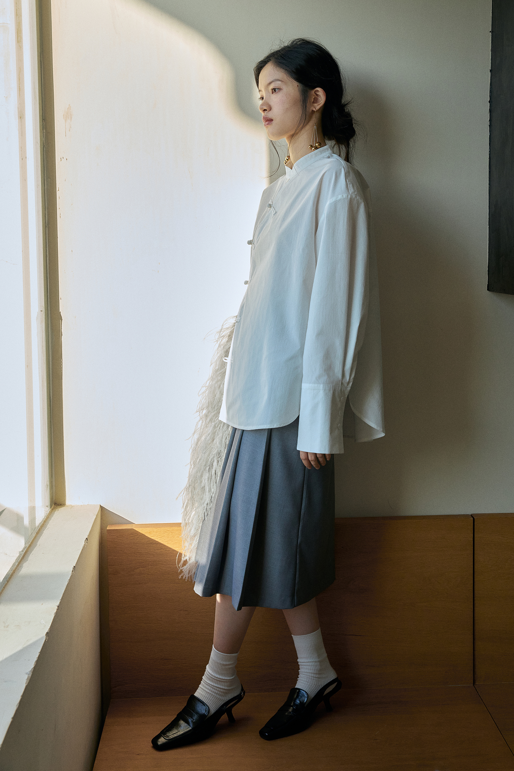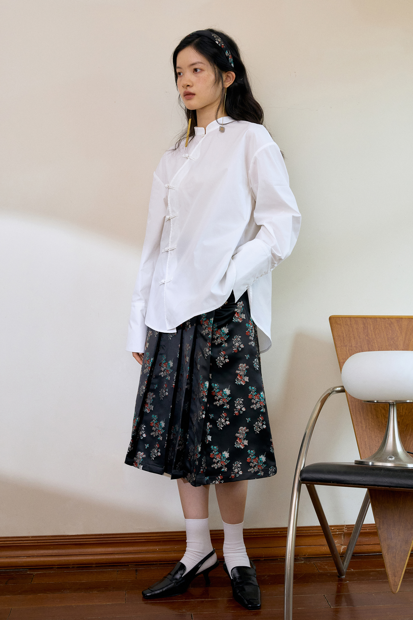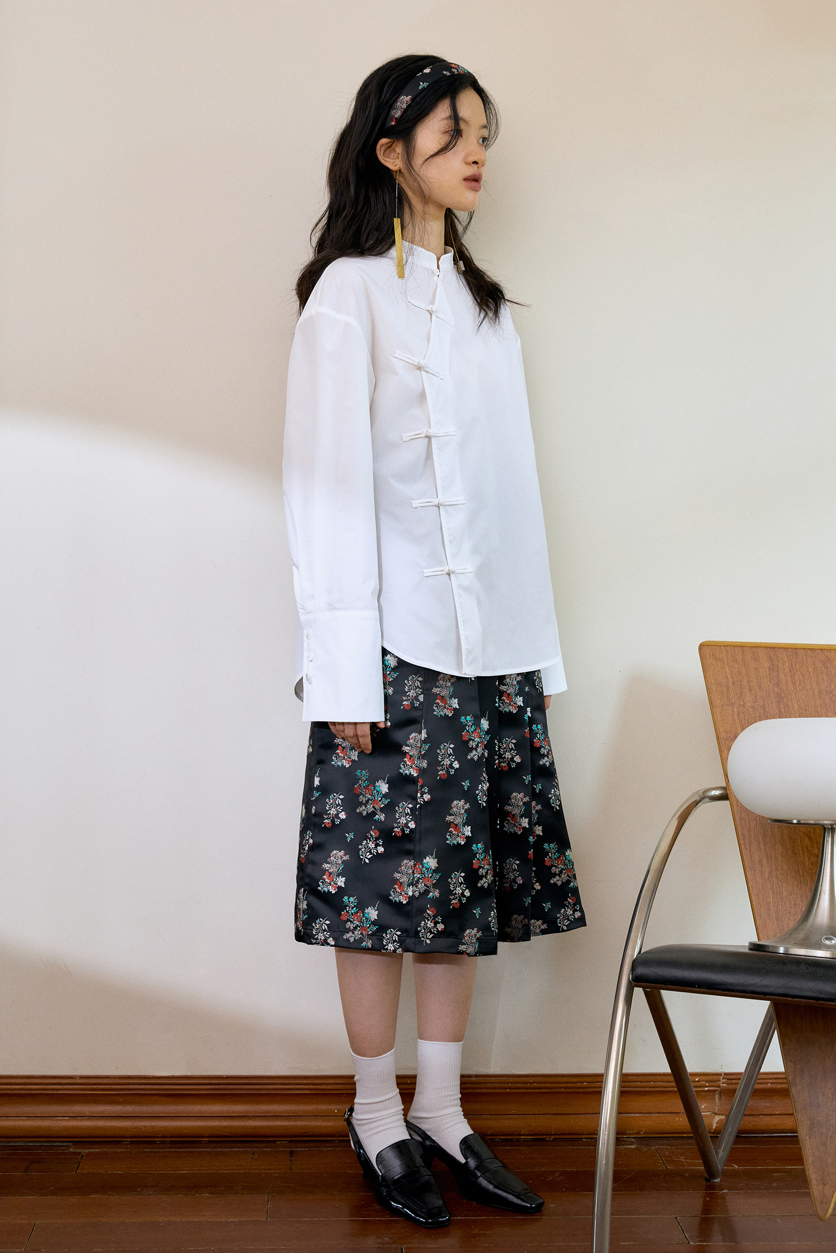ASAYA1775 Original innovative Chinese style white shirt female spring and autumn simple all-match buckle loose stand-up collar shirt
