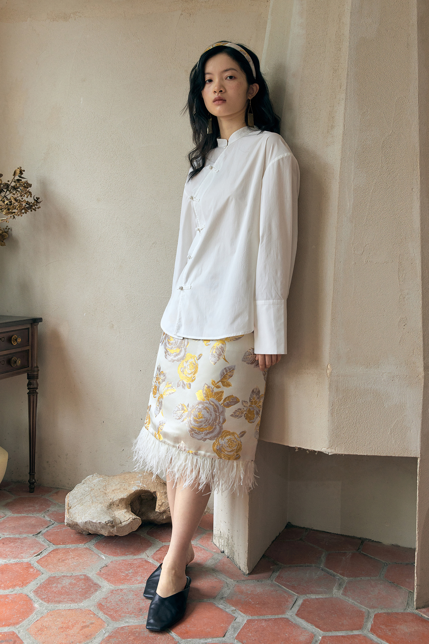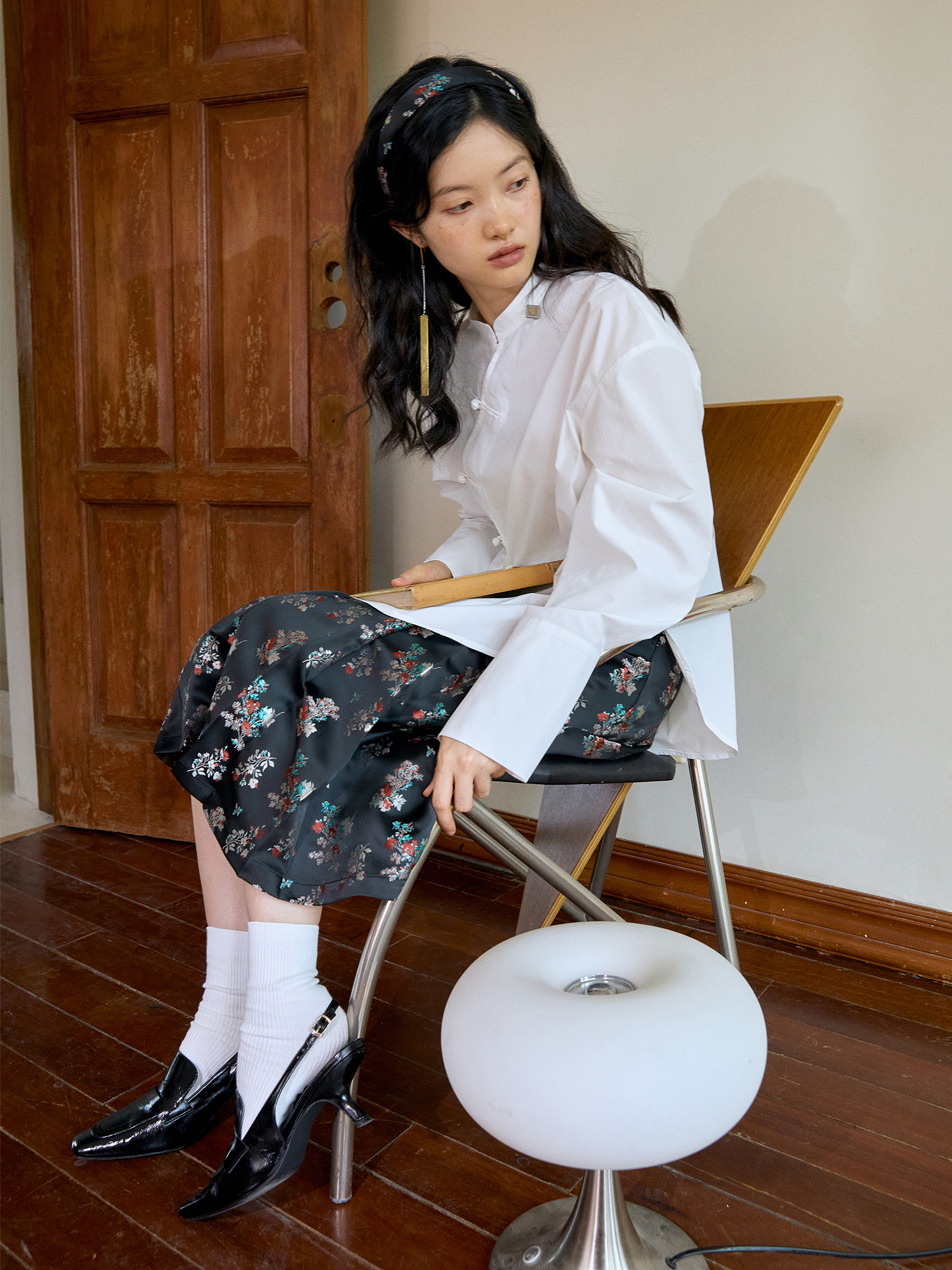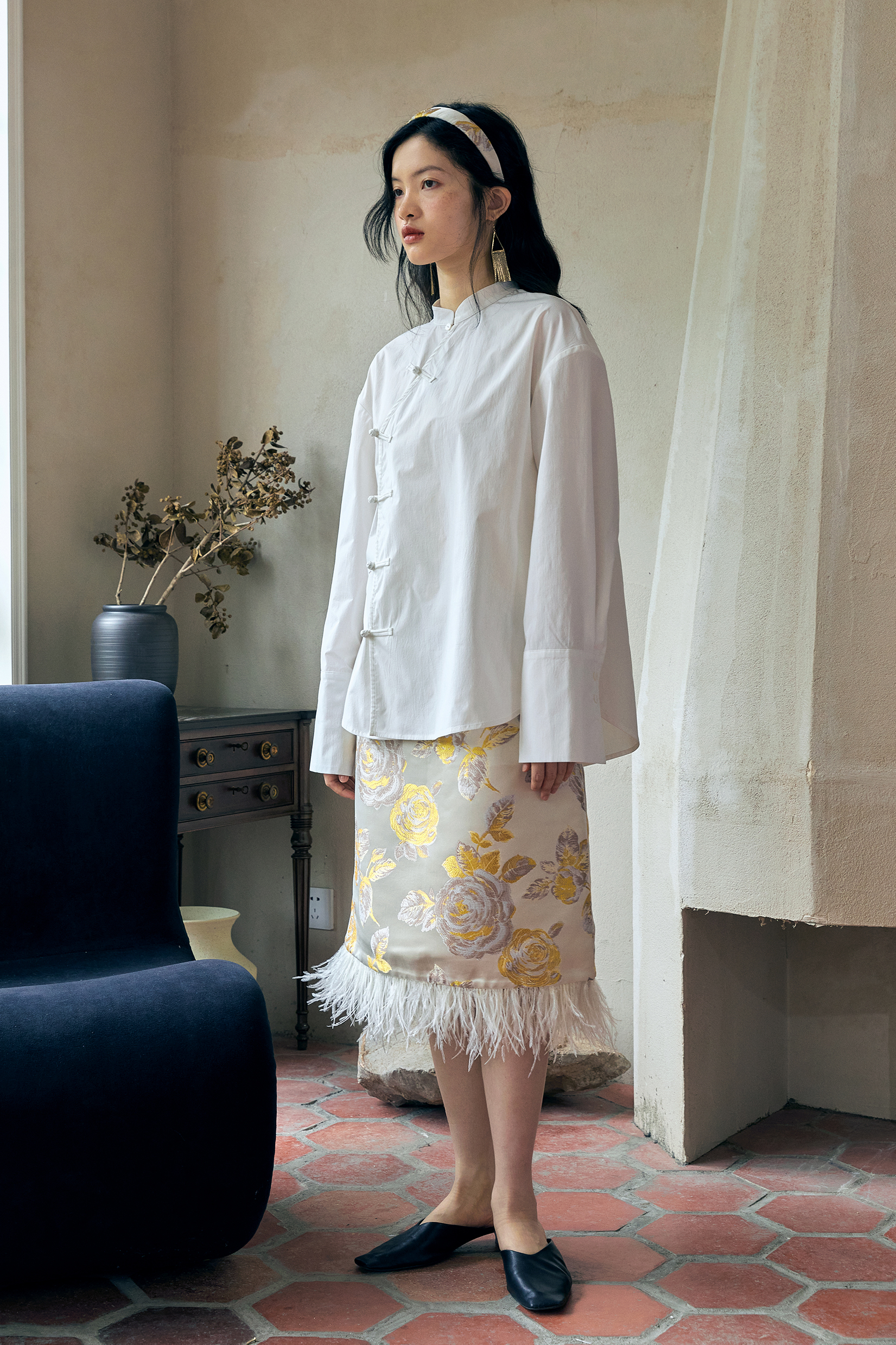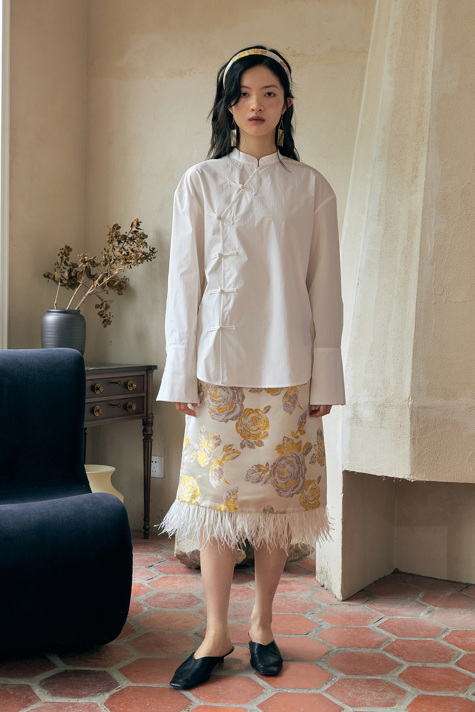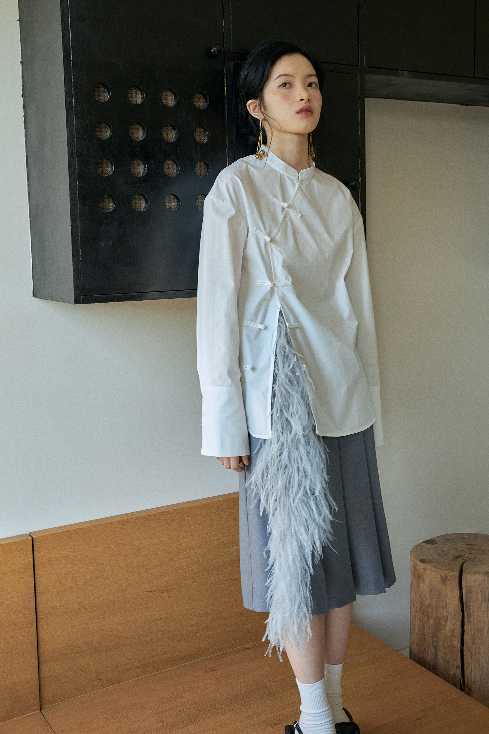 ASAYA1775 Original innovative Chinese style white shirt female spring and autumn simple all-match buckle loose stand-up collar shirt