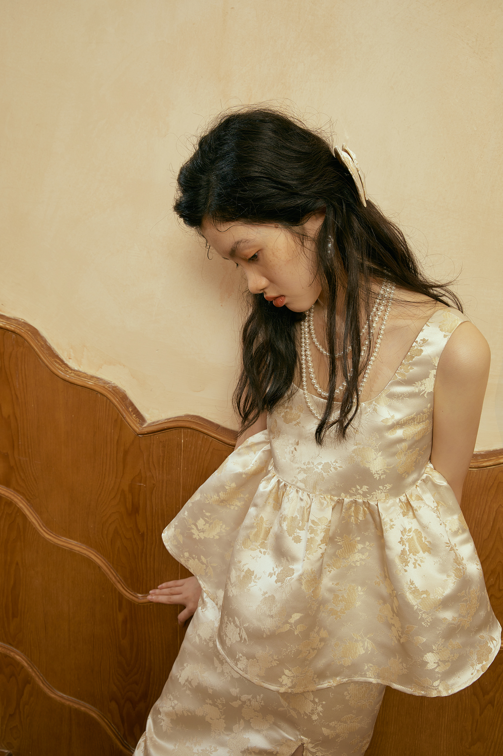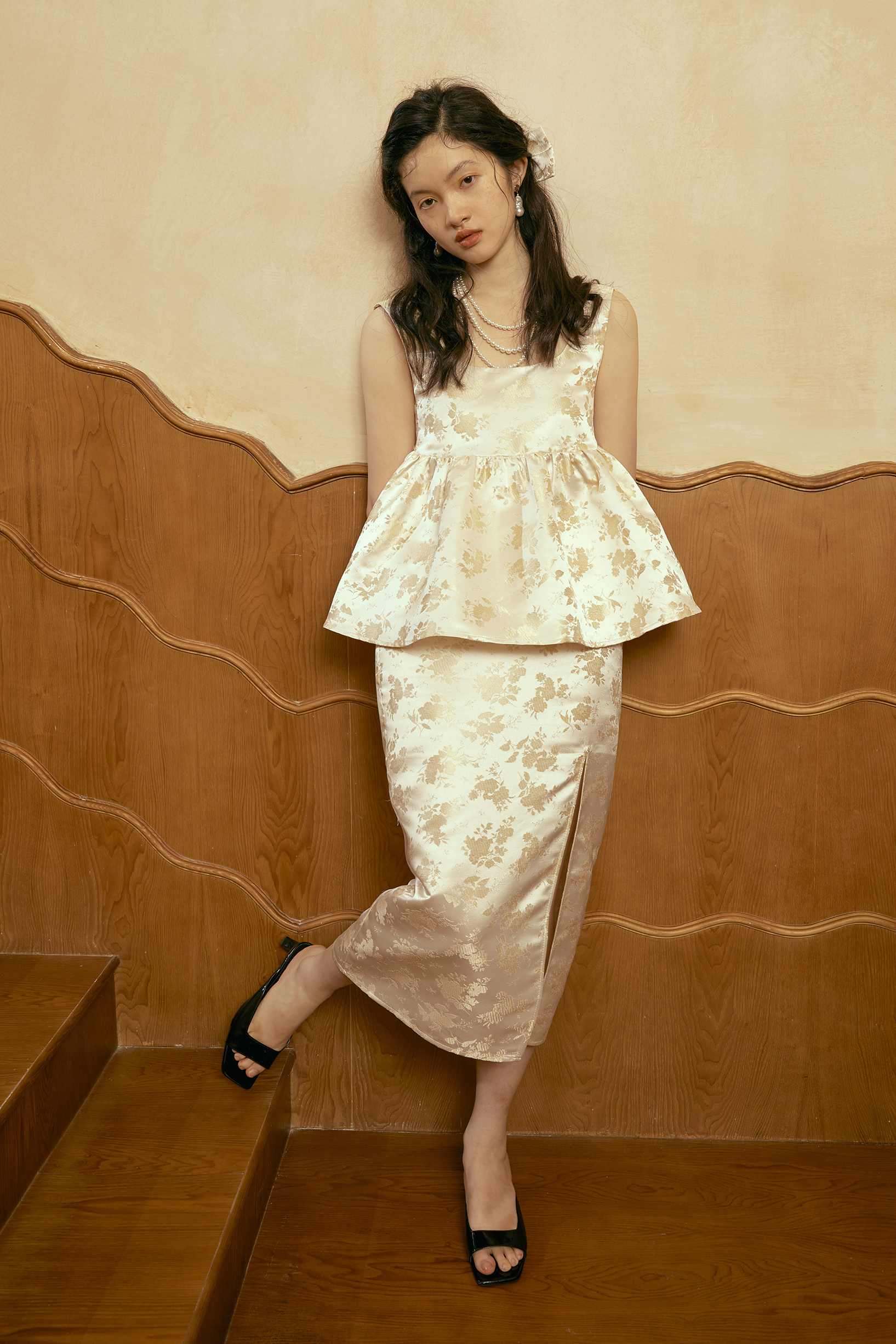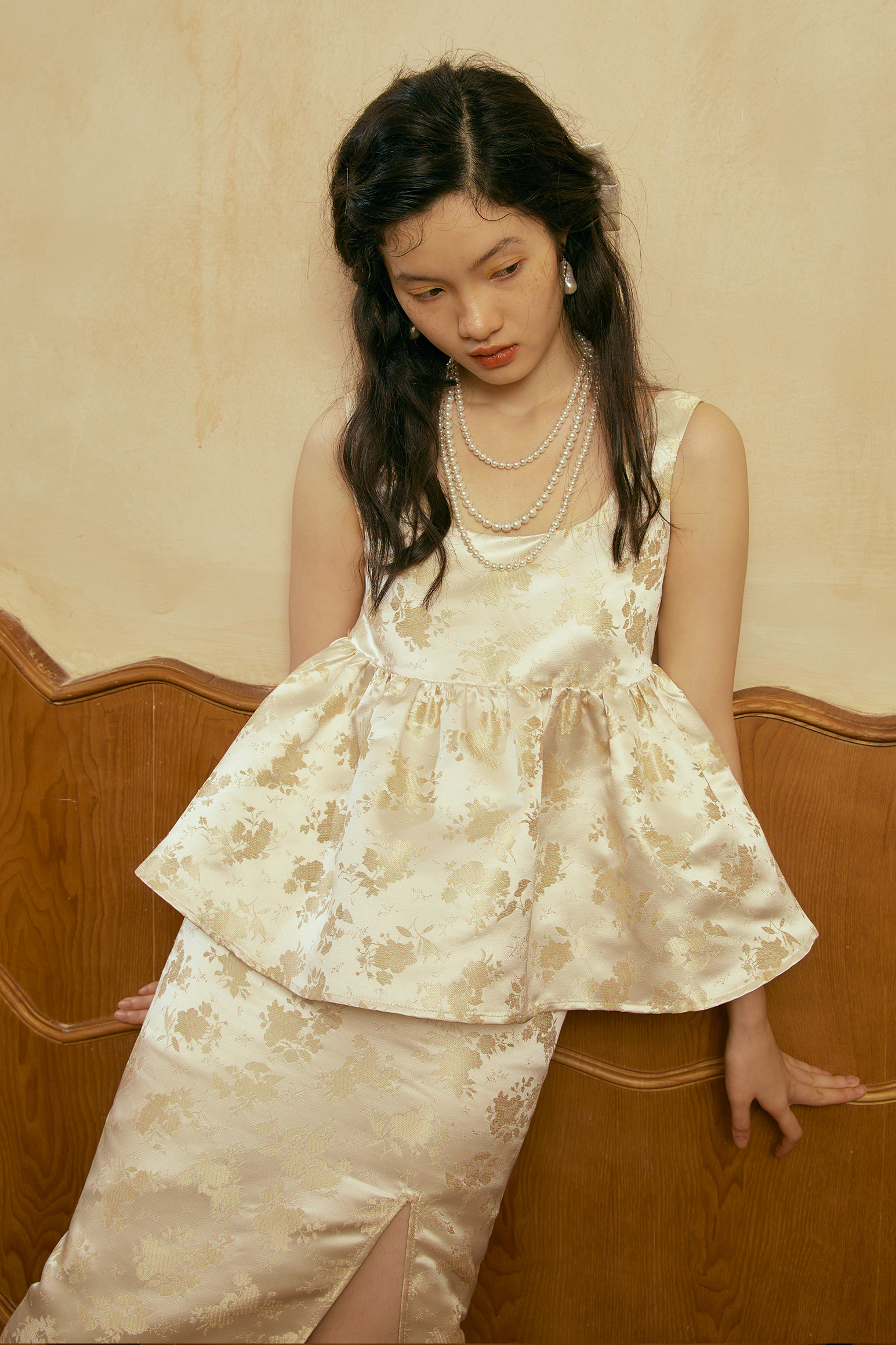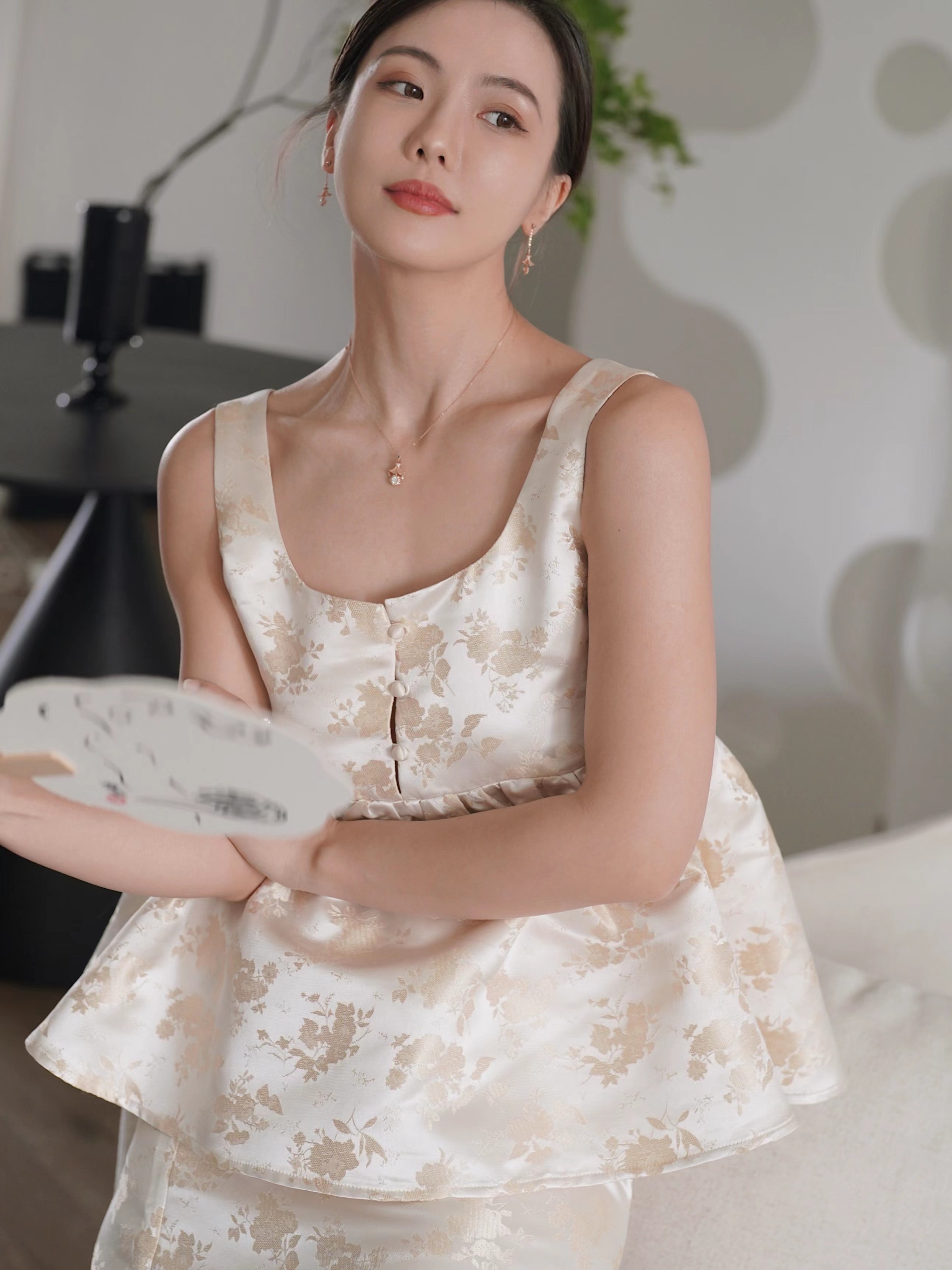 Asaya1041 - Yuanye Garden | original innovative Chinese jacquard champagne tank top skirt set