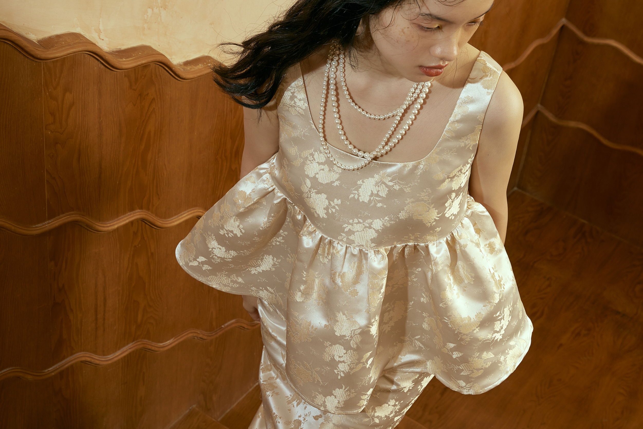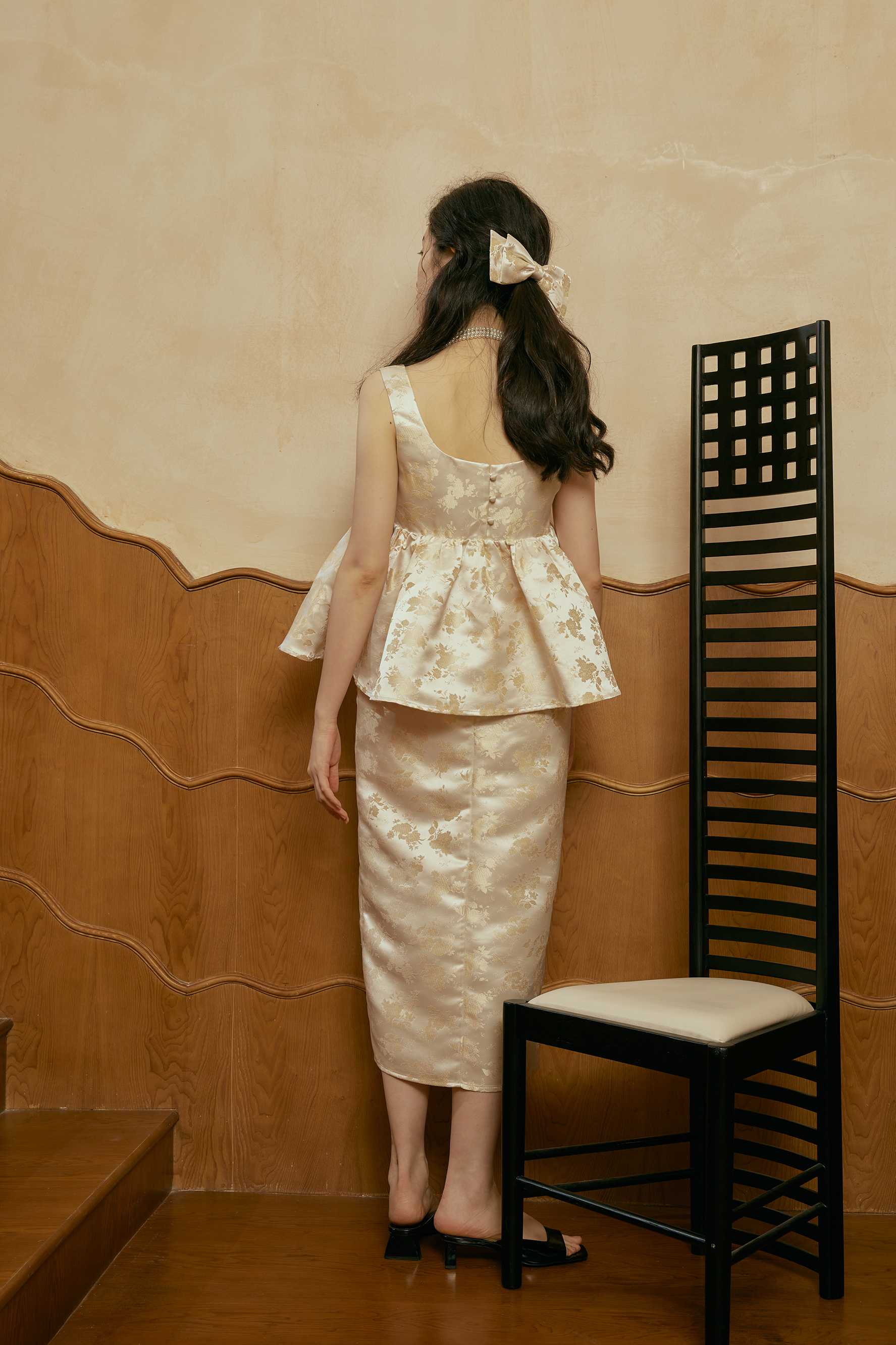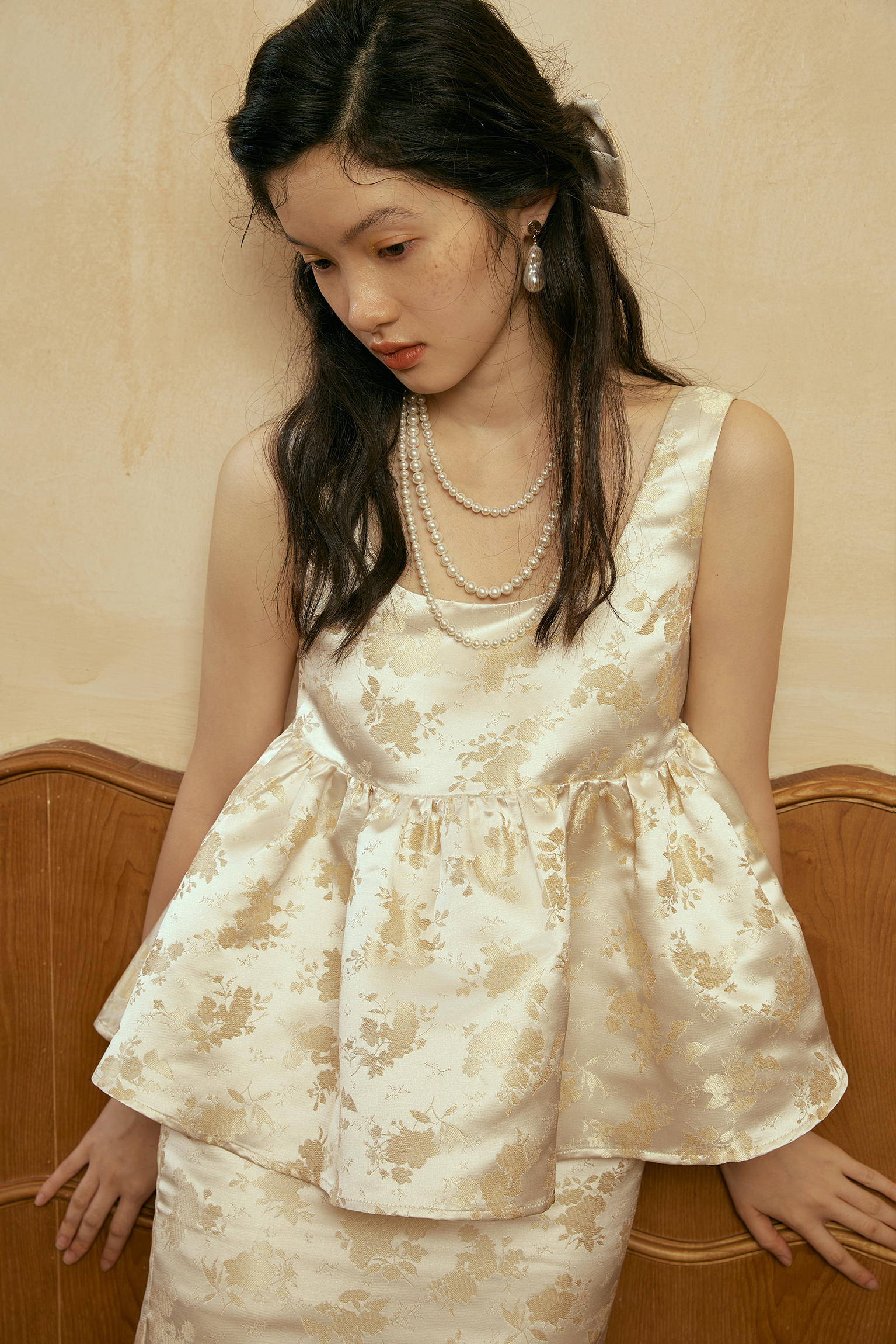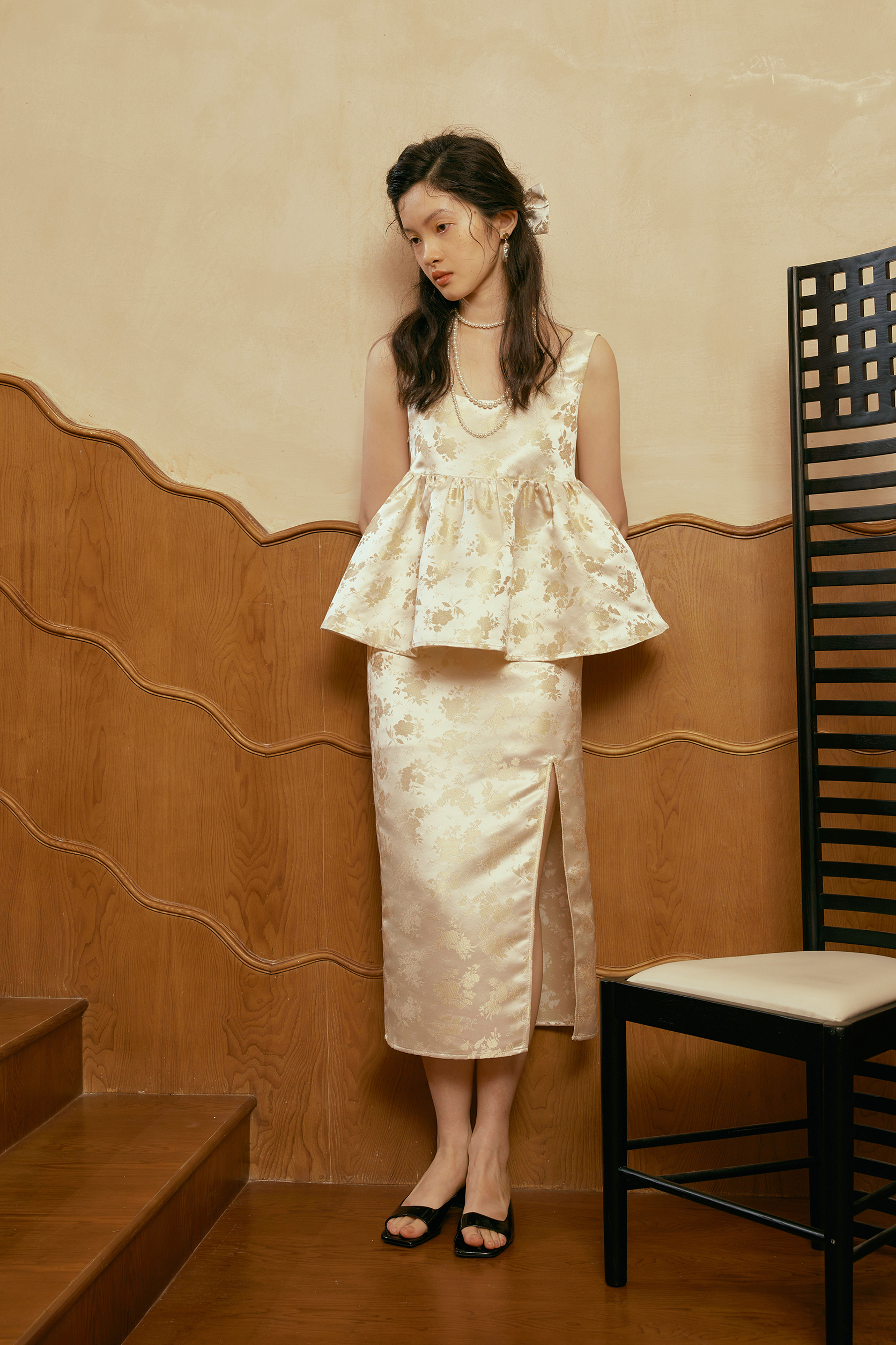 Asaya1041 - Yuanye Garden | original innovative Chinese jacquard champagne tank top skirt set