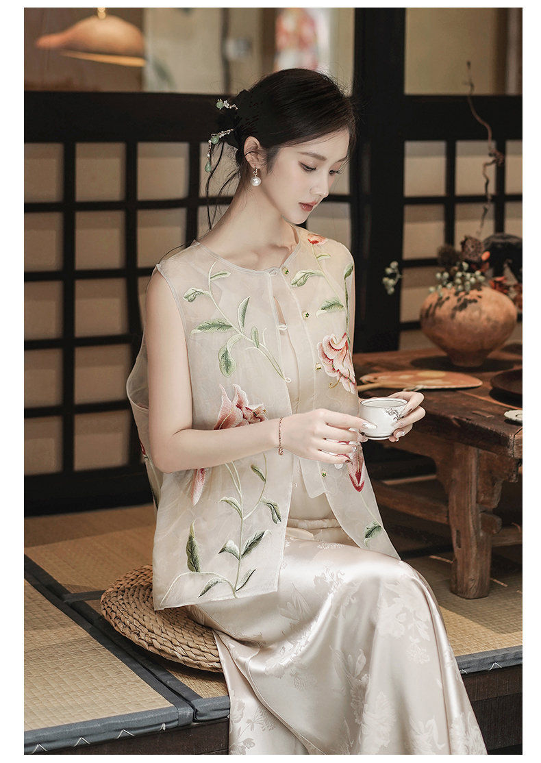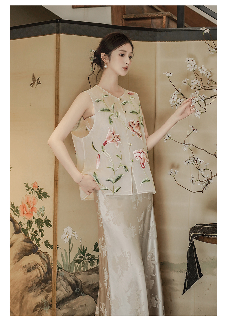 ASAYA4632 – Blooming Grace Silk Embroidered Vest 🌸✨