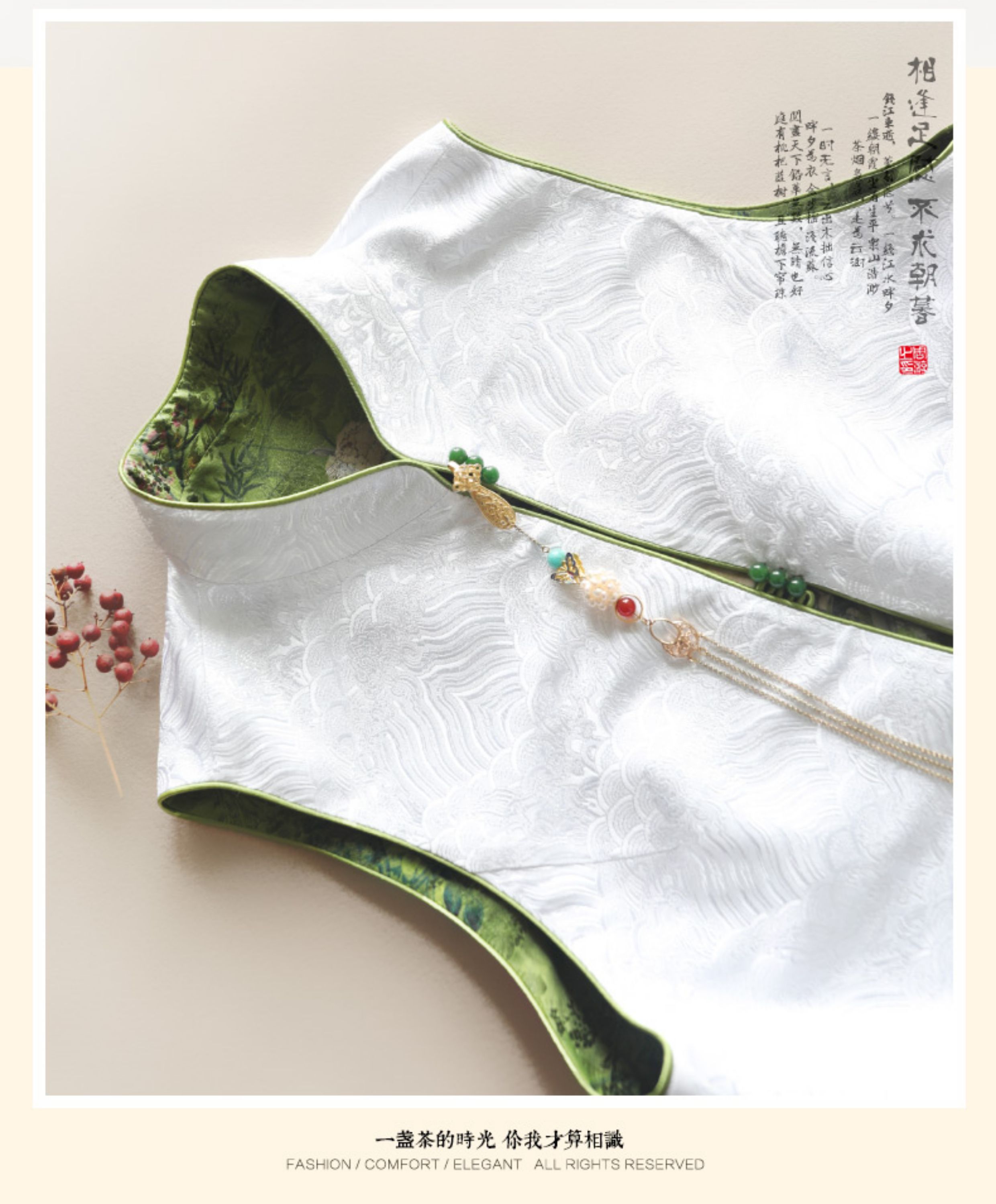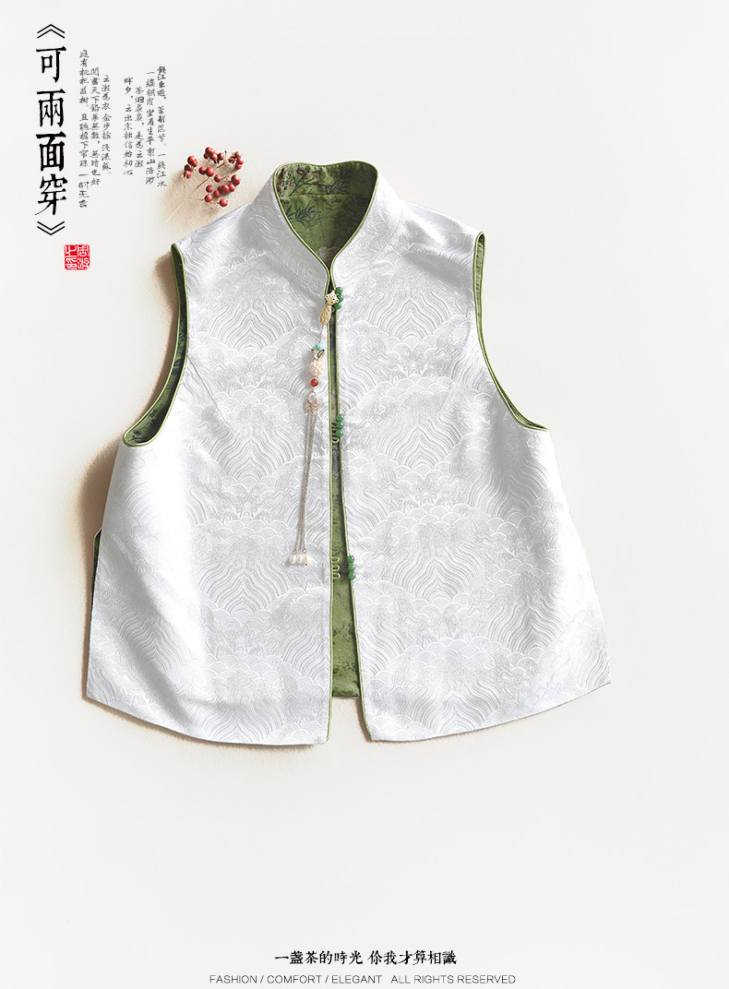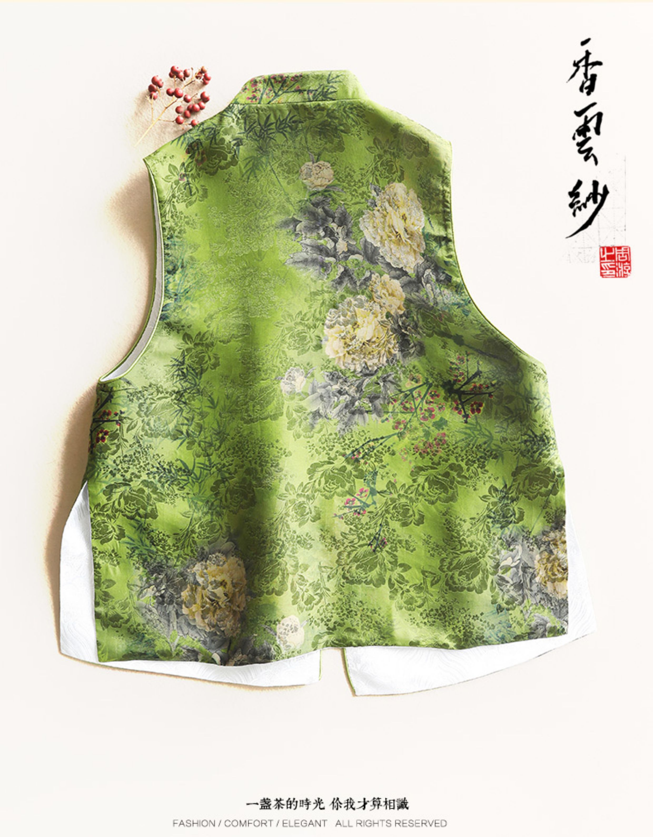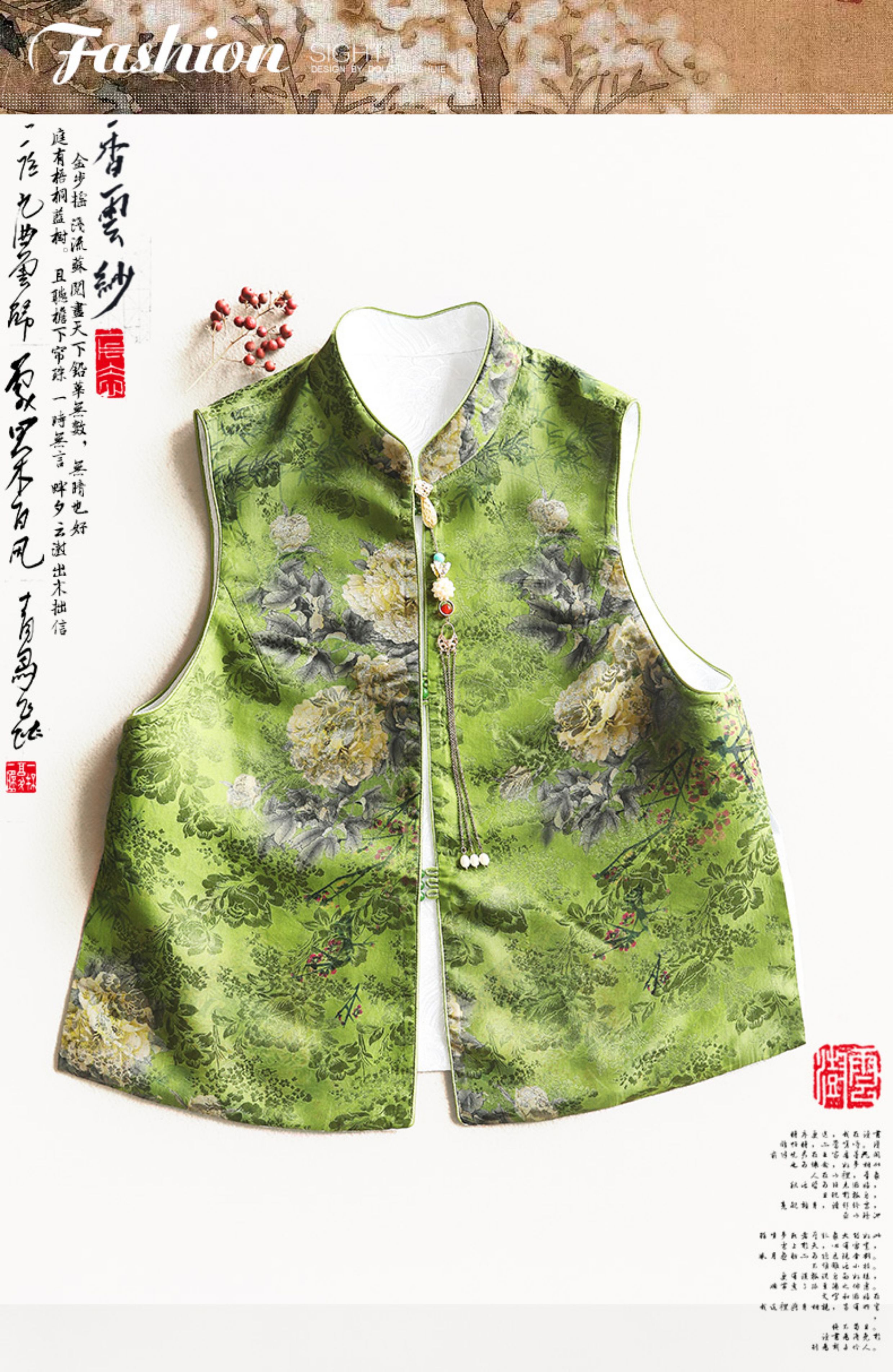 ASAYA2939 Brocade stitching interwoven fragrant cloud yarn reversible Chinese style vest