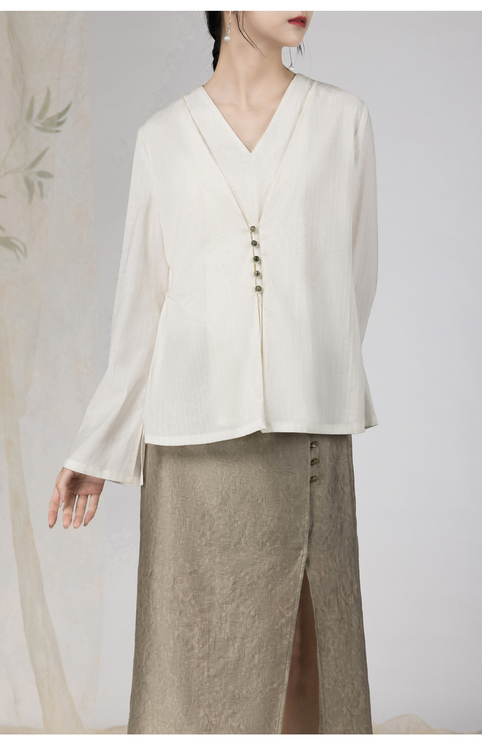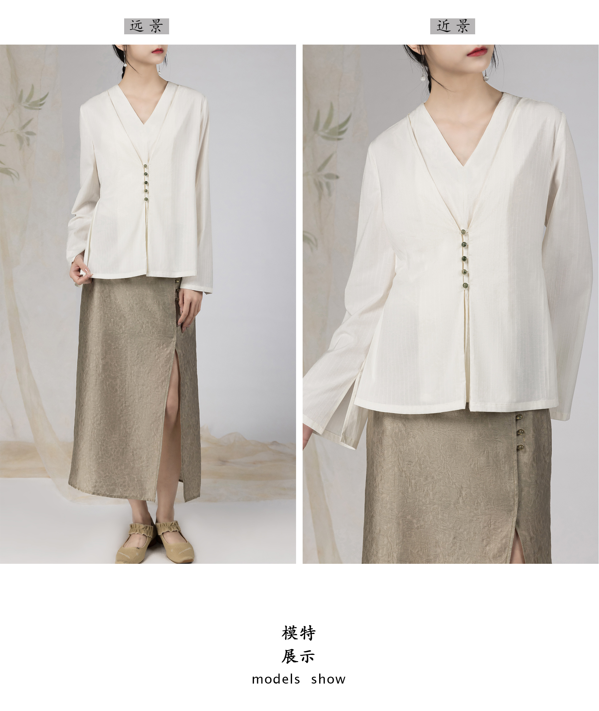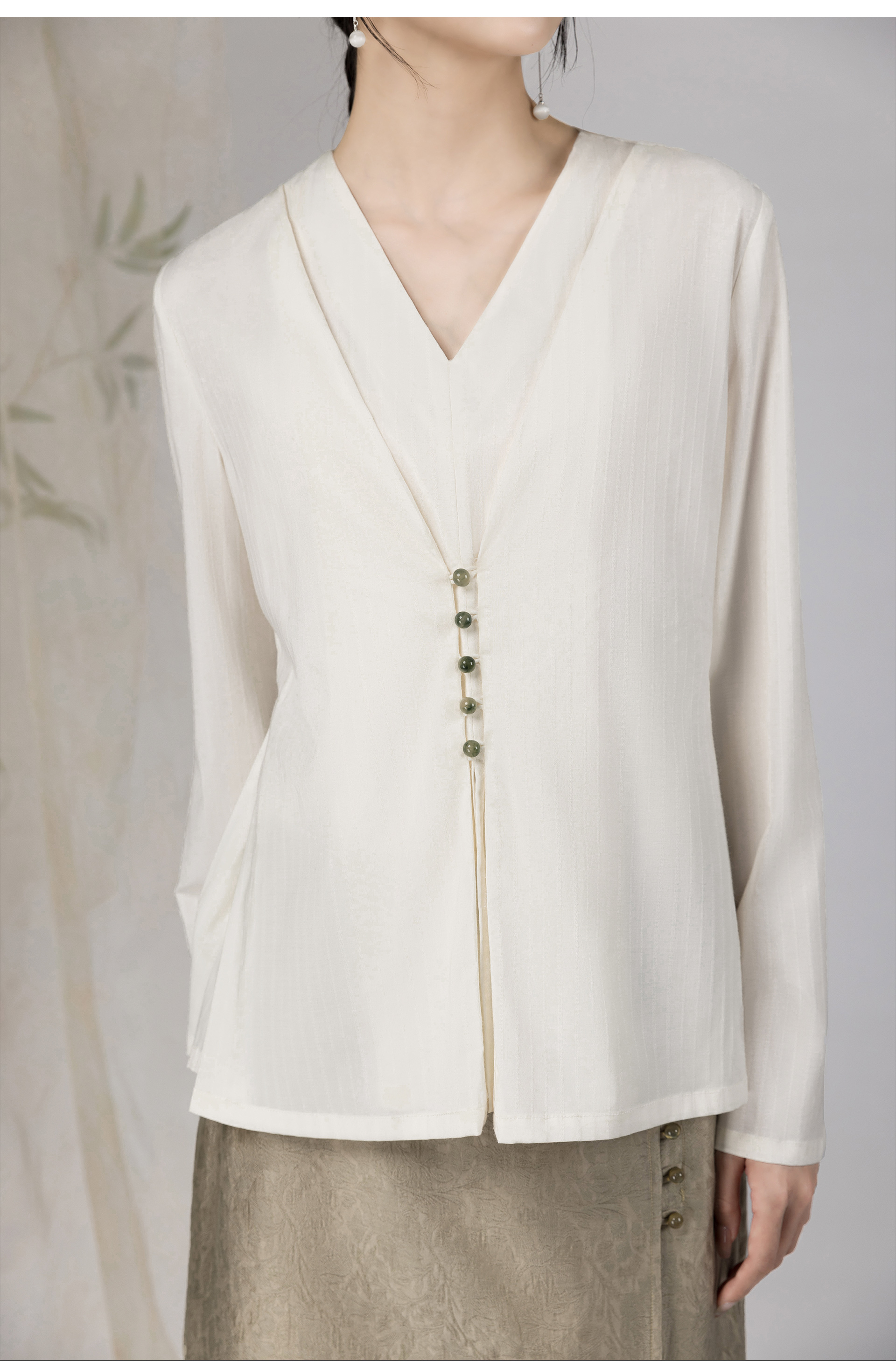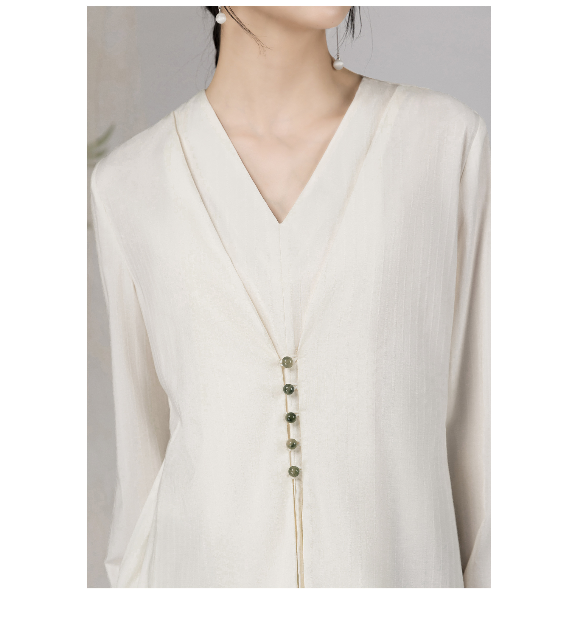 ASAYA2988 New Chinese style V-neck spring jade bead button design long-sleeved top ( DOES NOT INCLUDE SKIRT)