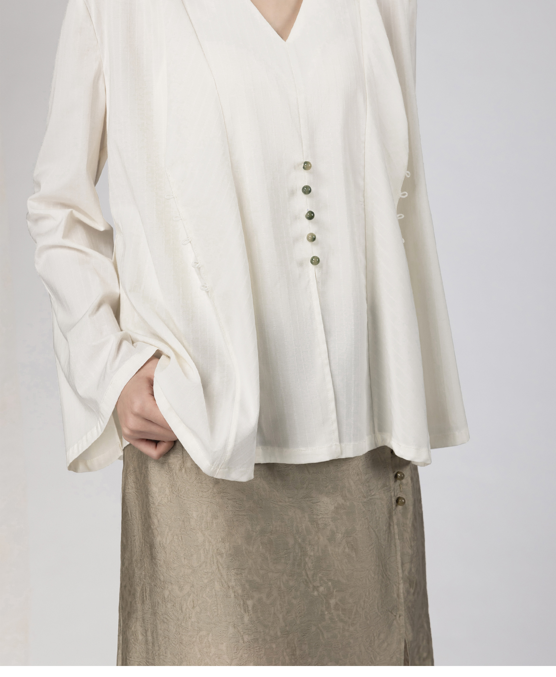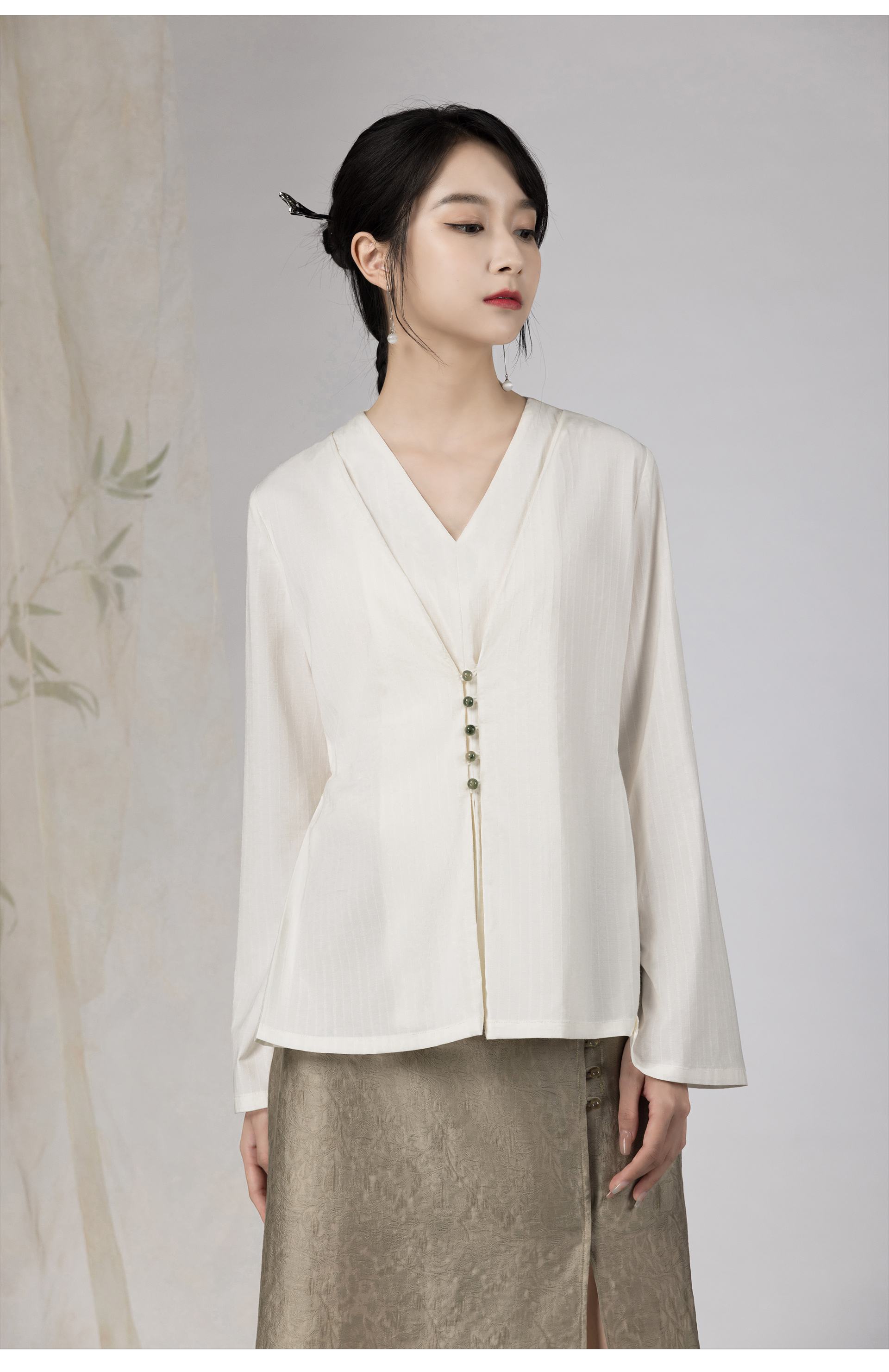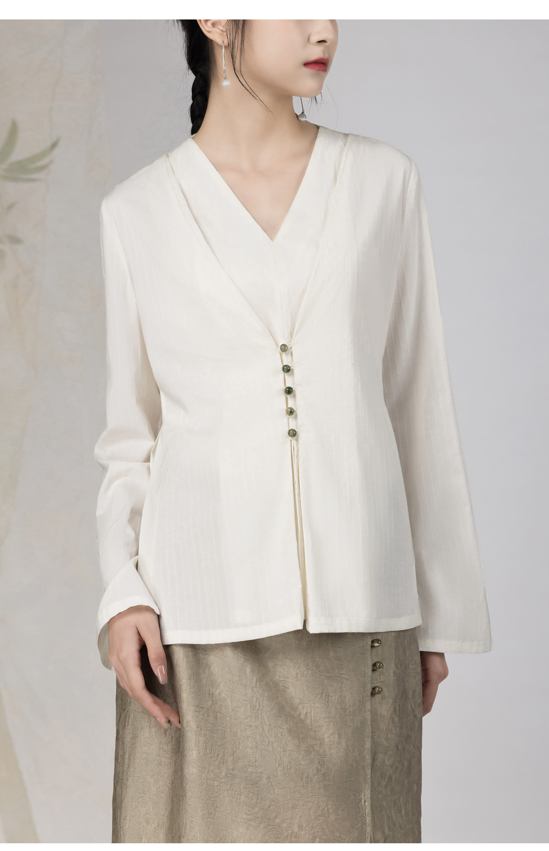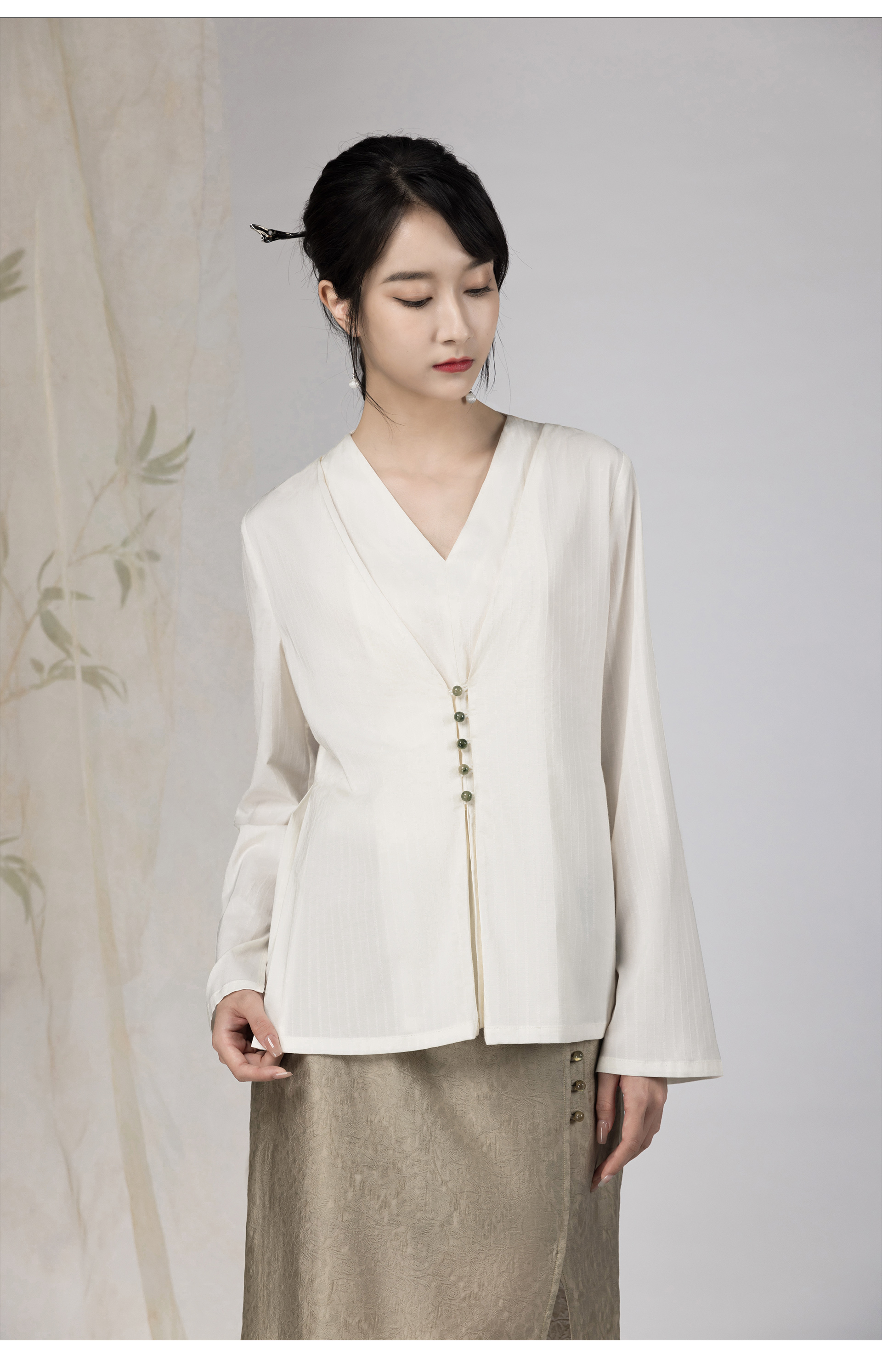 ASAYA2988 New Chinese style V-neck spring jade bead button design long-sleeved top ( DOES NOT INCLUDE SKIRT)
