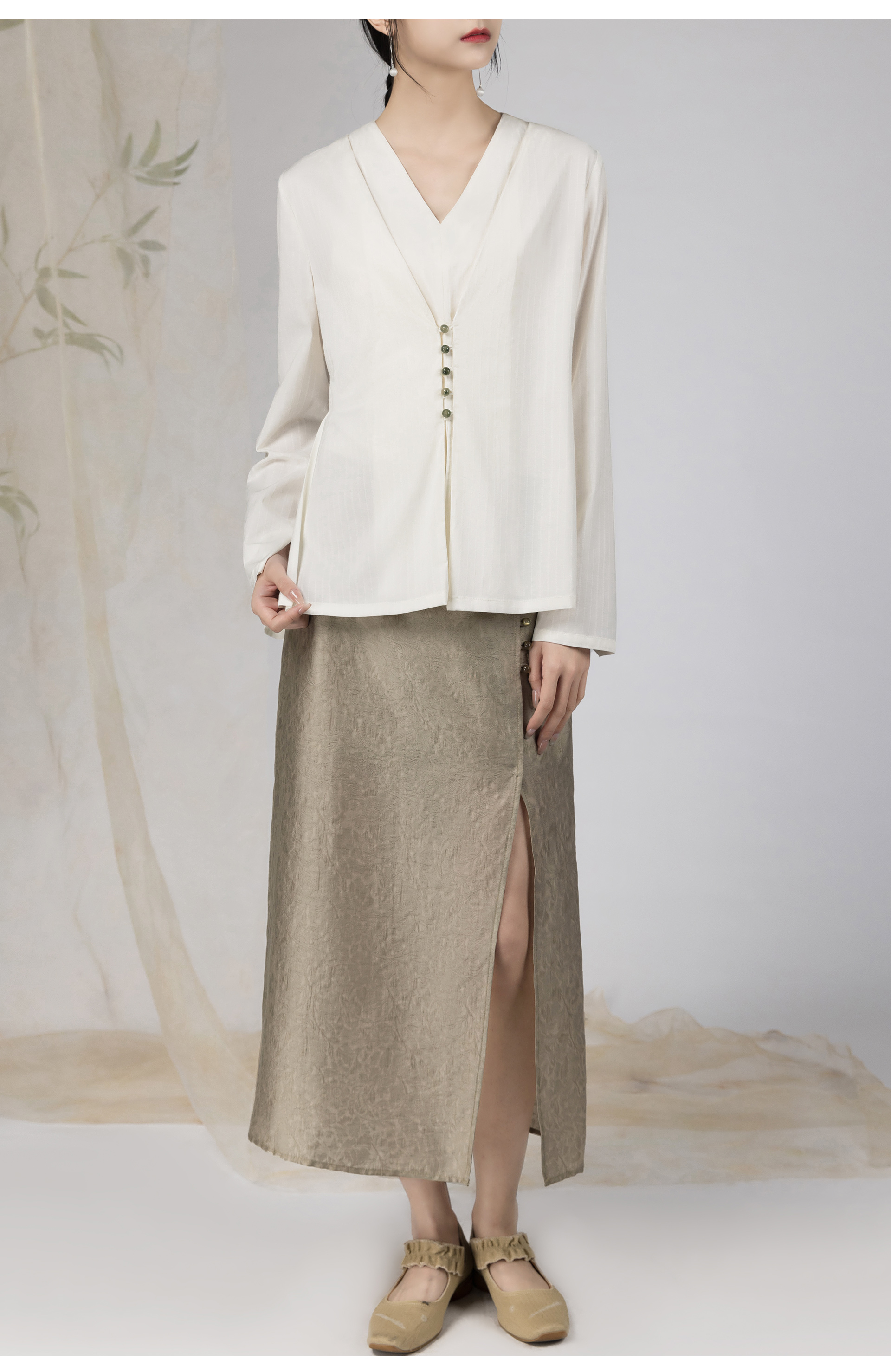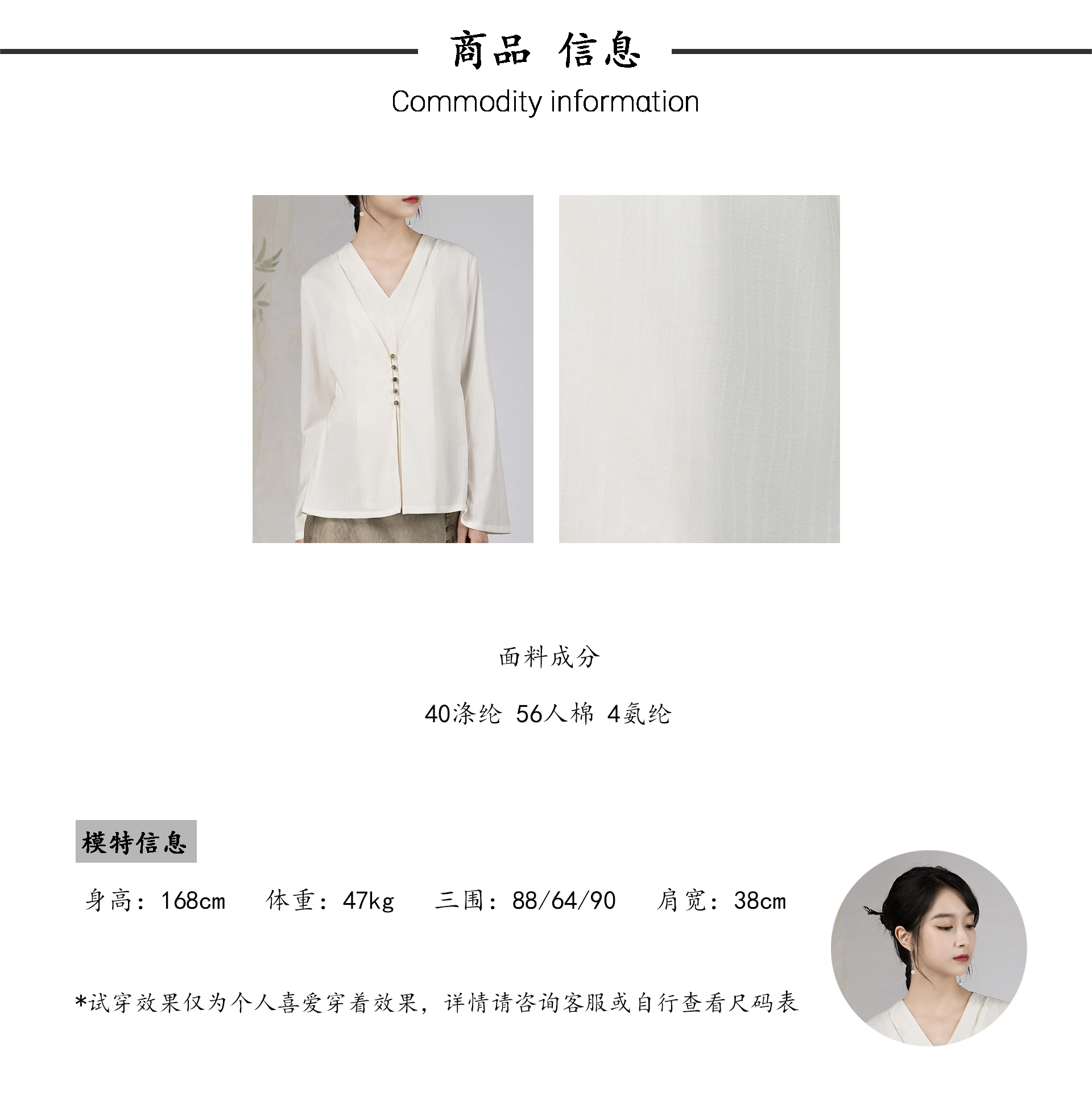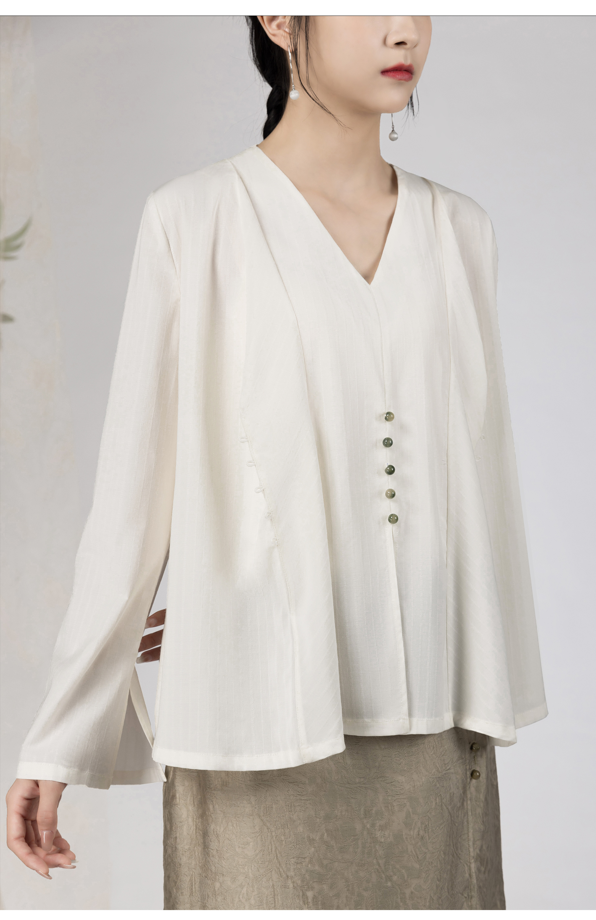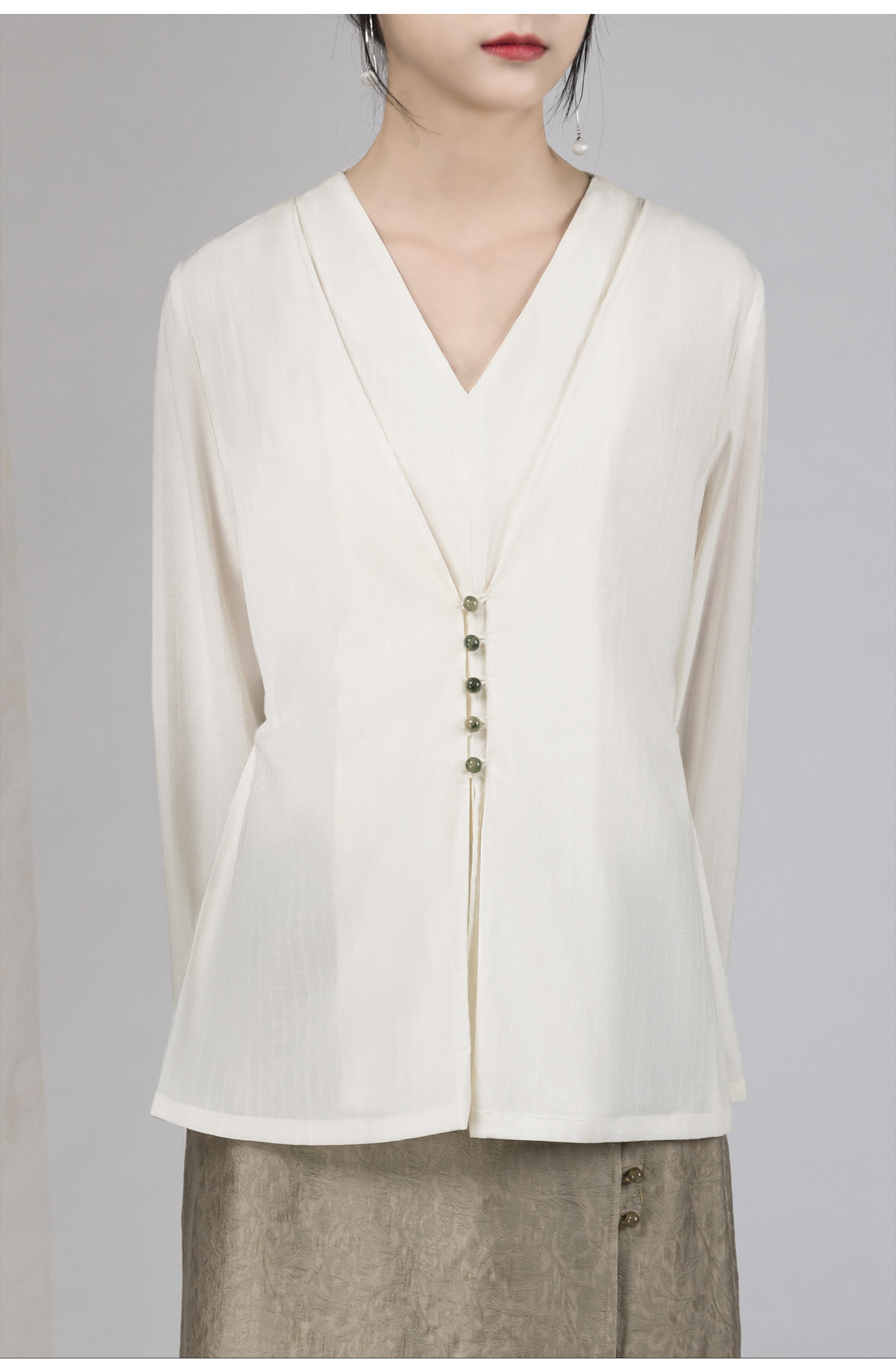 ASAYA2988 New Chinese style V-neck spring jade bead button design long-sleeved top ( DOES NOT INCLUDE SKIRT)