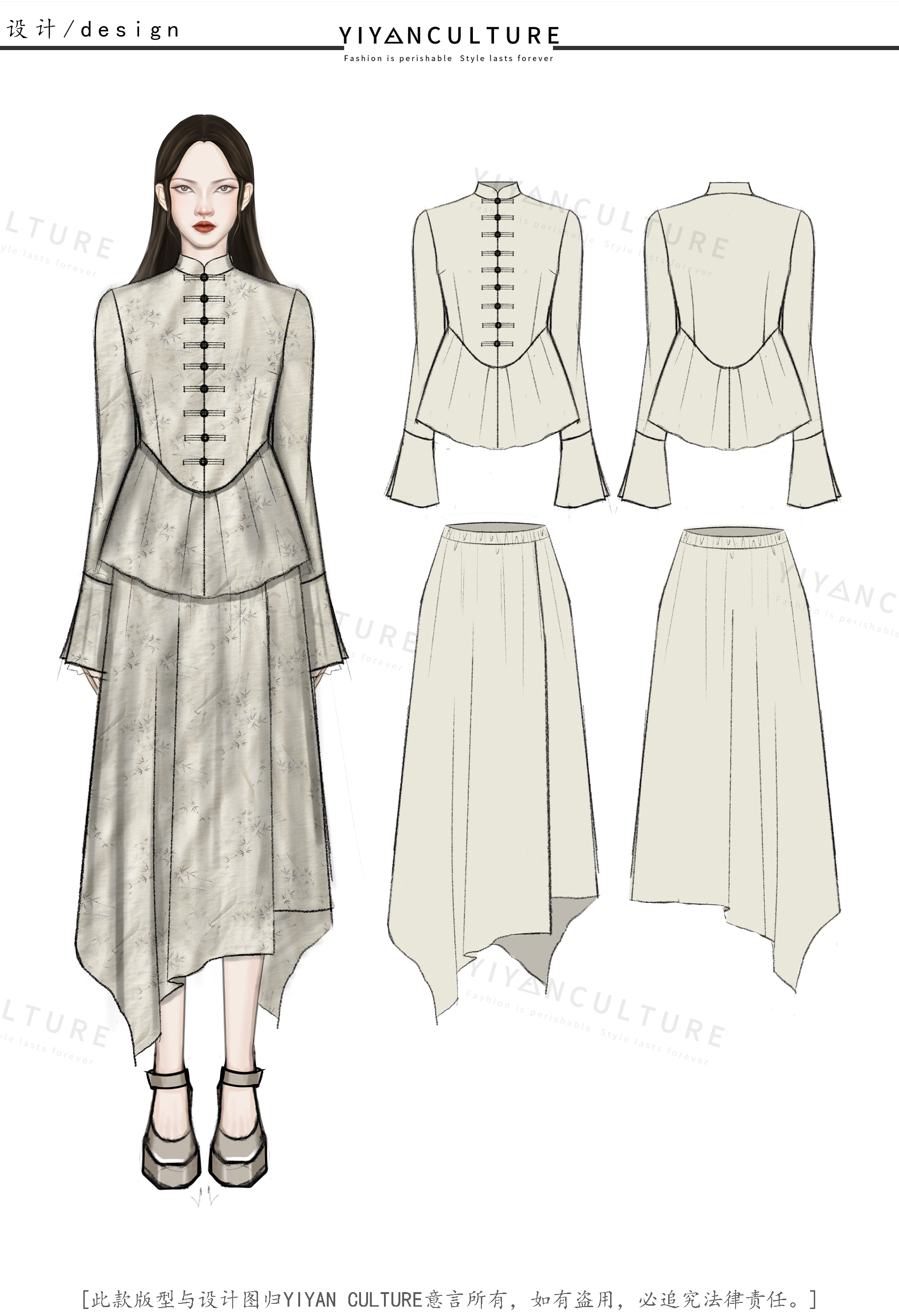 ASAYA2307 New Chinese style bamboo pattern and skirt