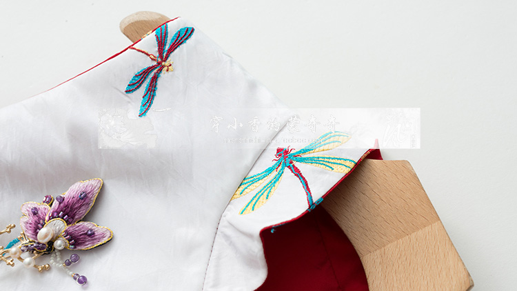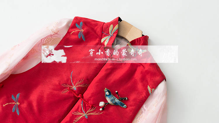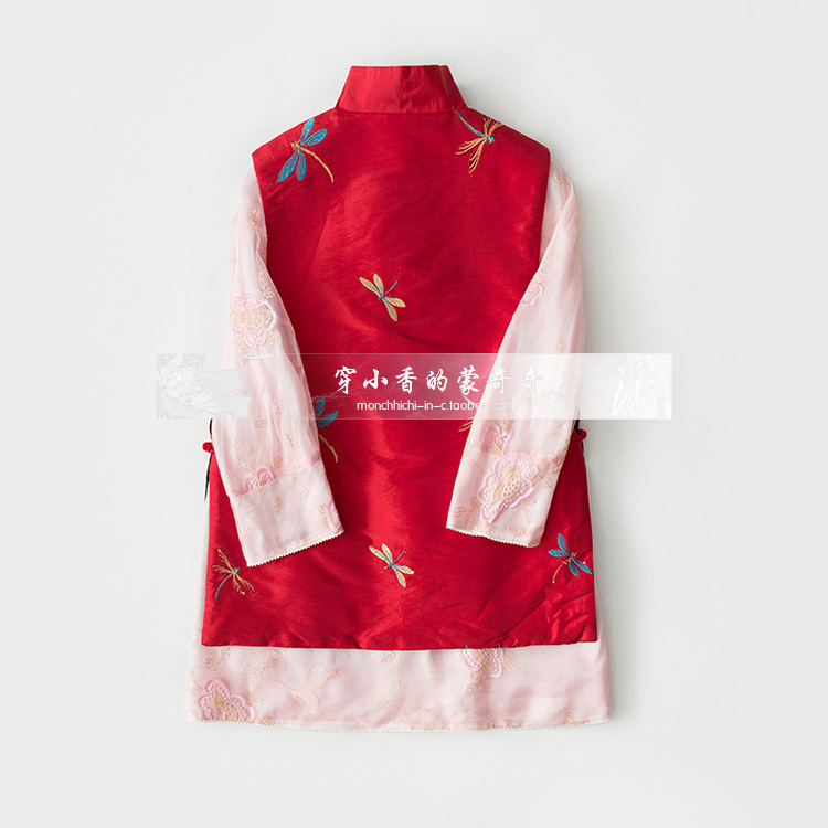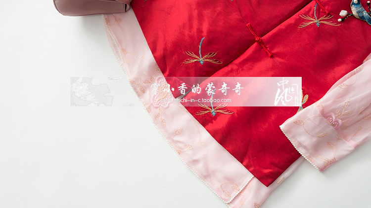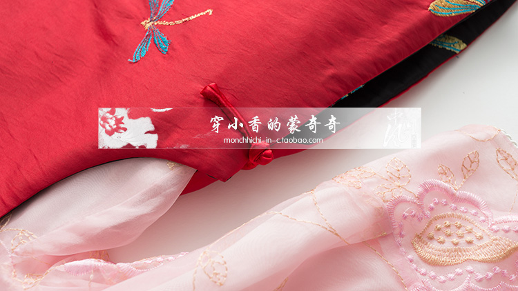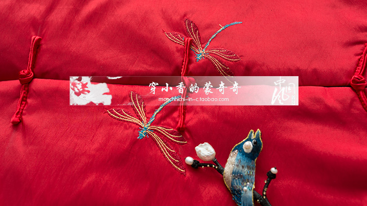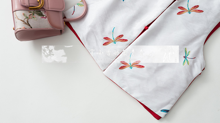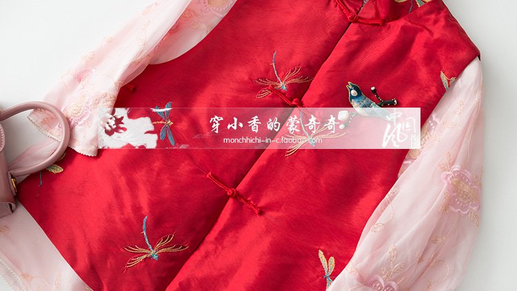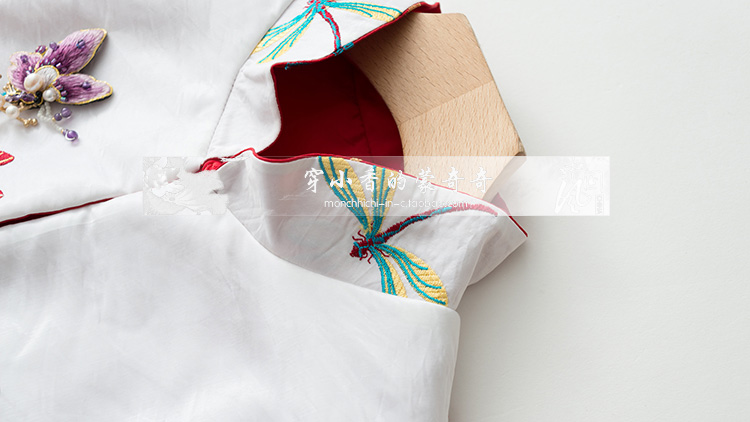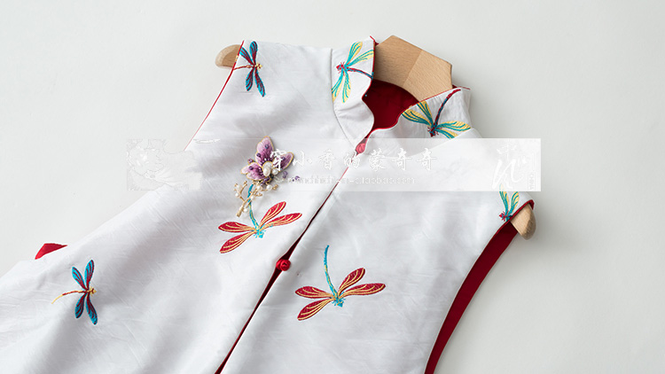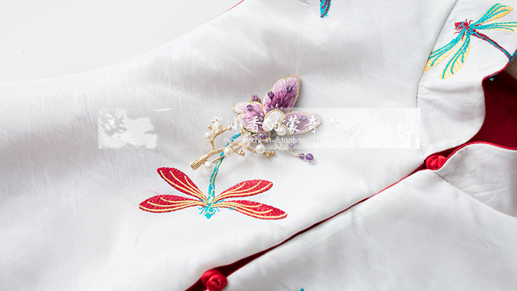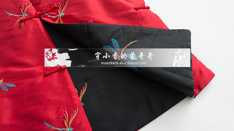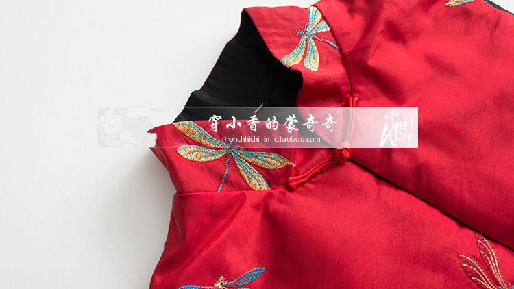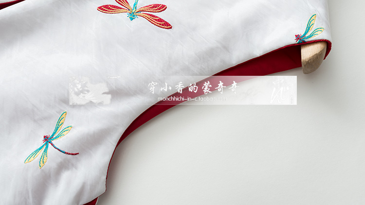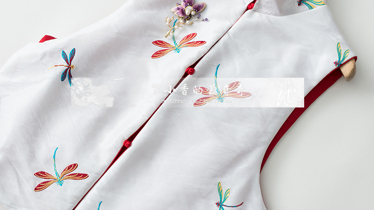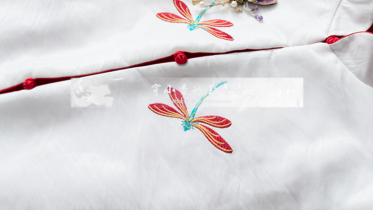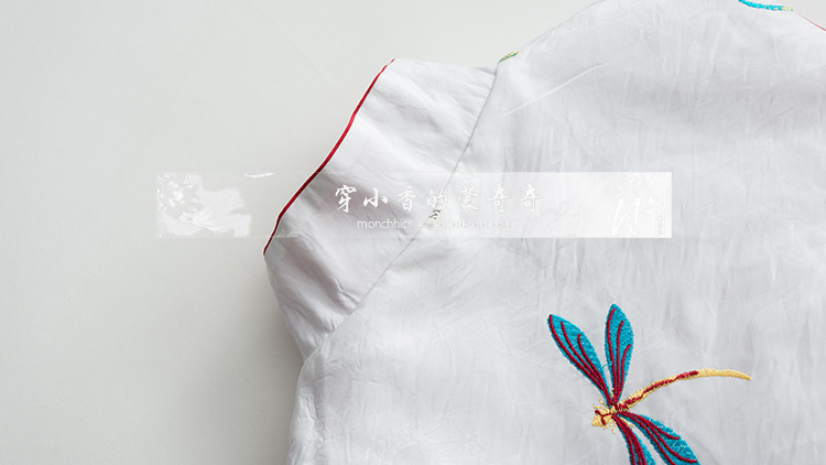 可以双面穿,可以双面穿,可以双面穿~~(一面有扣子,一面没有扣子哈)定位花所以每件蜻蜓的位置不固定,绣花是机绣