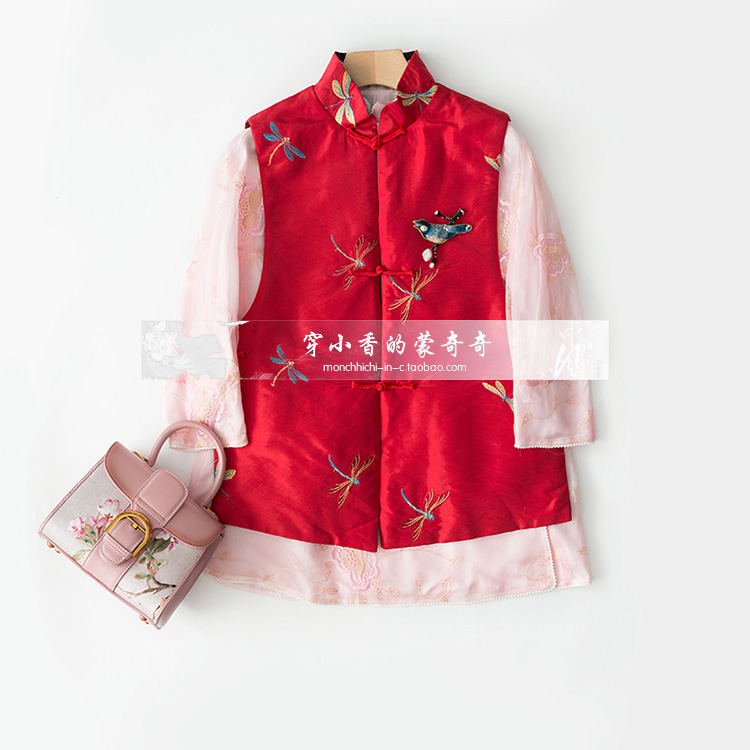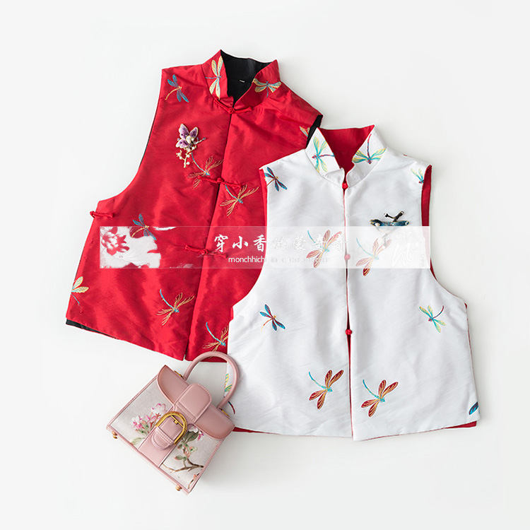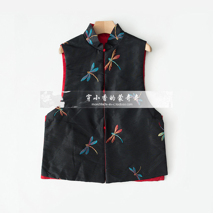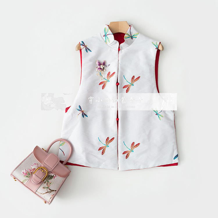 ASAYA2695 Double-sided spring and autumn new Chinese style dragonfly embroidery vest