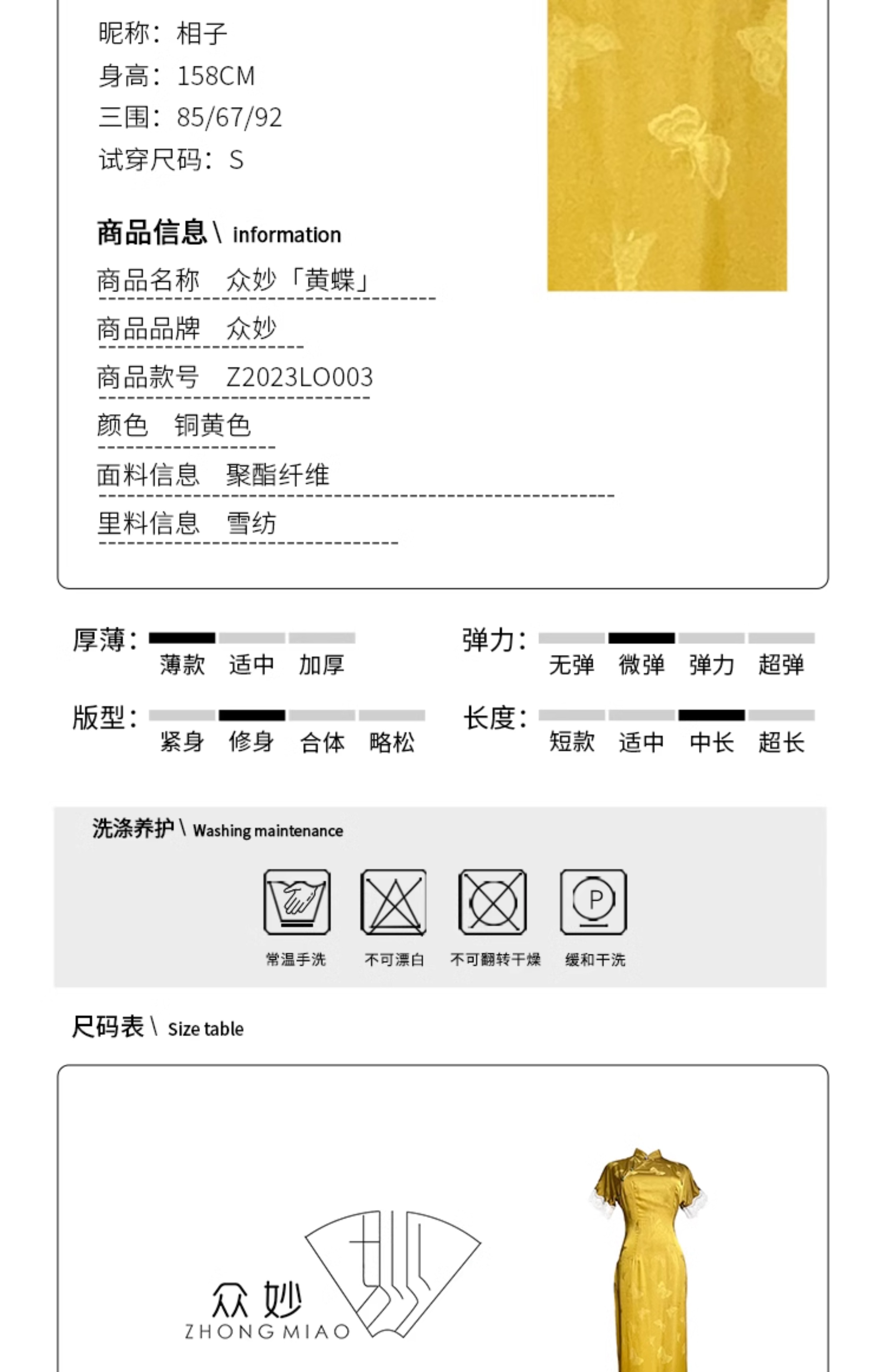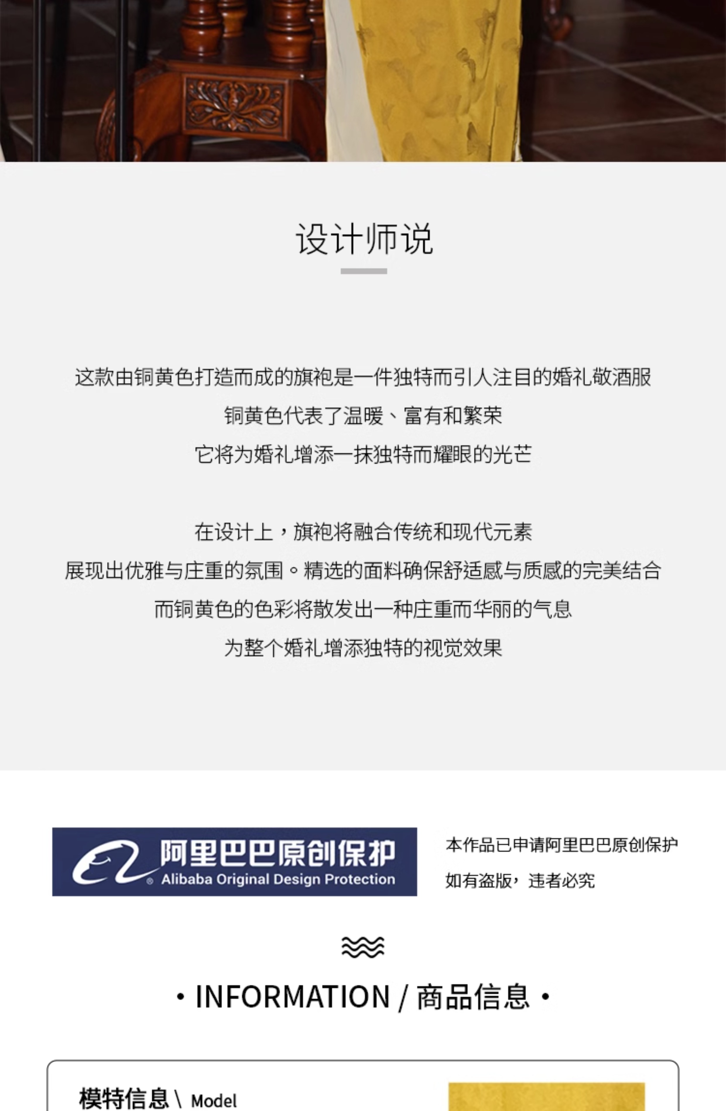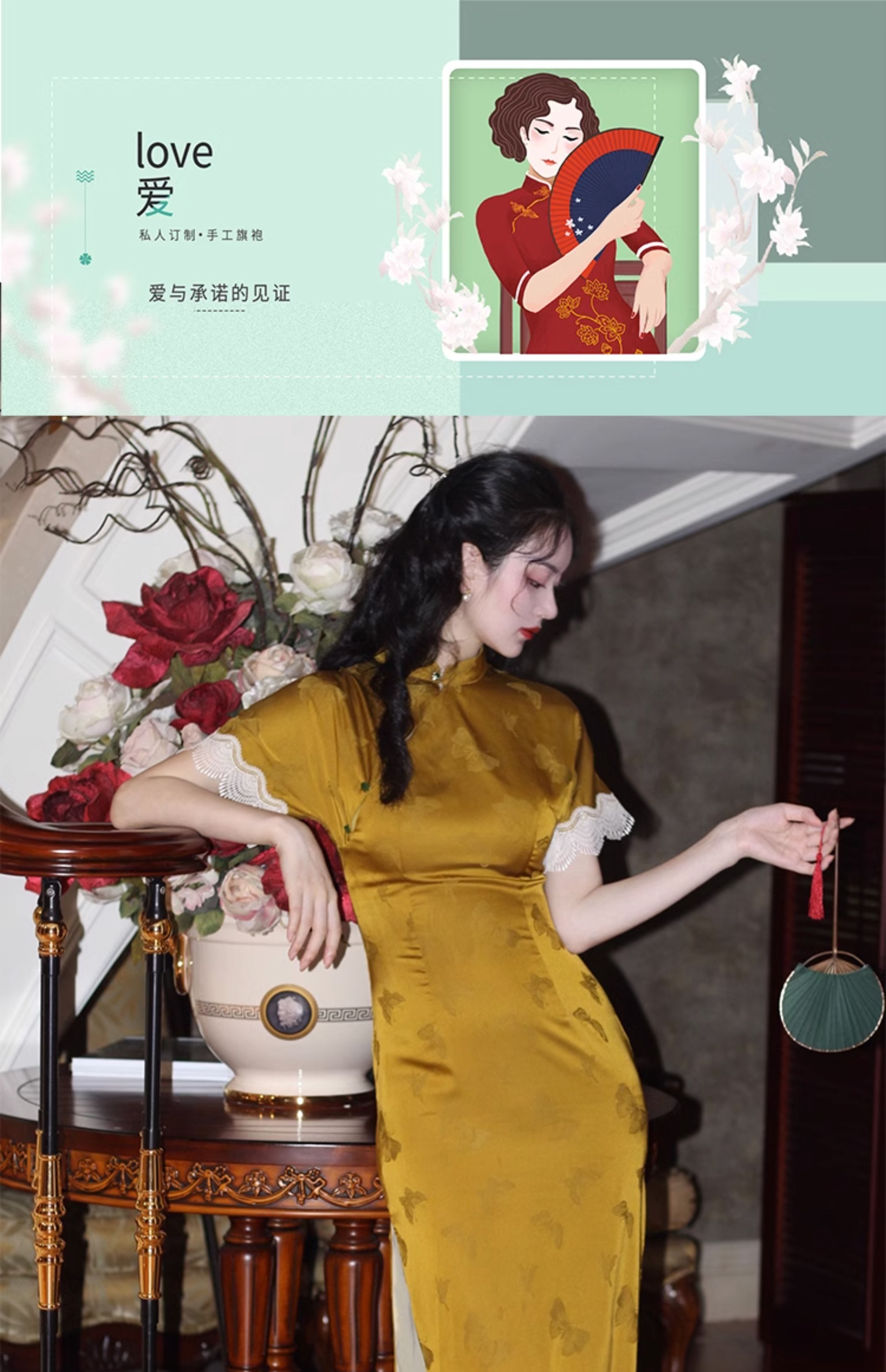 Asaya1238 -yellow long lace silk satin cheongsam morning gown